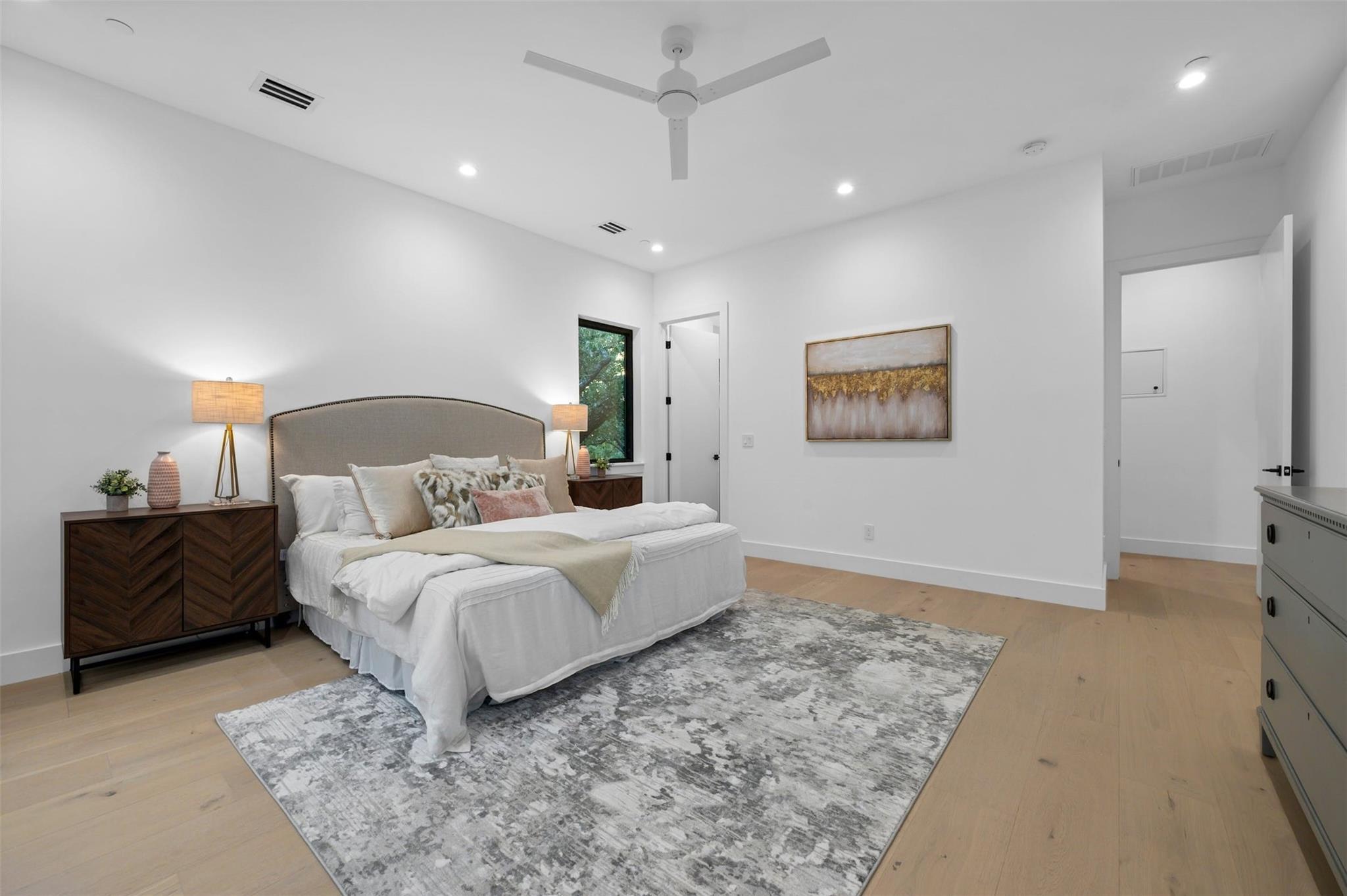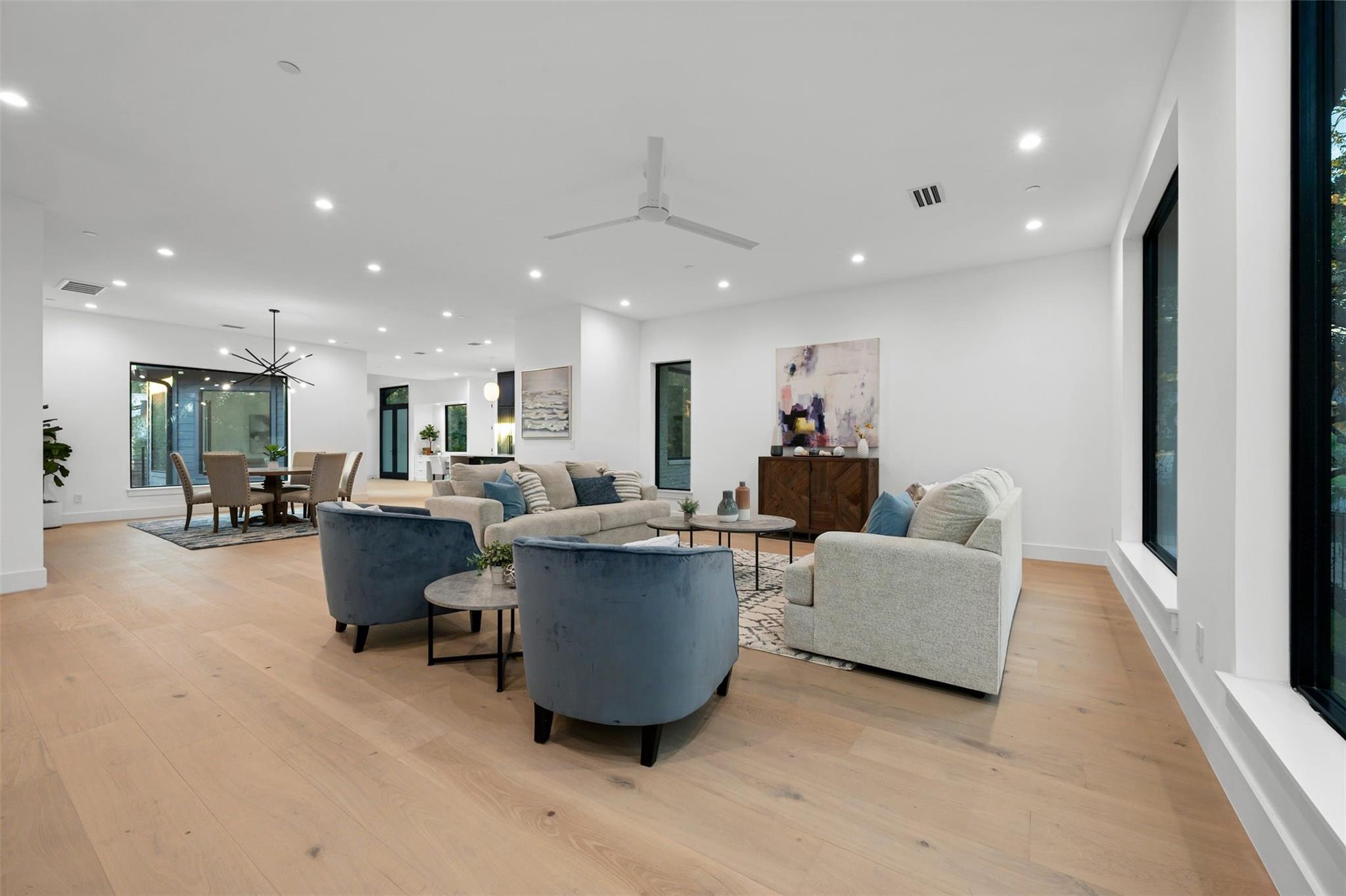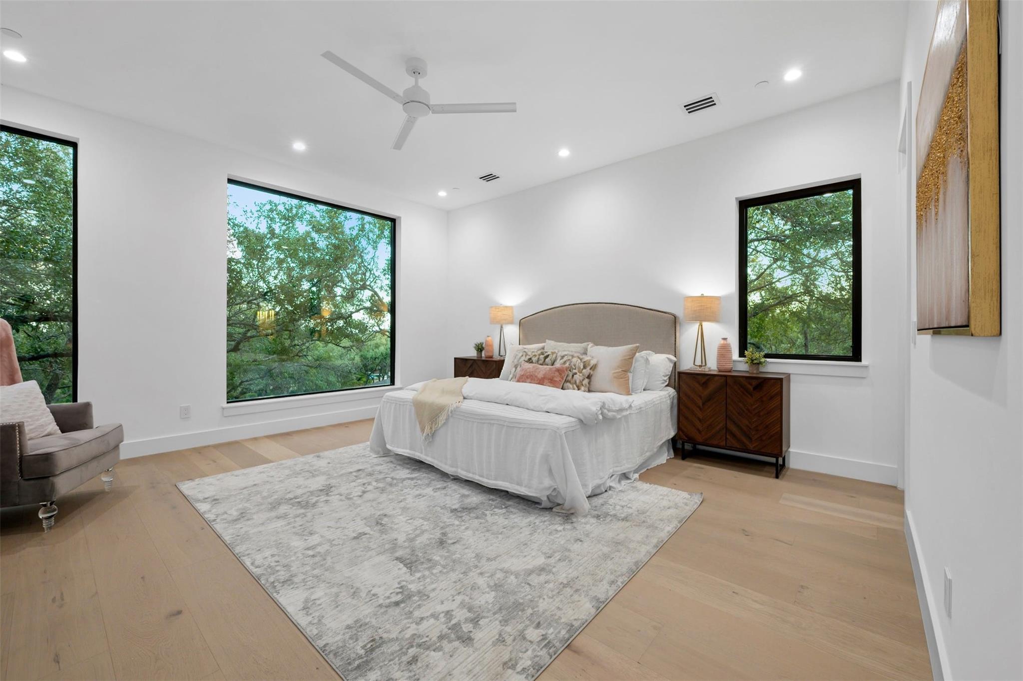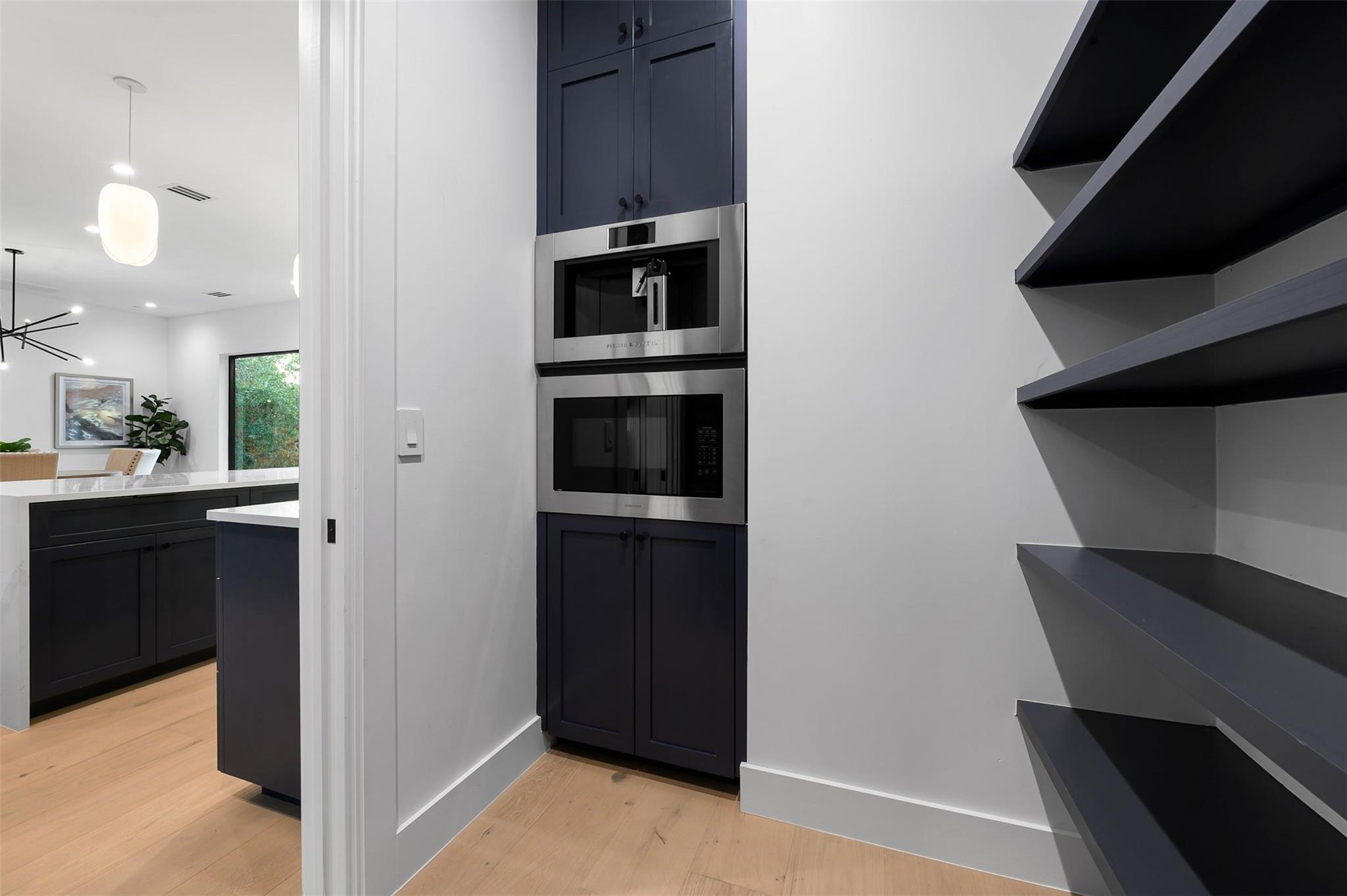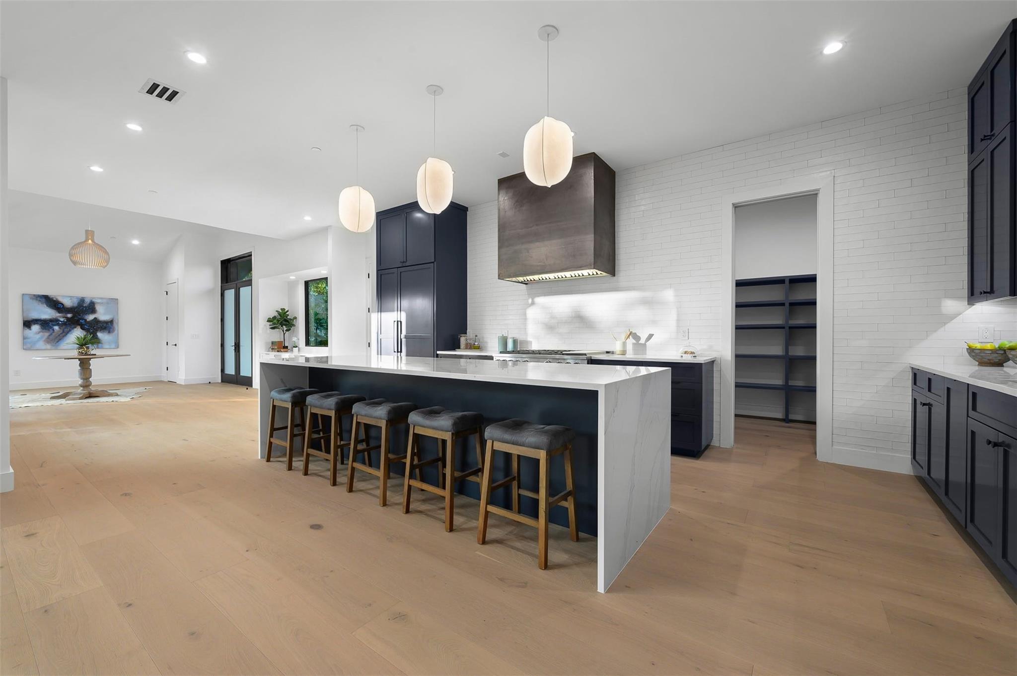 *This home is completely new construction other than garage slab and pool structure, although pool was remodeled by Liquid Assets during construction.* On a sprawling tree-lined lot in iconic Lost Creek this 4,490 SF NEW home designed by Erin Kant of ESK Studio and Parkside Homes is ready for occupancy. Whether it’s the flood of natural light from the expansive Pella windows or the casual luxury of the 9” European white oak floors that run throughout, this property perfectly blends upscale fixtures and finishes with functional family living in Eanes ISD. As you approach this stacked limestone house, a welcoming circular drive provides ample parking for family and guests while a plush, fenced-in zoysia lawn adorned with professionally landscaped steel beds makes for gorgeous views from both the home’s exterior and interior. The home’s main floor boasts a gorgeous entryway that could be utilized in a variety of ways: a cozy sitting area, a library nook, or overflow space for entertaining. The gorgeous kitchen features high-end GE Luxury Monogram appliances including a cabinet-front refrigerator and dishwasher, 8-burner gas range with double oven, dual cabinet-front trash bins, and even a work pantry that houses the microwave, a built-in coffee maker, and plenty of storage tucked away out of sight, keeping the waterfall quartz counters and shaker style cabinets sleek and clean. The dining room and additional living/family room flank the kitchen, supplying even more light and bright space for a family to gather and special occasions. Also on the main floor, the home’s spacious primary bedroom provides a perfectly peaceful retreat, and the spa-like primary bathroom is the ideal addition to this space. Moving downstairs, a game room with an entire wall of sliding glass doors adjoins four additional bedrooms, two ensuite and two that share a Jack-and-Jill bathroom. Around the corner, a cozy office with built-ins will be the favorite place for everyone in the house to work.