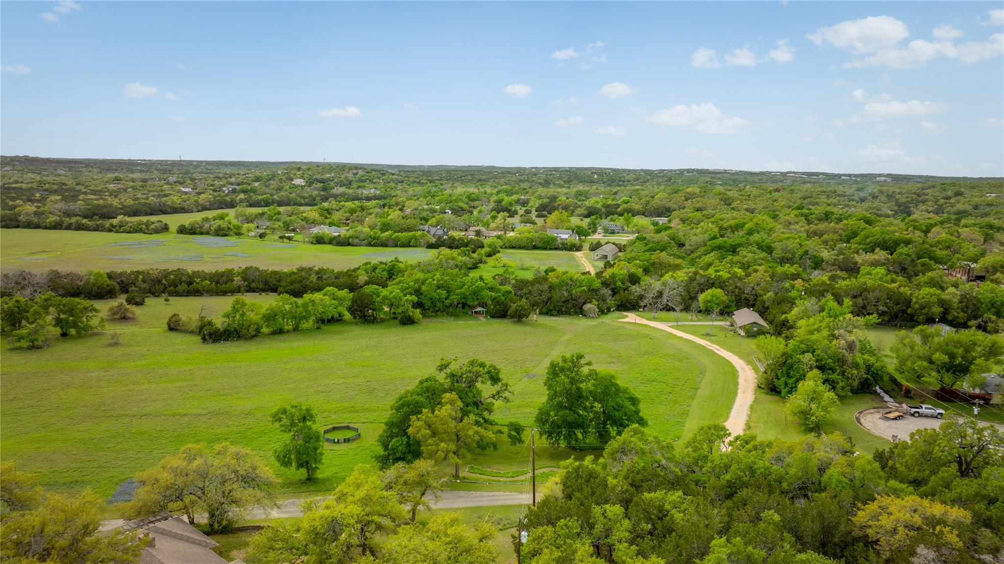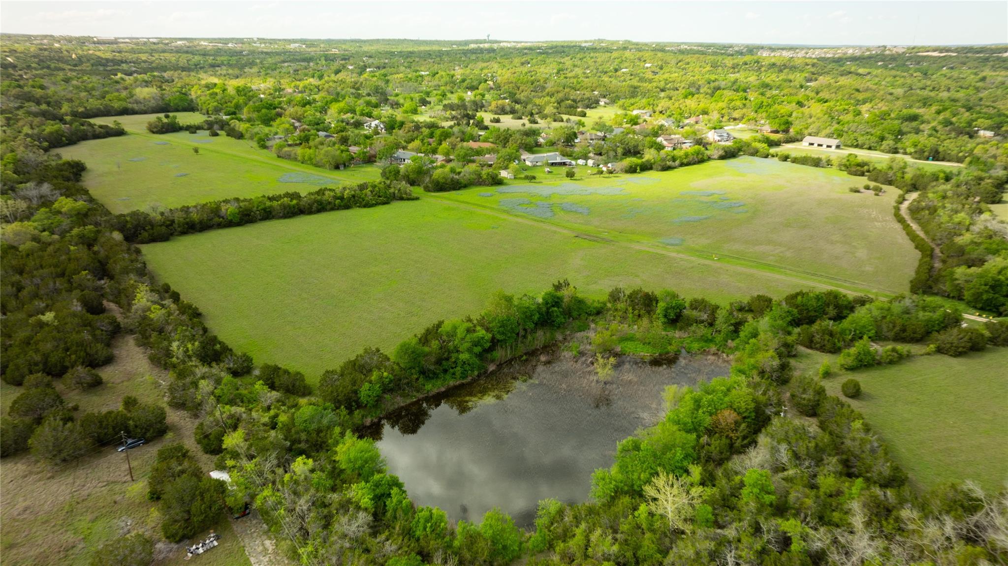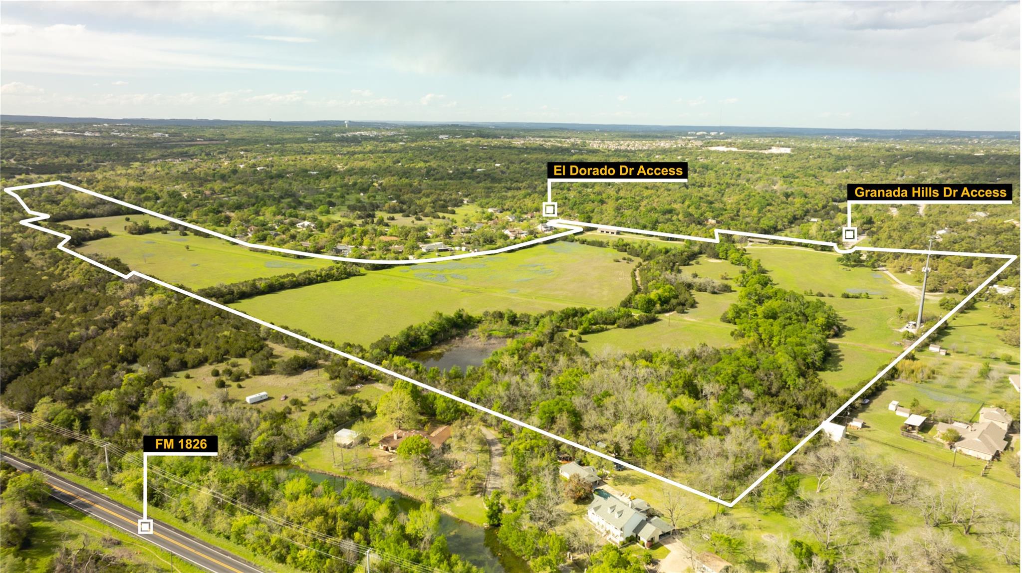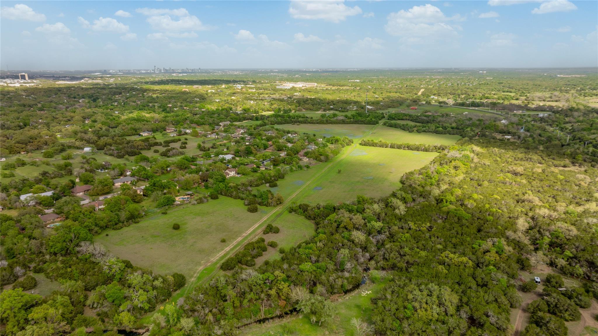 Overview: This impressive 67+/- acre property in Western Travis County is ideal for investment or a gentleman’s ranch. Located only 2.5 miles from the “Y” in Oak Hill, it boasts a perfect balance of serenity and easy access to downtown Austin. Enjoy stunning views of the Hill Country landscape and skyline, complemented by the rare feature of live water from the Slaughter Creek tributary. With its authentic Hill Country views, live water feature, unique landscape, and proximity to downtown Austin, this property offers an unparalleled opportunity. Contact Ranchland Real Estate to schedule a private tour and experience this property firsthand. Landscape: Explore the expansive pastures and meadows, or simply relax and take in the serene surroundings from the comfort of your own private oasis. The Slaughter Creek tributary is winding through the landscape, creating a scenic buffer between dense trees and open pastures. Native Texas vegetation on the property include; lush grasses, hardwoods, and vibrant wildflowers. Main Residence: Perched atop the highest point of the property, stands the main residence—a 2,500 sq. ft., three-bedroom, two-bathroom, single-story brick home. Its custom design invites ample natural light, courtesy of expansive windows and elegant French doors. Within, a spacious living room, an expansive sunroom, a cozy fireplace, a convenient pass-through window linking the kitchen and sunroom, and several reading nooks exemplify its distinctive charm. Outside, the residence boasts numerous entertainment areas, perfect for unwinding and savoring the panoramic countryside views. An additional entertainment building, accessible via a covered concrete walkway, complements the house and features a kitchenette and one and a half bathrooms for added convenience. Caretaker’s/Guest Home: The caretaker’s home spans an estimated 800 sq. ft. and includes one bedroom and one bathroom