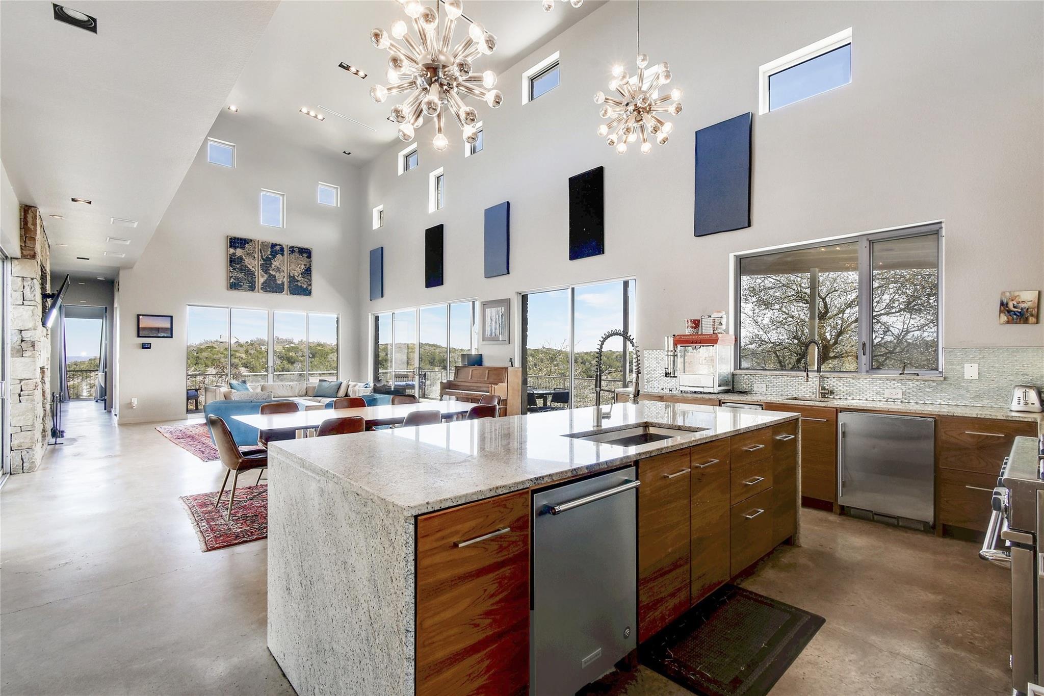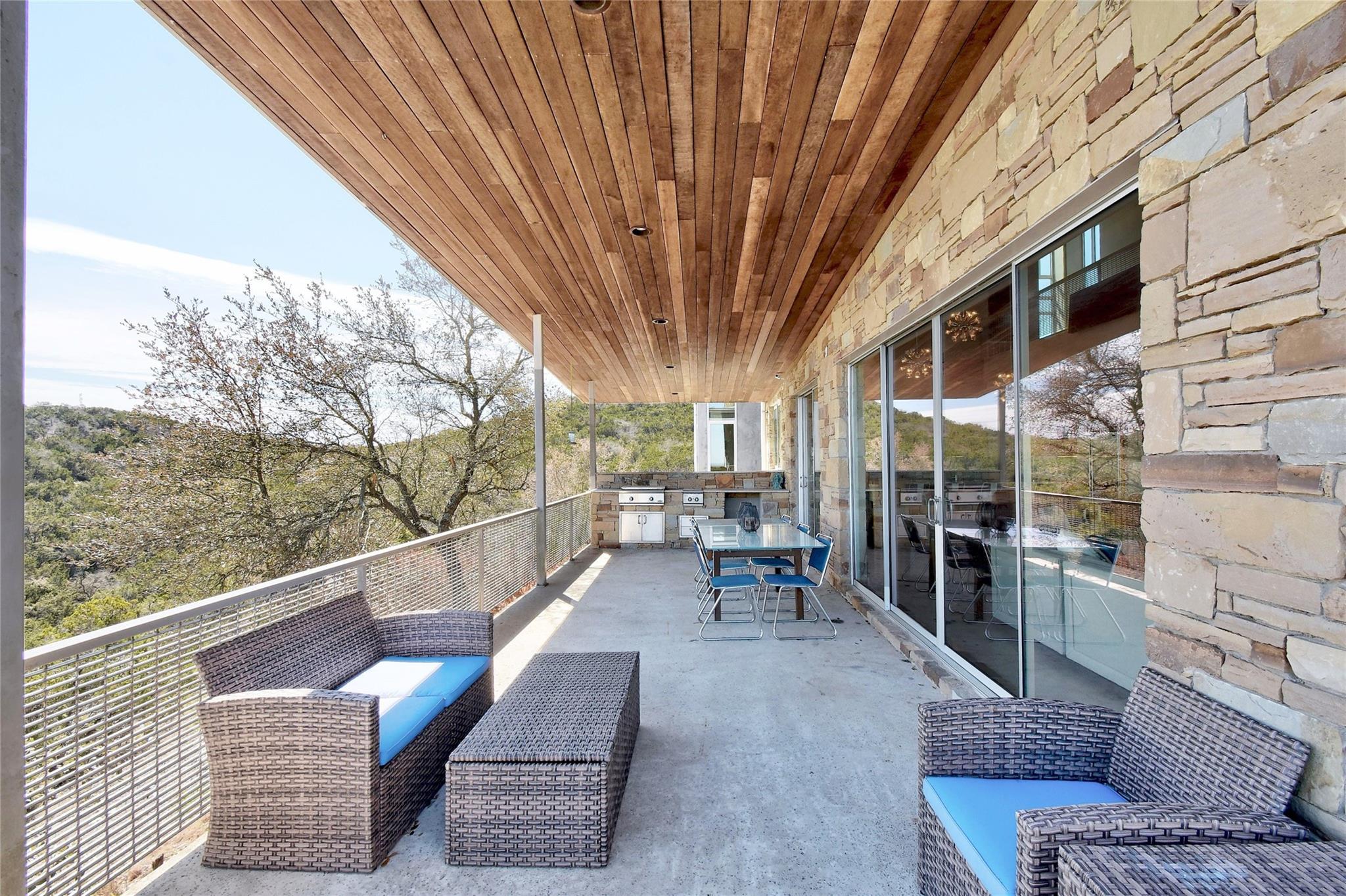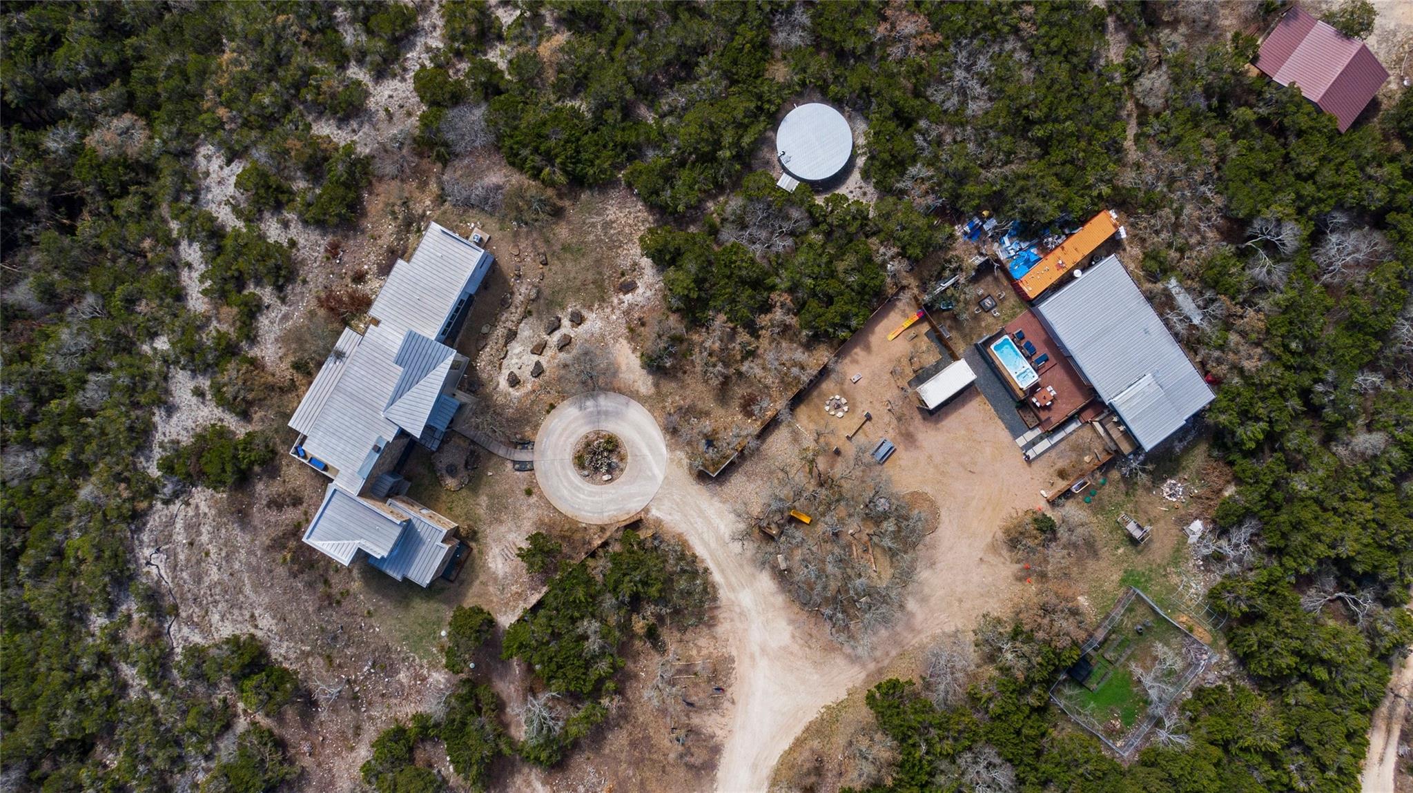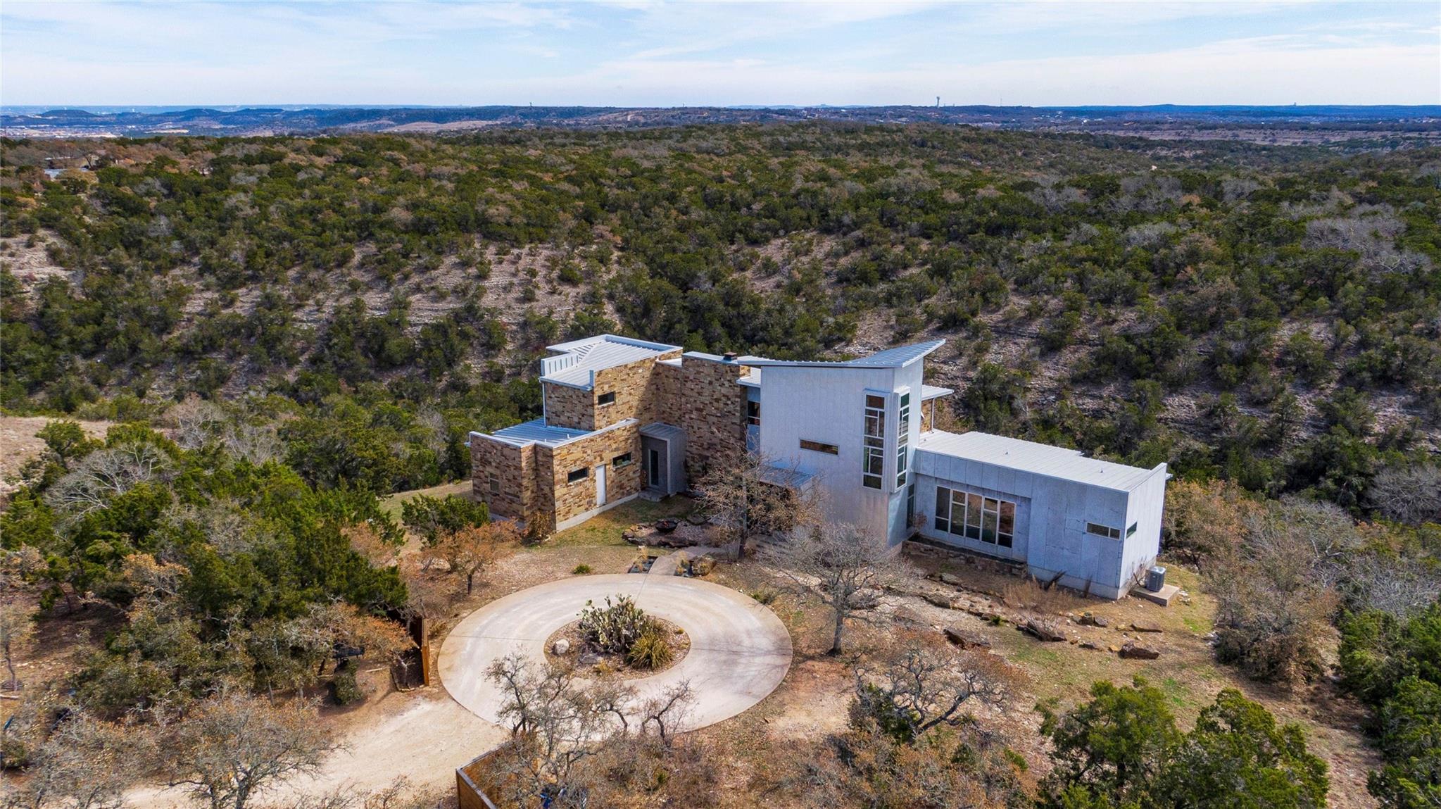 This is an opportunity to discover your new lifestyle in Dripping Springs. This beautifully crafted one of kind property/compound was built with quality, function and design in mind. Perched high on a canyon, not only offering unforgettable Hill Country views and privacy. The main house is a modern four bedroom, five bath entertainer’s dream with a large open kitchen, over-sized center island, custom cabinets, six burner gas stove, SubZero refrigerator and more. The family room boasts an abundance of natural light with high ceilings and a wall of windows that must be seen to fully appreciate. The floor plan offers excellent privacy for the master which has its own balcony, his and hers closets, separate shower, marble tub and sinks, a truly unique space. Each bedroom has its own en-suite bathroom and walk in closets. Enjoy the hot tub on the private balcony or sip wine off the large patio at sunset. The second home is a three bedroom, two bath Barndominium with a large family room, tall ceilings and a cool garage door that opens to the deck and 20-ft spa/ hot tub area with plenty of storage and closets throughout. Ideal for an artist/band retreat or practice studio. The outdoor space is suited for large gatherings, cookouts, weddings and more with a nice sized playground for the kids and garden area for the green thumb types. The four acres are sub-divided into three lots in a condo regime and offer more potential structures to be built and are being sold altogether. Within minutes of Whole Foods, Hill Country Galleria, high end shopping and restaurants. A Dripping Springs address in Lake Travis ISD. Not to be missed. The property is currently an active Air B n B rental that can sleep up to 22 people. Income statement available, ask your agent for details. A must see!