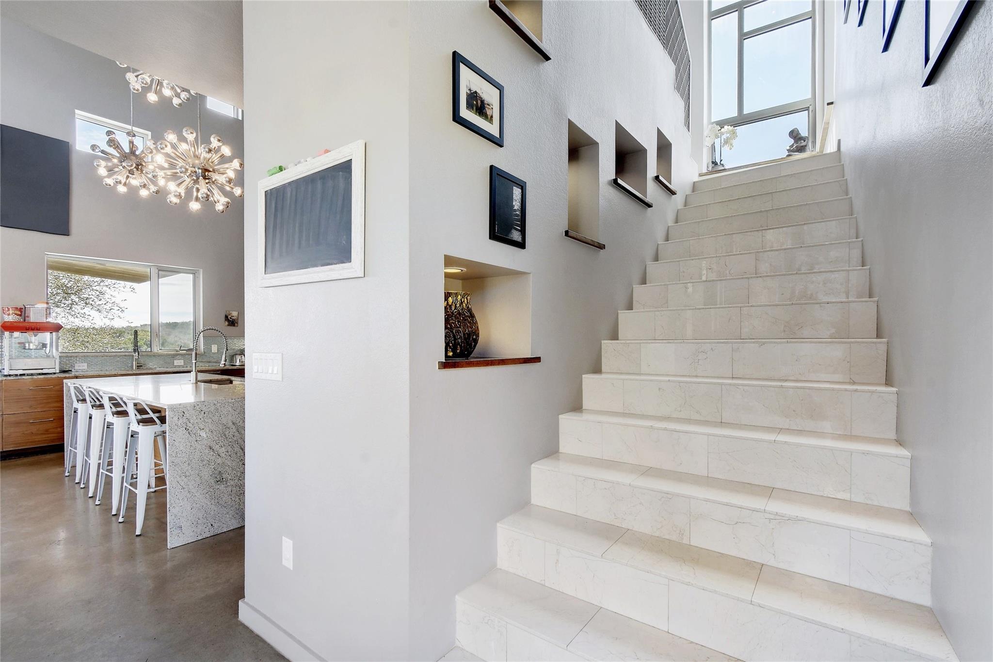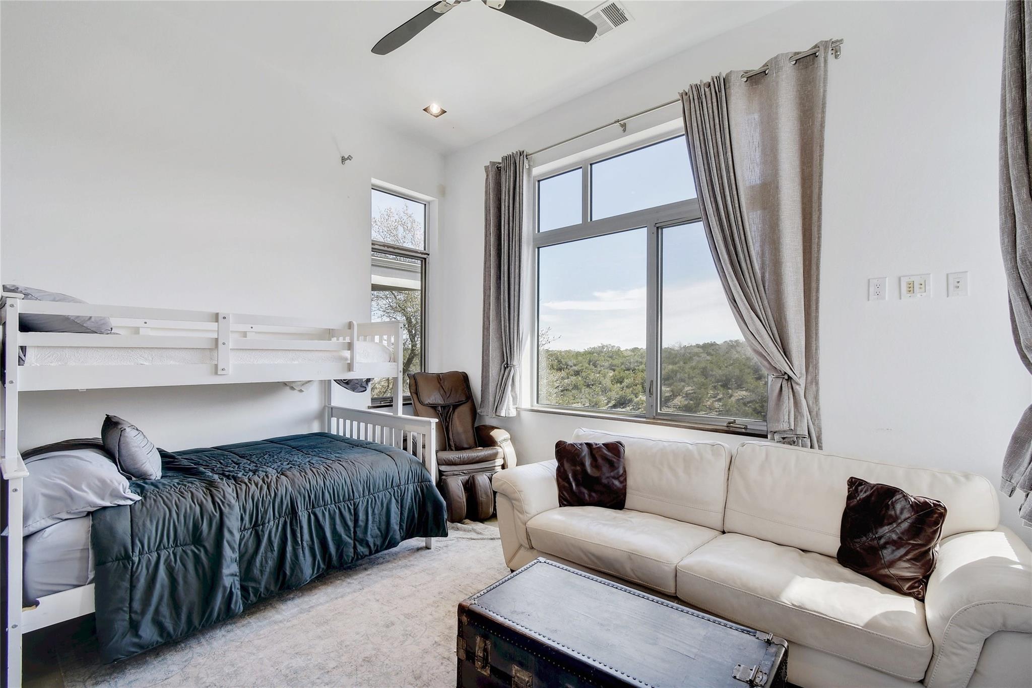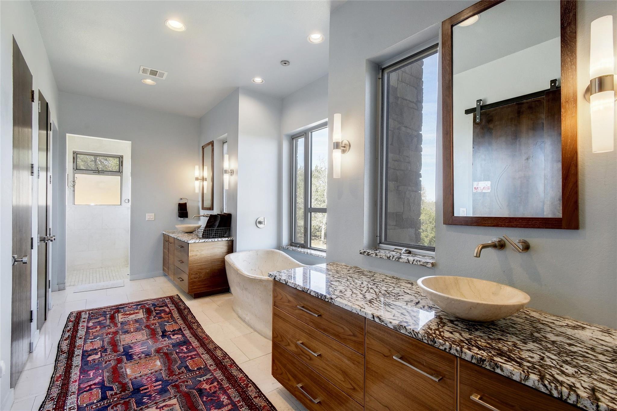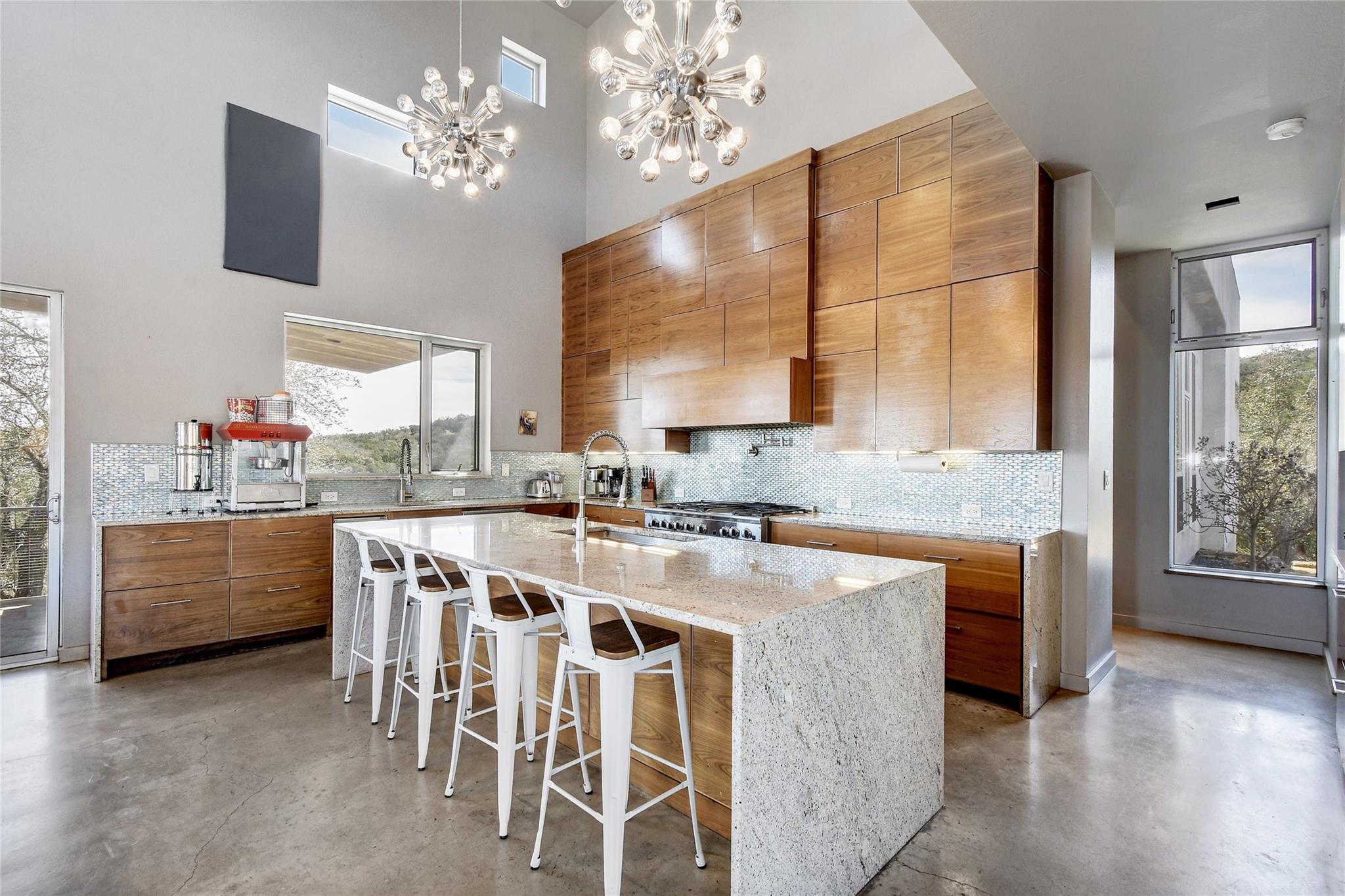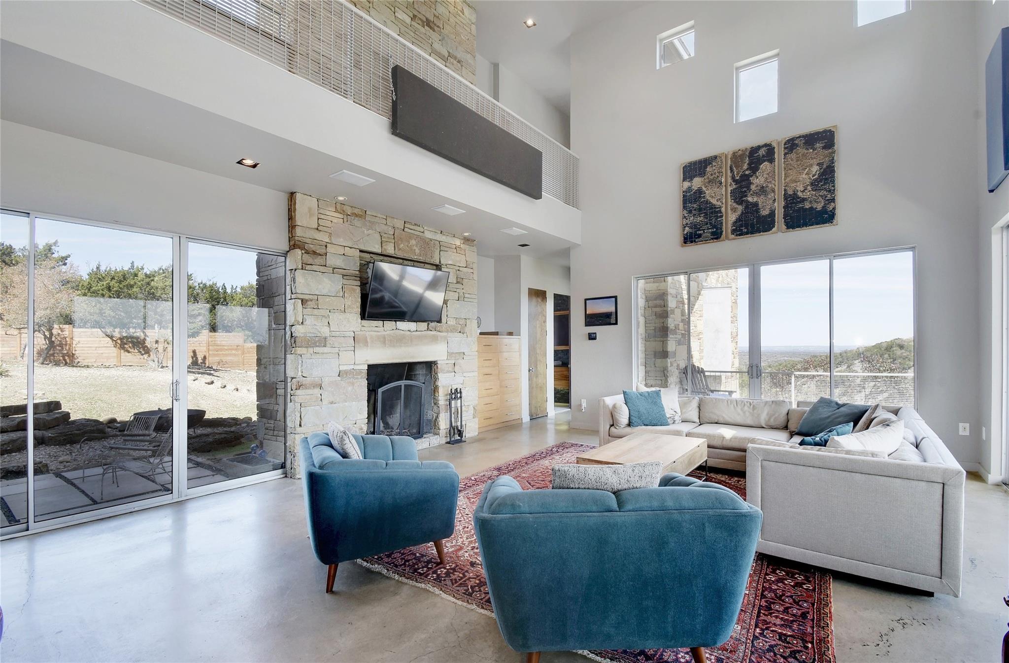 This is an opportunity to discover your new lifestyle in Dripping Springs. This beautifully crafted one of kind property/compound was built with quality, function and design in mind. Perched high on a canyon, not only offering unforgettable Hill Country views and privacy. The main house is a modern four bedroom, five bath entertainer’s dream with a large open kitchen, over-sized center island, custom cabinets, six burner gas stove, SubZero refrigerator and more. The family room boasts an abundance of natural light with high ceilings and a wall of windows that must be seen to fully appreciate. The floor plan offers excellent privacy for the master which has its own balcony, his and hers closets, separate shower, marble tub and sinks, a truly unique space. Each bedroom has its own en-suite bathroom and walk in closets. Enjoy the hot tub on the private balcony or sip wine off the large patio at sunset. The second home is a three bedroom, two bath Barndominium with a large family room, tall ceilings and a cool garage door that opens to the deck and 20-ft spa/ hot tub area with plenty of storage and closets throughout. Ideal for an artist/band retreat or practice studio. The outdoor space is suited for large gatherings, cookouts, weddings and more with a nice sized playground for the kids and garden area for the green thumb types. The four acres are sub-divided into three lots in a condo regime and offer more potential structures to be built and are being sold altogether. Within minutes of Whole Foods, Hill Country Galleria, high end shopping and restaurants. A Dripping Springs address in Lake Travis ISD. Not to be missed. The property is currently an active Air B n B rental that can sleep up to 22 people. Income statement available, ask your agent for details. A must see!