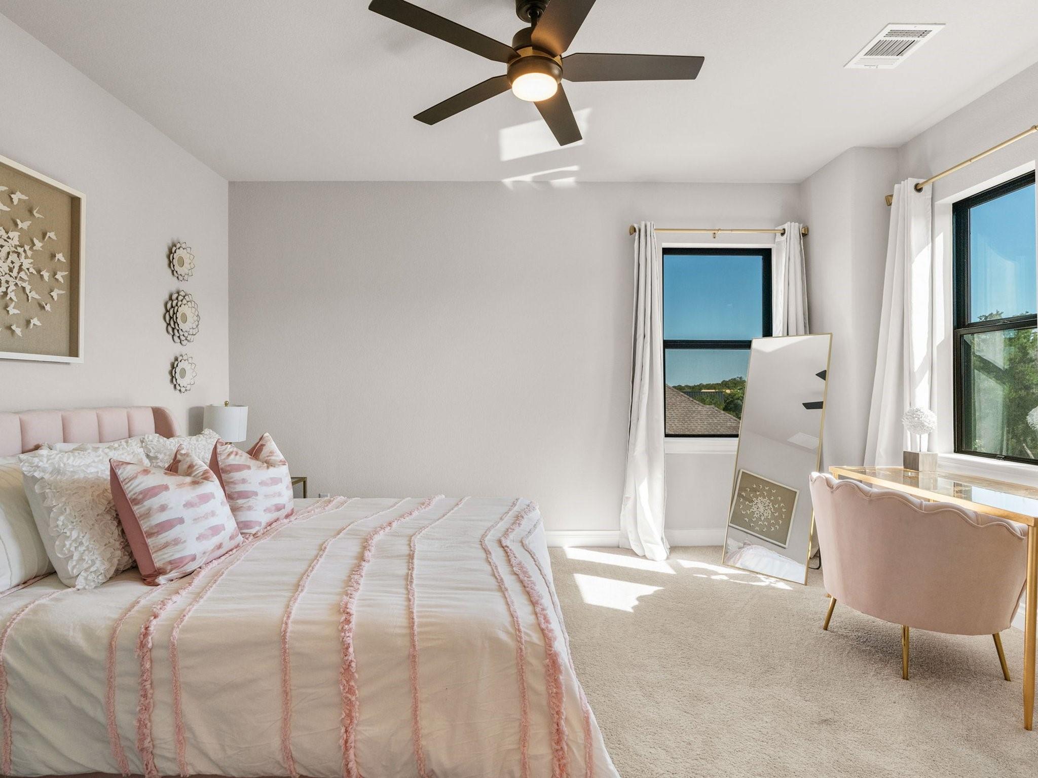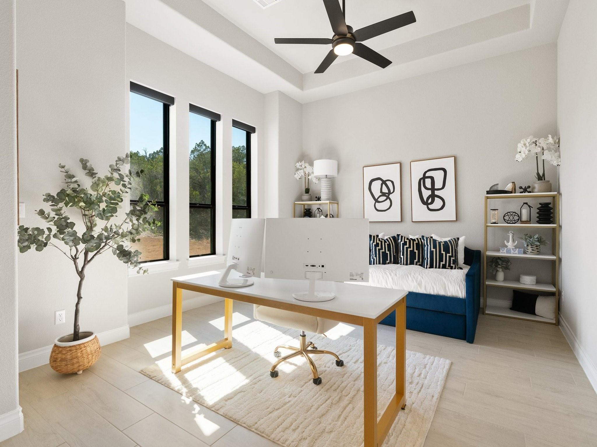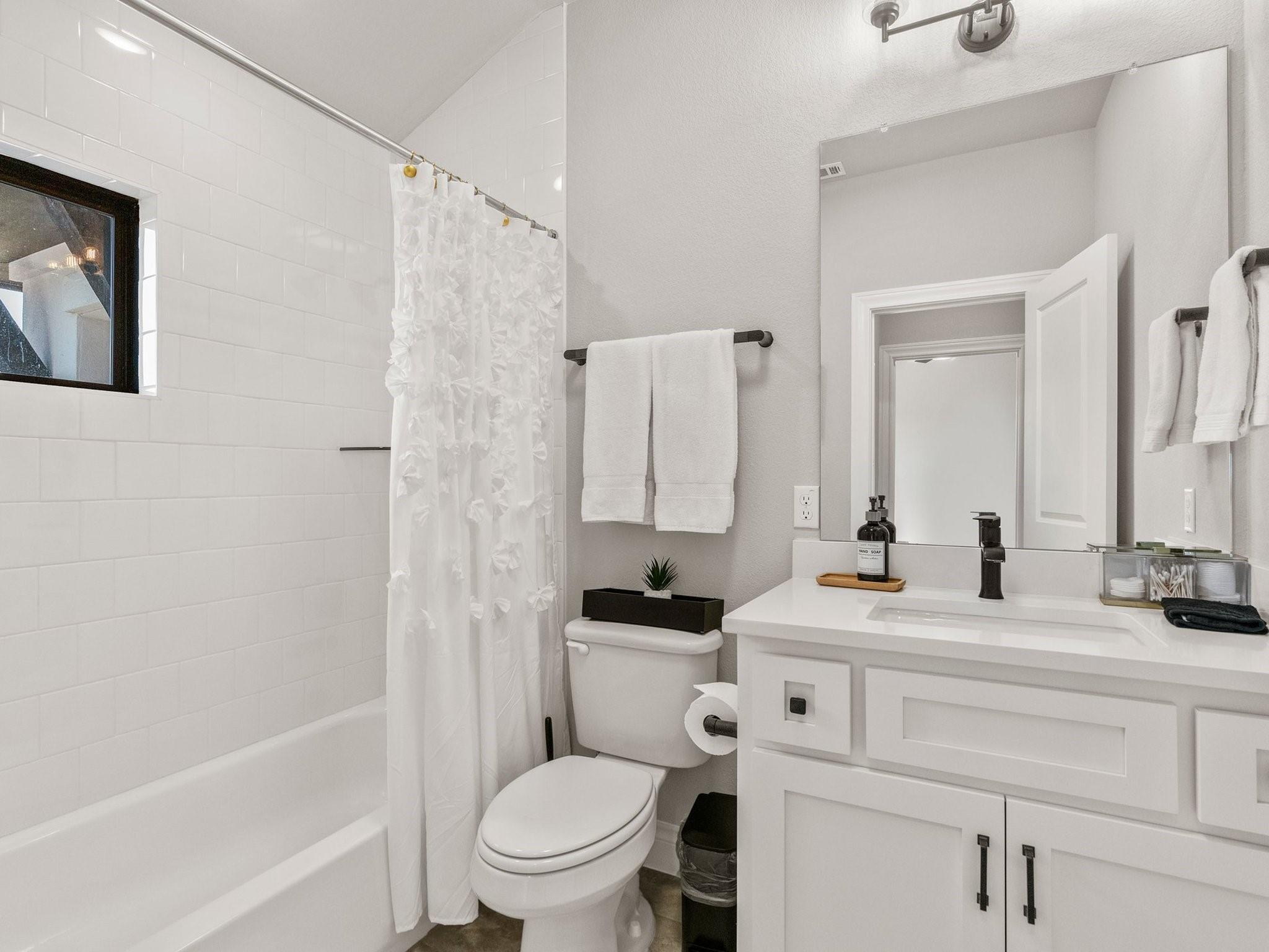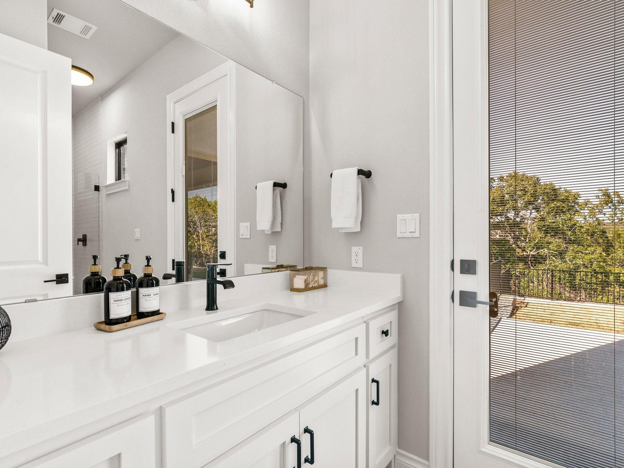 Nestled on the tranquil banks of Lake Travis, near Devil's Cove, this exceptional Drees home is a testament to luxury living at its finest. With breathtaking views of rolling hills and trees gracing every vantage point along the rear of the home, this property offers a rare opportunity to immerse yourself in natural beauty and modern sophistication. As you approach, the grand exterior of this residence welcomes you with its striking architectural angles and contemporary design, showcasing meticulous attention to detail at every turn. Upon entering through the double front doors, you are immediately enveloped in an atmosphere of effortless elegance. The interior boasts an impeccable design, featuring 5 spacious bedrooms, including a primary suite with treetop views. The spa-like ensuite bath boasts a standalone soaking tub, a walk-in shower, and separate vanities, providing a sanctuary of relaxation and rejuvenation. The stunning chef's kitchen is a masterpiece, featuring quartz countertops, tile backsplash, shaker style cabinetry, and state-of-the-art appliances. The dreamy living space is bathed in natural light thanks to picture windows that frame magazine-worthy views. A cozy fireplace serves as the heart of the home, while stackable sliding glass doors seamlessly connect the interior to the outdoor living space. Step onto the elevated back patio and behold miles of unobstructed views that will leave you in awe. An outdoor grilling area and a grassy yard provide the perfect backdrop for outdoor entertainment and relaxation. Enjoy easy access to Bar-K-park, Haute Spot, Crystal Falls Golf Club, and a plethora of local eateries and shops, all within a 20-mile radius. This is all in addition to the beach club with 3 pools, a hot tub, gym, a restaurant, an additional pool area with basketball and pickleball courts plus a marina with a kayak club, right in the neighborhood. Here, you'll find a level of luxury that is unmatched!