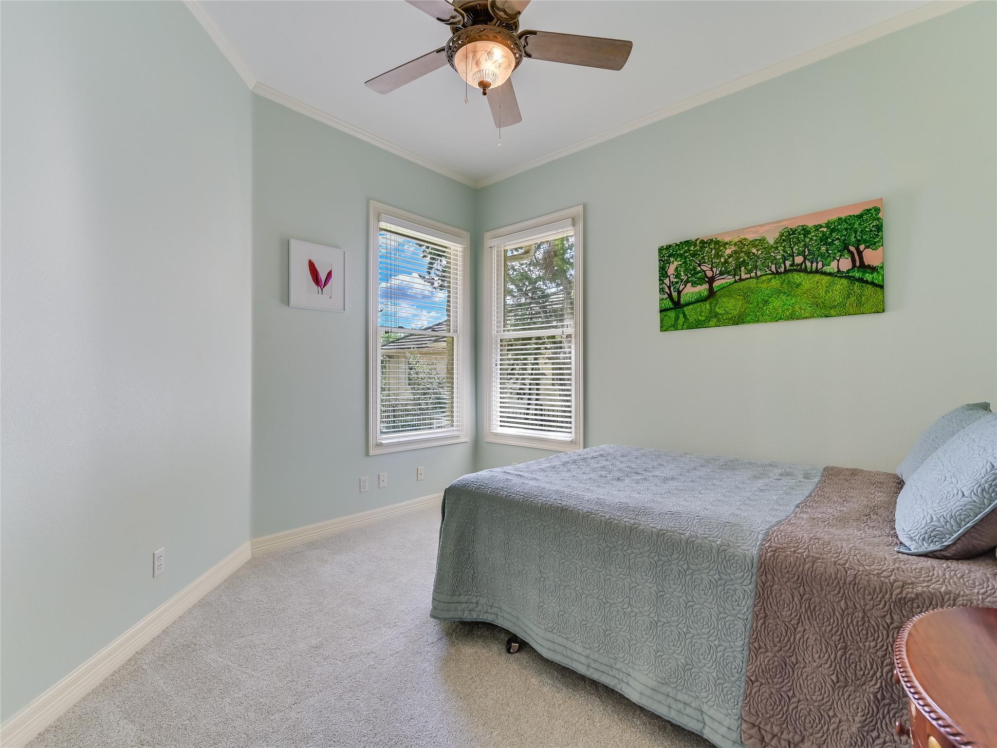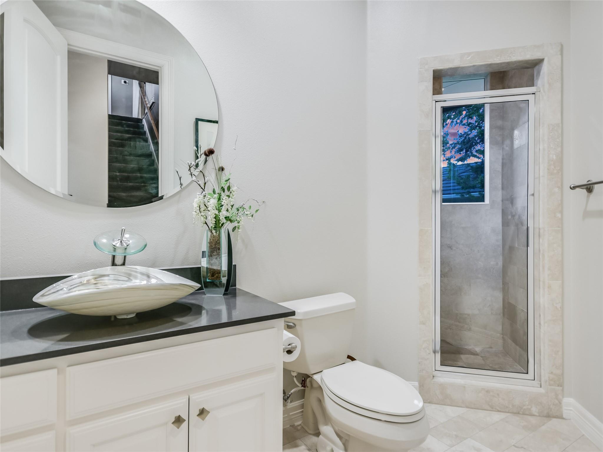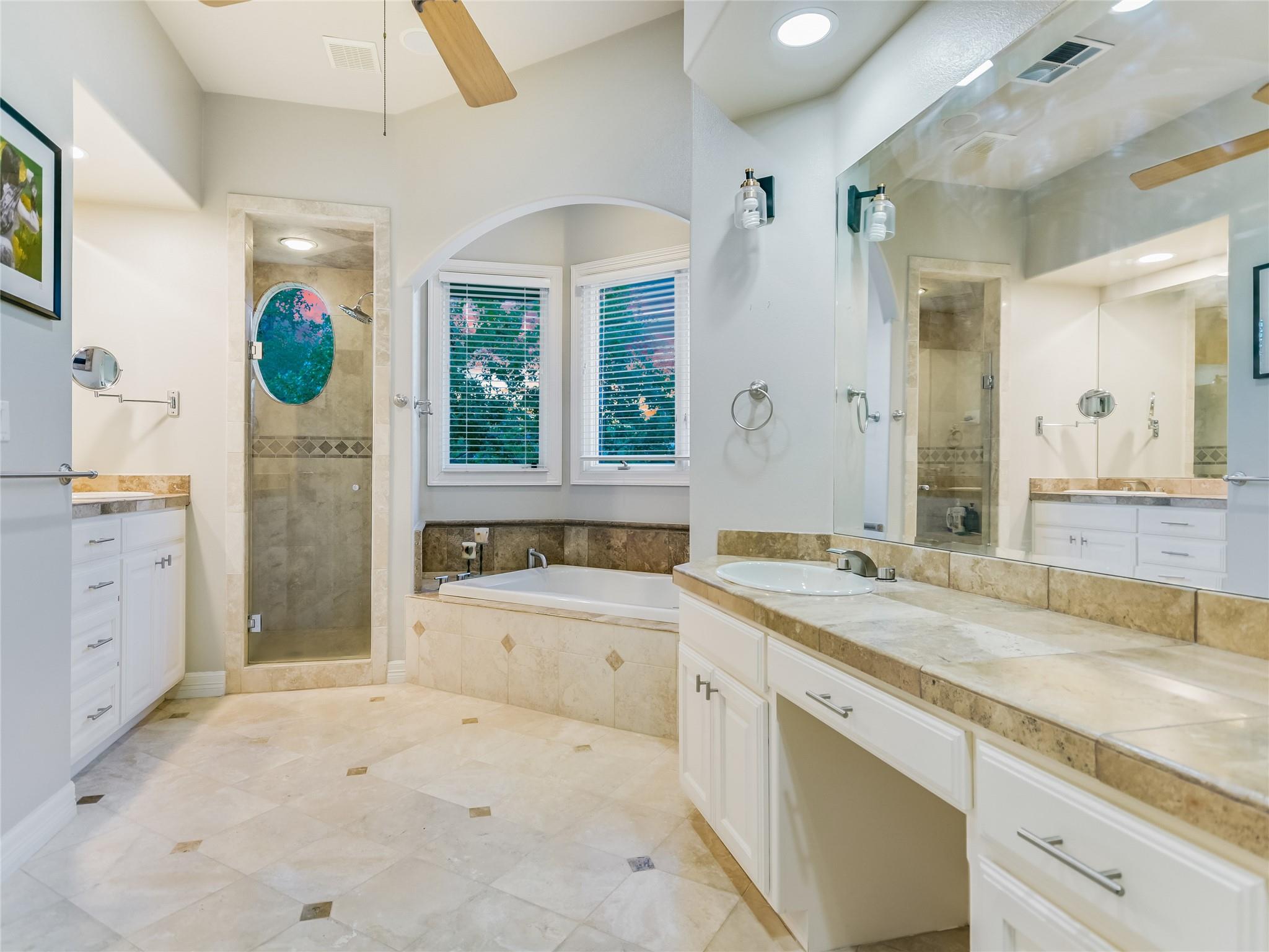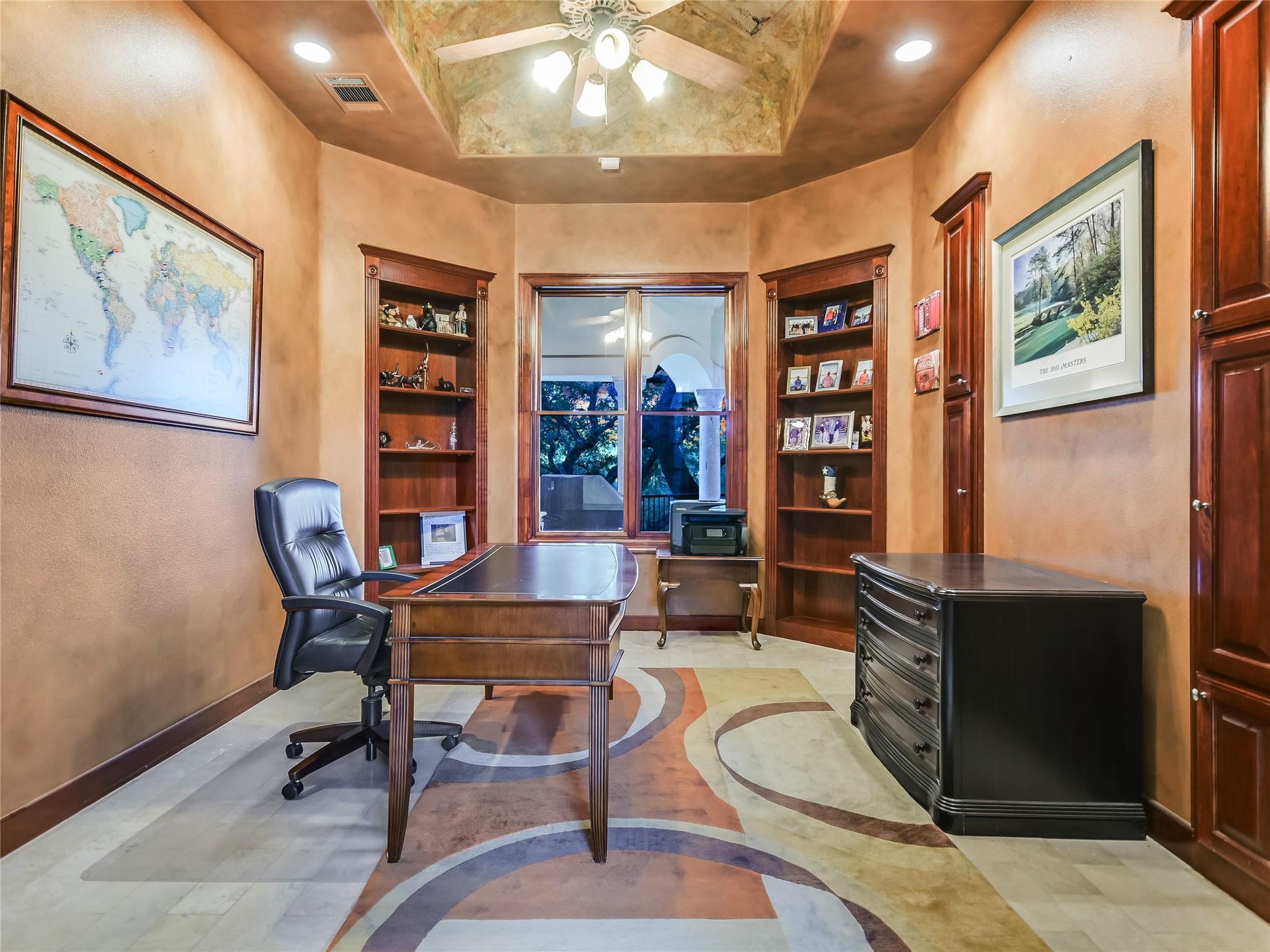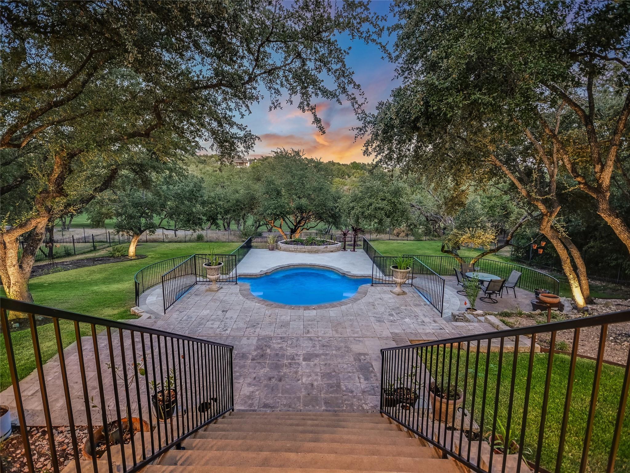Nestled within the gated "Woods" section of Barton Creek, this exquisite custom-built residence offers the perfect blend of comfort, elegance, and modern living. This impressive home has 3,889 sq. ft. PLUS a bonus of 466 square feet above the garage. The open floor plan features 4 bedrooms, 4.5 bathrooms, a stylish study, and a bar. The bonus sq. footage above the garage is a versatile space that can be used as a guest suite, exercise room, media room, music room, or arts and crafts room. This bonus area includes a full bathroom. With a kitchen remodel in 2021, this residence boasts contemporary features and a fresh, updated look. The kitchen is a chef's haven, equipped with top-of-the-line appliances ensuring an exceptional cooking experience every time. The family room is the heart of entertainment, and a striking bar area adds a touch of luxury to your gatherings. The study provides a private and tranquil space, ideal for remote work or quiet reflection. As you step outside to the incredible backyard, you'll be captivated by the serene setting on this deep private lot, offering views of your own heated saltwater pool and spa, meticulously maintained landscaping, and the fairway of hole #6 of the Fazio Foothills golf course. Whether it's a quiet morning coffee or an evening get-together with friends, the outdoor space and expansive covered deck provides an inviting backdrop for relaxation and entertainment. This charming home is located on one of the most desired streets in Barton Creek, offering a sense of community and security within the exclusive gated neighborhood. Don't miss the opportunity to make this magnificent property yours.