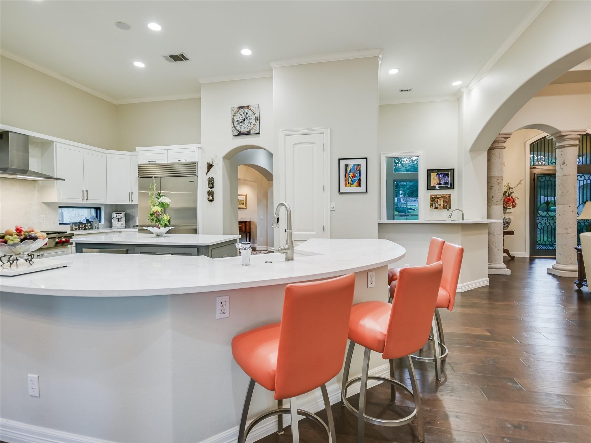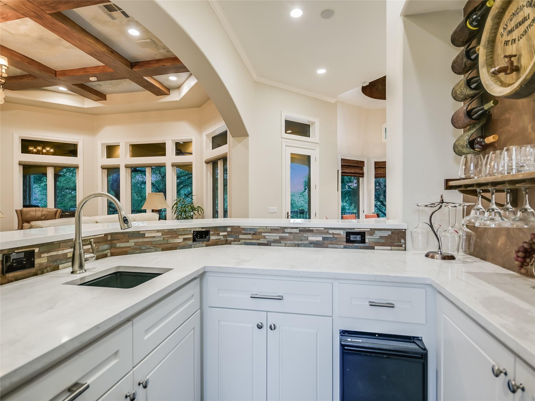 | Interior Features | Bar, Breakfast Bar, Ceiling Fan(s), Beamed Ceilings, High Ceilings, Quartz Counters, Crown Molding, Double Vanity, Gas Dryer Hookup, French Doors, High Speed Internet, In-Law Floorplan, Interior Steps, Kitchen Island, Multiple Dining Areas, Multiple Living Areas, Open Floorplan, Pantry, Primary Bedroom on Main, Walk-In Closet(s), Wet Bar, Wired for Sound | |
