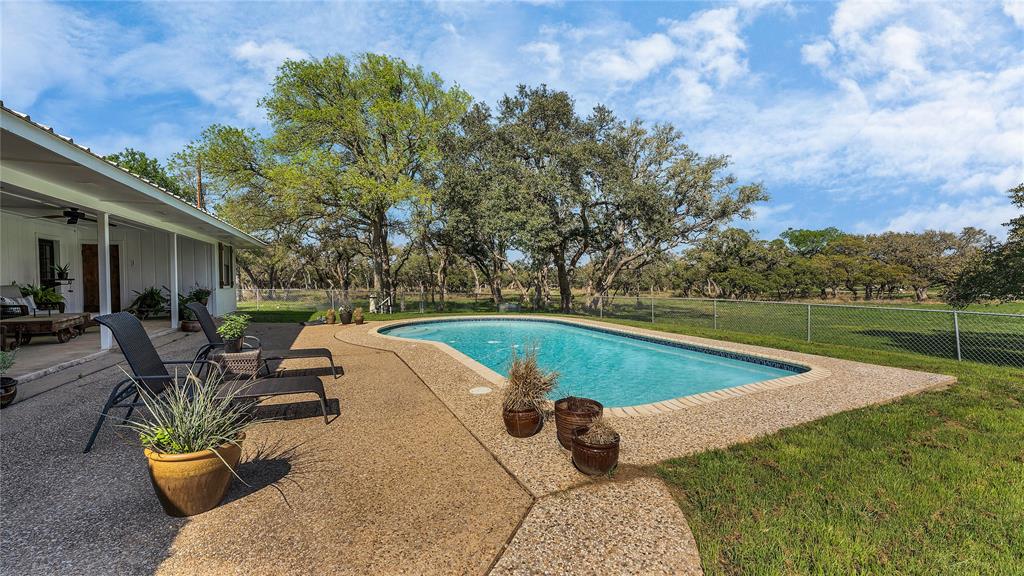 This 88-acre parcel of land is a breathtaking oasis of natural beauty located on Hugo Road between New Braunfels, San Marcos, and Wimberley. The land is covered with stunning elm and oak trees that create a serene and peaceful environment. Purgatory Creek runs through the front of the property, providing a picturesque view and adding to the natural beauty of the land. As you explore the property, you will come across a custom ranch home that is beautifully designed and well-maintained. The home is perfectly situated to take full advantage of the surrounding landscape, with large windows that provide stunning views of the trees and landscape. The home features a comfortable living space & includes a beautiful pool that is perfect for enjoying the warm Texas weather. The property is also home to a variety of wildlife, including white-tailed deer, turkeys, and doves. The abundance of wildlife on the property makes it an ideal location for nature enthusiasts and hunters alike. The peaceful and tranquil environment created by the natural surroundings and wildlife is truly a unique and special experience.