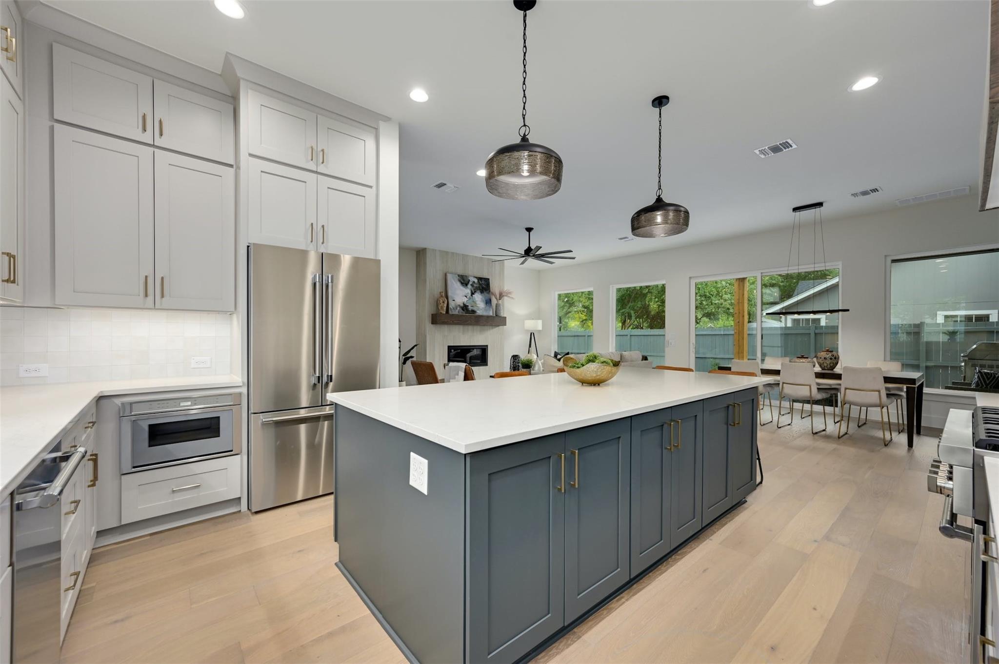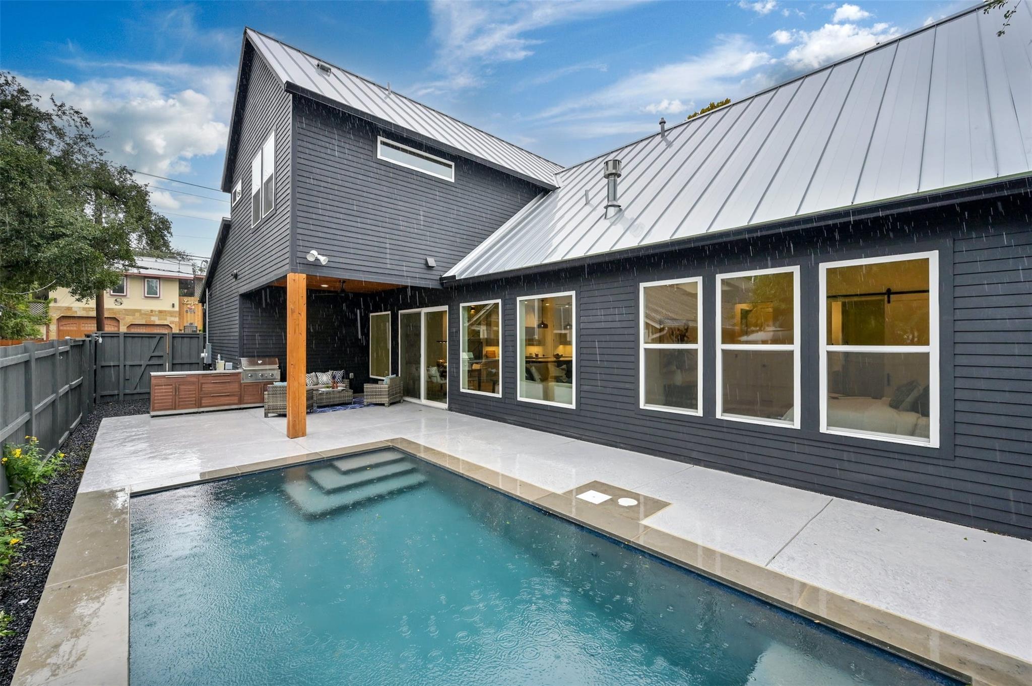 New construction in desirable Allandale neighborhood. This home is 3,144 sq ft boasting 4 beds, 3 baths, office, and game room. Amazing curb appeal on large corner lot. The exterior finishes include natural finish stucco, Hardie siding, and a standing seam metal roof. The backyard is an outdoor oasis with a blue-bottom pool, covered patio, and built-in natural gas grill and cabinets. There is also a fenced wrought iron side yard perfect for kids or dogs away from the pool. Plenty of parking with a 2 car garage and large driveway. Inside you will find an open concept kitchen/family with tall ceilings and a fireplace. The picture windows overlook the stunning pool. The chef's kitchen includes shaker fully overlay cabinetry with high end Thermador stainless steel appliances, a 10' island with bar seating on 2 sides, and walk-in pantry. The primary bedroom is on the first floor overlooking the pool. The en suite bath includes a soaking tub, large walk-in shower with shower head, rain can, and handheld sprayer. Dual vanities with stand-off mirrors and sconces complete the spa-like feel. You must see the large walk-in closet! The laundry room that includes a sink and cabinetry and exterior door to the side yard and driveway. Rounding out downstairs is the guest bedroom and guest bath that could be used as a bedroom or office. Upstairs, you'll find a large oversized gameroom, 2 additional bedrooms, bathroom and a flex space space/office. A few additional features: spray foam, tankless water heater, smooth drywall, automatic irrigation, 1-2-10 warranty, French oak wood floors, epoxy garage floors and zoysia grass. Come tour this home before its too late!