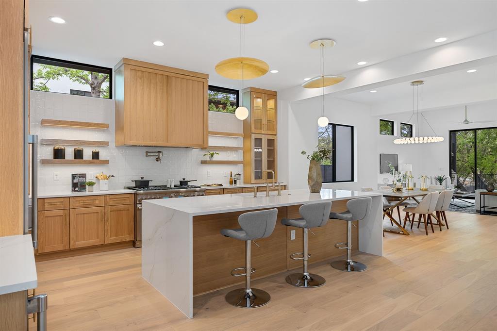 | Interior Features | Breakfast Bar, Built-in Features, Ceiling Fan(s), High Ceilings, Quartz Counters, Double Vanity, Electric Dryer Hookup, Gas Dryer Hookup, Interior Steps, Kitchen Island, Open Floorplan, Pantry, Primary Bedroom on Main, Recessed Lighting, Smart Home, Walk-In Closet(s), Washer Hookup, Wired for Data, Wired for Sound | |