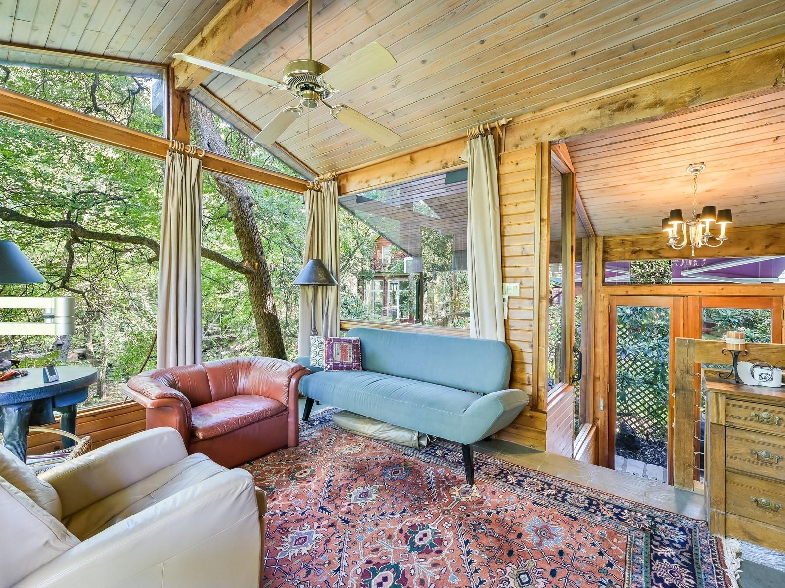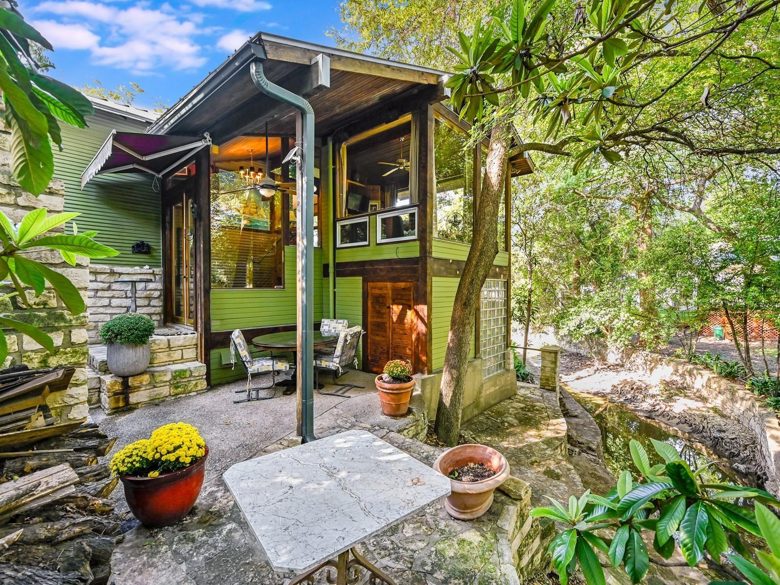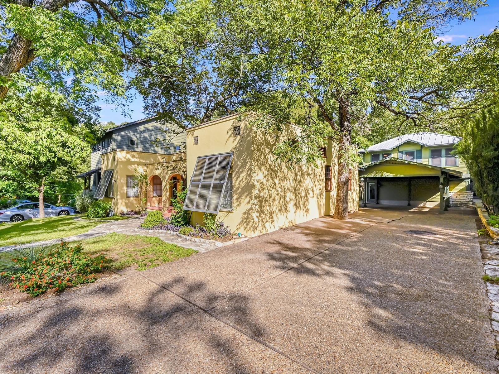Nestled in the heart of Central Austin, this exceptional property boasts an unrivaled location along the tranquil banks of Waller Creek. Its unique position offers an unparalleled blend of urban convenience and natural serenity, just two blocks from the prestigious University of Texas. Comprising three distinct units, this property includes a duplex alongside a main house, creating an ideal setting for both personal enjoyment and investment potential. The duplex units offer a 2/1 on each side with generously sized rooms. The main house sits in the rear of the property in a treehouse-like setting and features 2 living areas including a glass sunroom overlooking the creek, 2 bedrooms and 2 full bathrooms, plus a loft. This one-of-a-kind property offers a seamless fusion of location, exclusivity, and the vibrant pulse of city life harmoniously intertwined with the tranquility of nature along the iconic Waller Creek and unparalleled proximity to academic and cultural hubs.