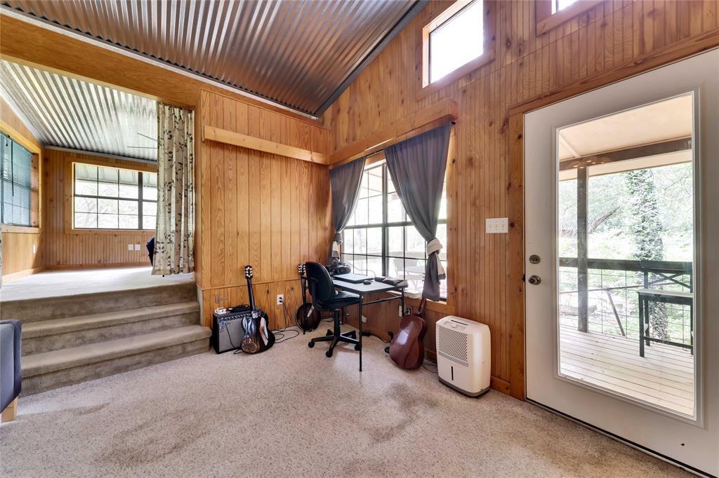 This remarkable property in west Austin rests beautifully on a serene 1+ acre estate and comfortably hosts 2 private homes nestled on a private bluff above Lake Austin. Secluded slightly outside of city limits allows lower taxes, an unrestricted lot, exemplary Eanes ISD schools, a live water well, soaring trees, beach, and many other redeeming factors, that will be introduced on property. Offering the best of both worlds encompassing the verdure of the land, magnificent sunrises and sunsets through the enormous windows, or from the dock, and a peaceful drive to Zilker Park and downtown Austin; this is an enchanting marvel, a fantastically distinctive Texas real estate treasure. Cliff House: 3 bedroom, 2 bath, 1180 sqft. Cabin: 1 bedroom, 1.5 bath, 870 sqft.