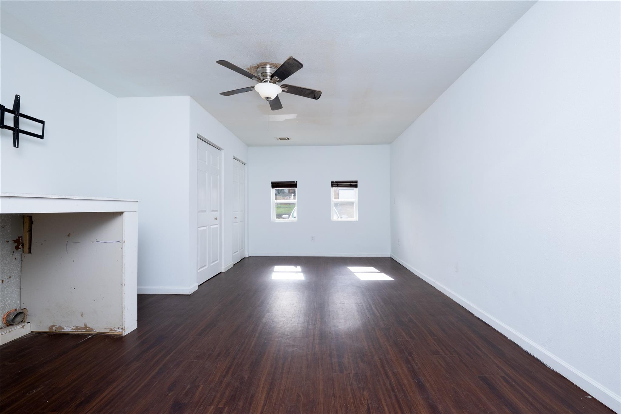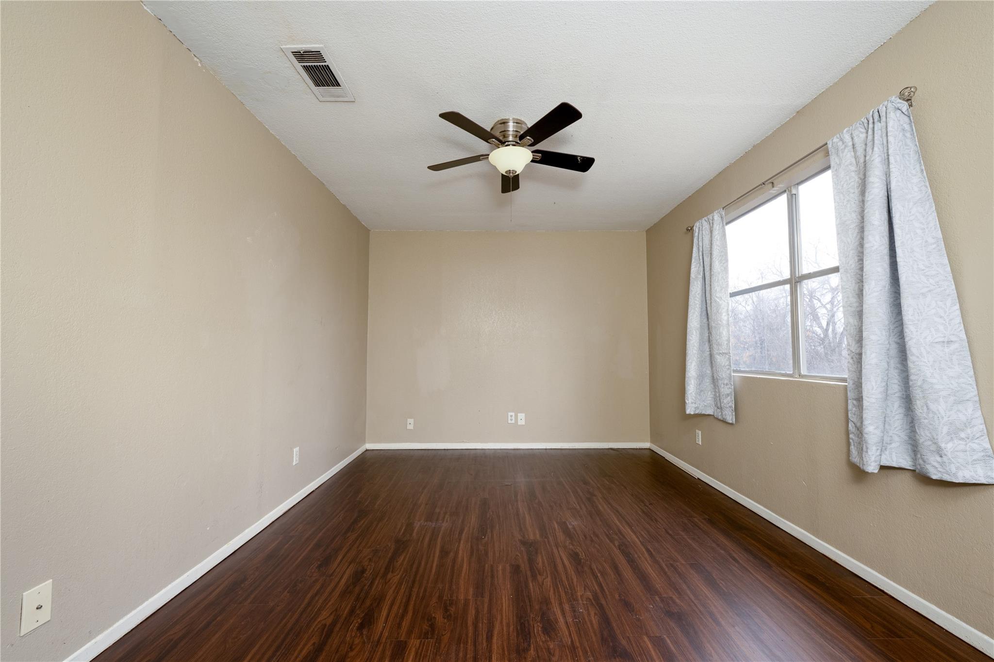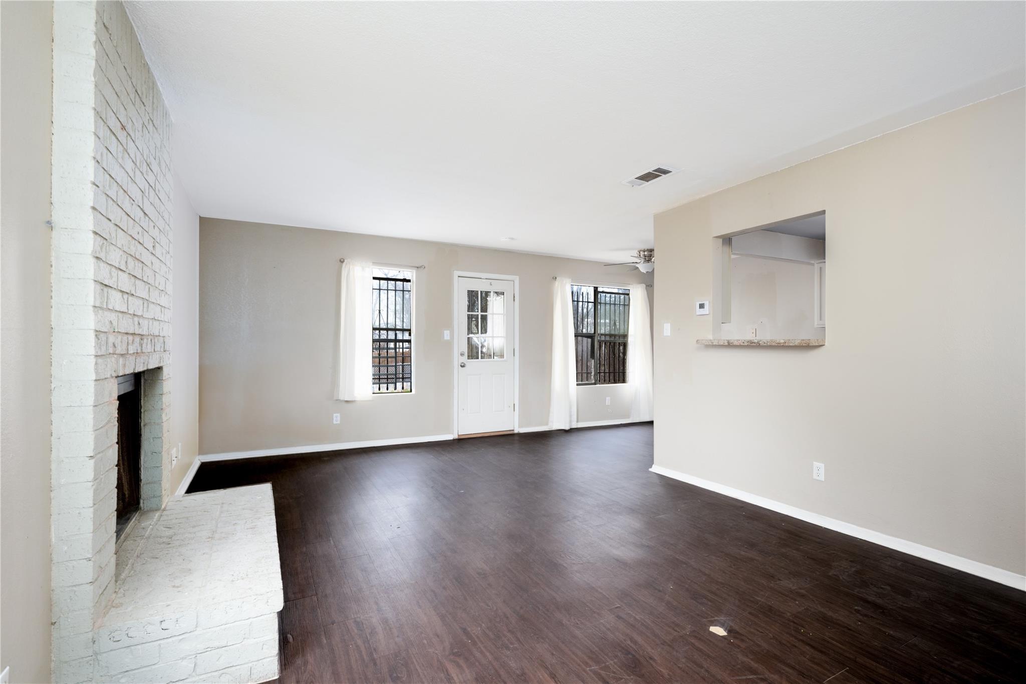 Located near the Tesla Gigafactory, Austin-Bergstrom International Airport, 183, and HW 71, this duplex provides easy access to major transportation hubs and less than 20-miles drive from downtown Austin. The duplex is maintained with a layout that includes 2 bedrooms, 2.5 bathrooms, and a converted garage now serving as an office space, alongside a spacious backyard suitable for various activities. The kitchen features granite countertops and is equipped with a refrigerator, microwave, dishwasher, and electric stove, noting that the microwave and dishwasher have been recently installed. Each bedroom includes a ceiling fan. The living room is equipped with a fireplace, enhancing the space with warmth during cooler seasons.