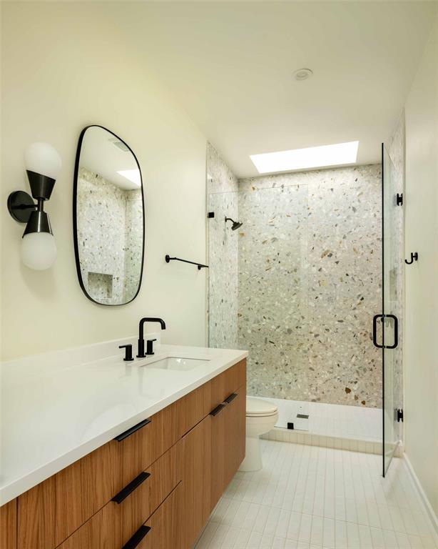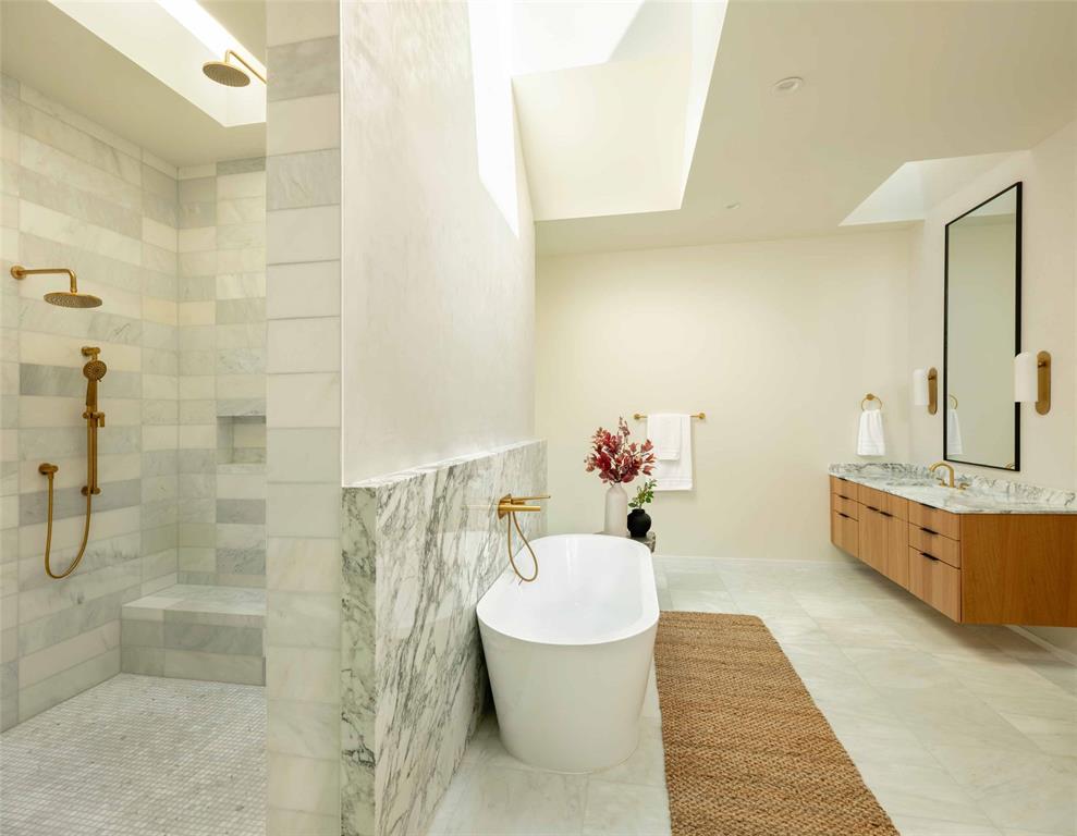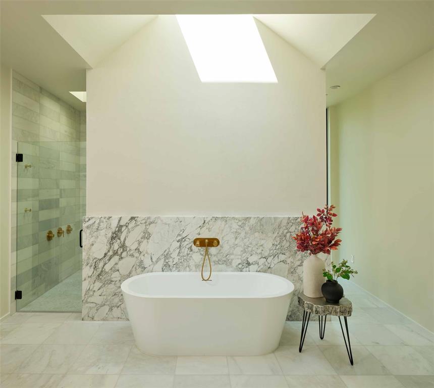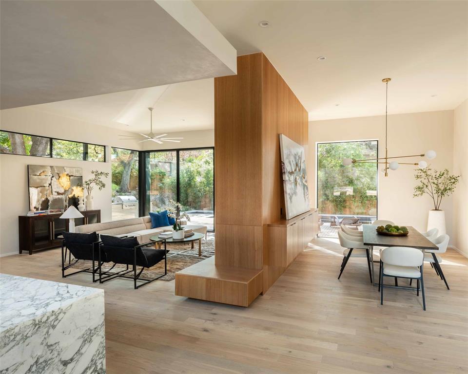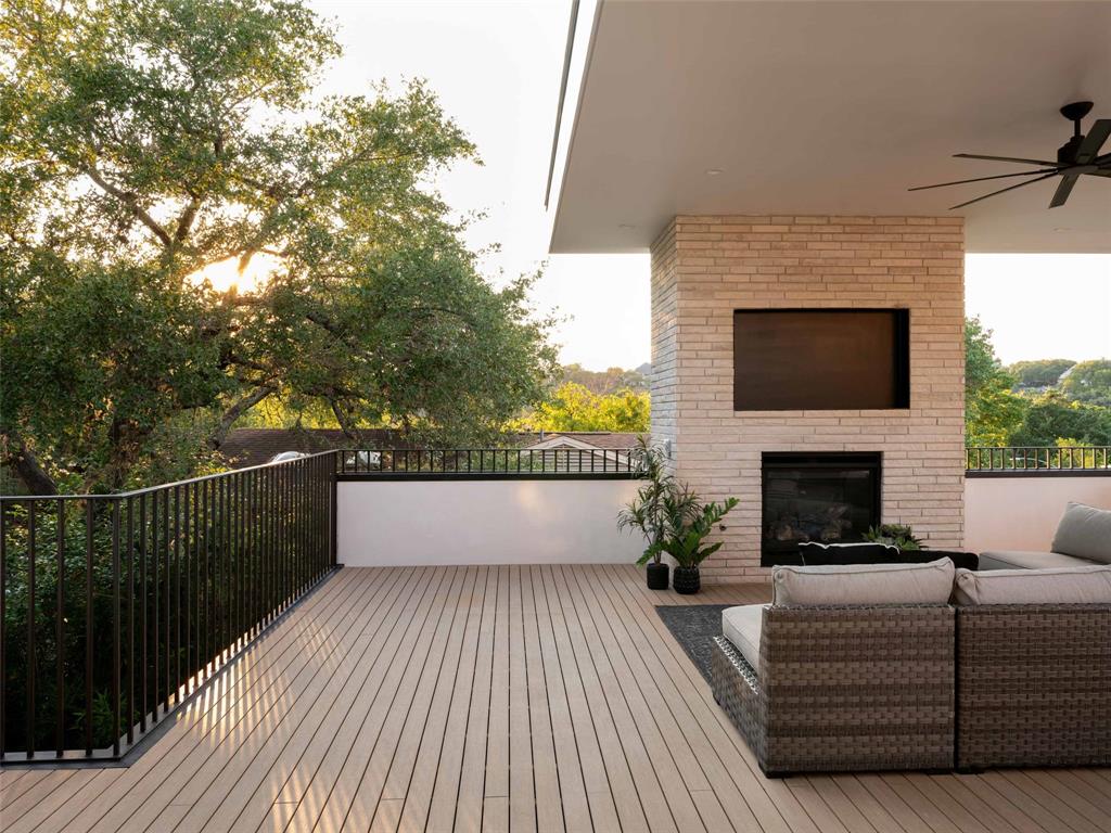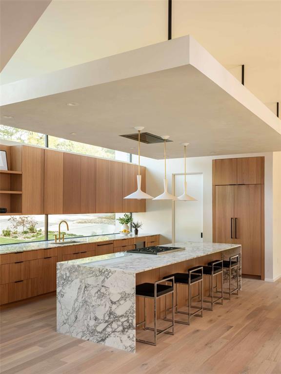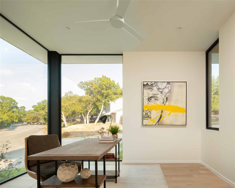 Floating among live oaks on a sprawling corner lot, in a private pocket of Barton Hills, Stonehaven stands as a home of meaningful experience. This stunning new residence at 2601 Barton Hills Drive was designed, curated, and built by the award-winning firm Joseph Design Build. Pairing impeccable craftsmanship with premium finishes, it offers thoughtfully designed living spaces that inspire and uplift. Past the grand entryway and terraced fountain, you’ll enter an inviting entertaining area warmly lit by a glass canopy above the kitchen and a wall of floor-to-ceiling telescopic doors that connect directly to the private backyard. The open kitchen includes grain-matched White Oak cabinetry, Arabescato Marble countertops, and a complete Wolf and Sub-Zero appliance package, perfect for even the most seasoned chefs. Stepping through the sliding doors, you’ll find a sparkling pool, spa, and lounge patio area encircled by a lush landscape. Framing the space from above is an expansive wraparound terrace, highlighted by a stone-wrapped covered fireplace. The terrace is one of several spots to enjoy panoramic Greenbelt views and gorgeous sherbet-colored sunsets. Off the lower level sits the private primary suite, a sanctuary of skylights and sophisticated finishes. It includes a spa-style bath with a freestanding soaking tub and marble-wrapped walk-in shower, alongside a custom California-style wardrobe closet. The upper level holds the remaining bedrooms, a spacious home office, a second den, and a large flex room with floor-to-ceiling windows, ideal for a home gym or theater. The entire design is brimming with sustainable elements, including energy-efficient windows, appliances, and insulation, smart thermostats, low-VOC flooring and paint, and more. Full details at jdbatx.com/available/2601-barton-hills