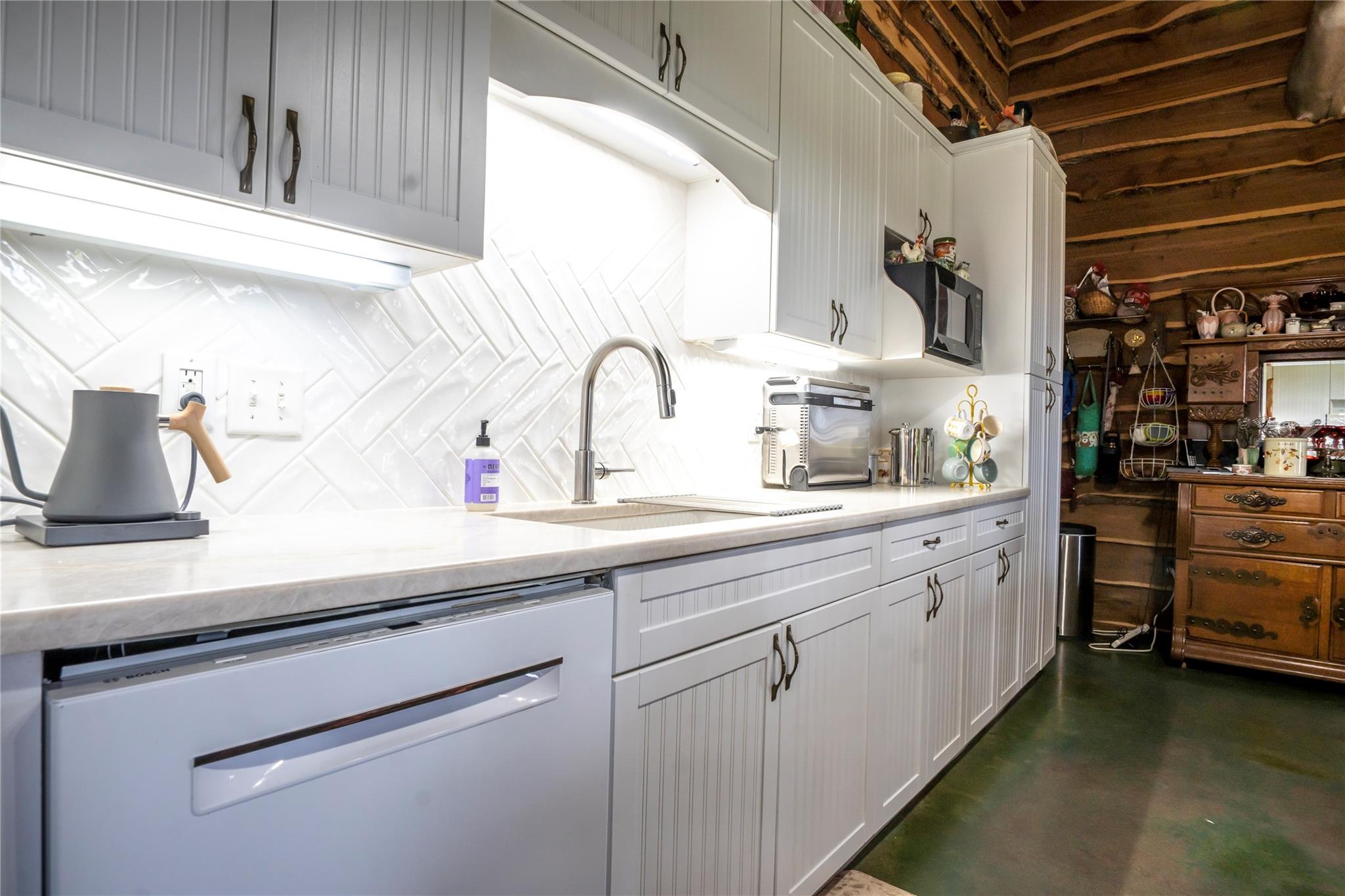WATER: Water is abundant on this ranch! The property is highlighted by a beautiful private lake that has been measured at 40.916 acres, per the owner, when at full capacity. The lake is stocked with largemouth bass, channel catfish, crappie, and red-eye perch. In addition to the private Lake, the property also has 5 stock tanks spread throughout 5 separate cross-fenced areas. A rural water line supplied by Richland Springs Utility District with 2 taps/meters is present along with three water wells, and a private 1 ¼ inch PVC piped water line running along the boundary from the Southeast corner up to the house. WILDLIFE: Native wildlife such as white-tailed deer are found in abundance as well as turkey, hogs, and dove. During the winter months, the private lake sees an incredible number of migrating birds visit its waters including sandhill cranes, various species of ducks, and even pelicans. TOPOGRAPHY/VEGETATION: The gently rolling hills on the ranch are covered in numerous varieties of hardwoods, including Post Oaks, Blackjack Oaks, Elms, and even Pecan trees, along with areas of Mesquites. This ranch has a healthy variety of grasses including around 80 acres of Coastal Bermuda (Coastal, Jiggs, Tipton), 120 acres of Willman Love Grass, and the remainder in native Texas Grasses including Little Bluestem and Switchgrass. IMPROVEMENTS: Upon entry through the 24-foot commercial electric main gate sits a custom 2000 SQFT, 2 bed, 1 bath home shaded by a towering Post Oak and is constructed with a standing seam metal roof and structurally Integrated panels with an R-Value of 25 plus. The home is powered with a 200-amp electric service and is equipped with an oversized septic for future expansion. NEWLY UPGRADED KITCHEN: Recently, the home underwent significant upgrades including a newly upgraded kitchen featuring a stunning quartzite countertop, a new sink, backsplash, and dishwasher, enhancing both functionality and aesthetics.