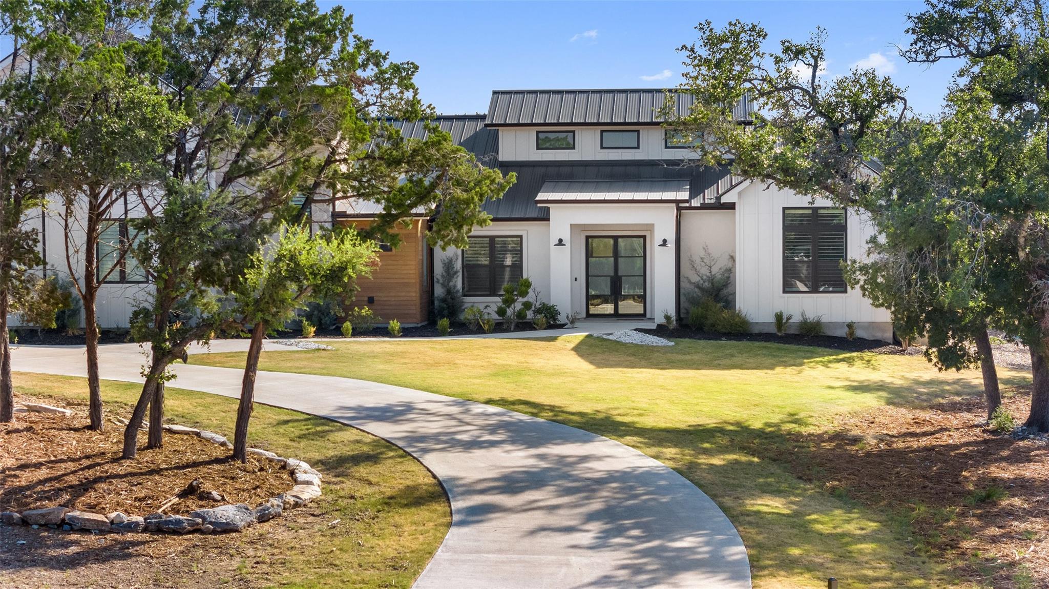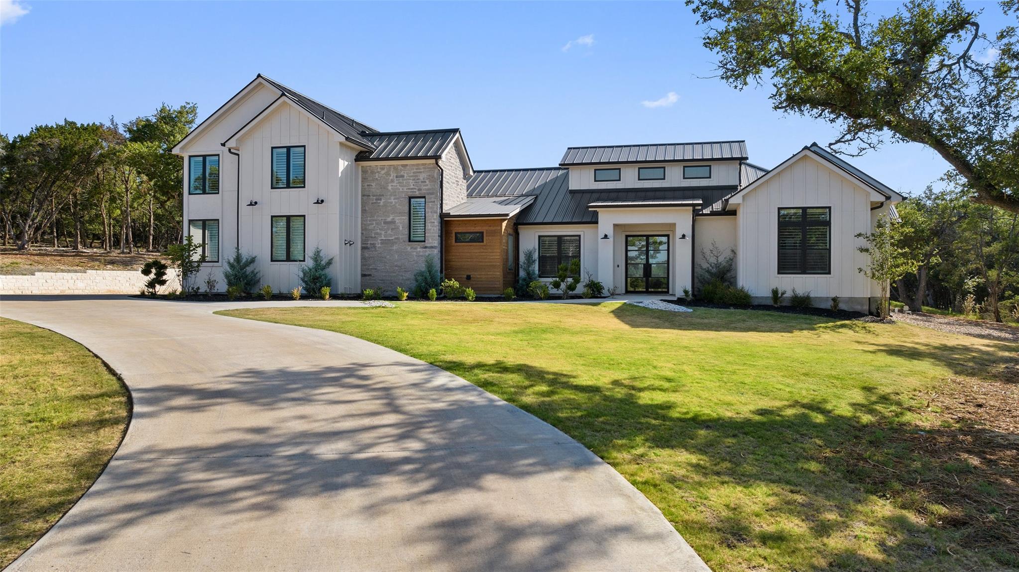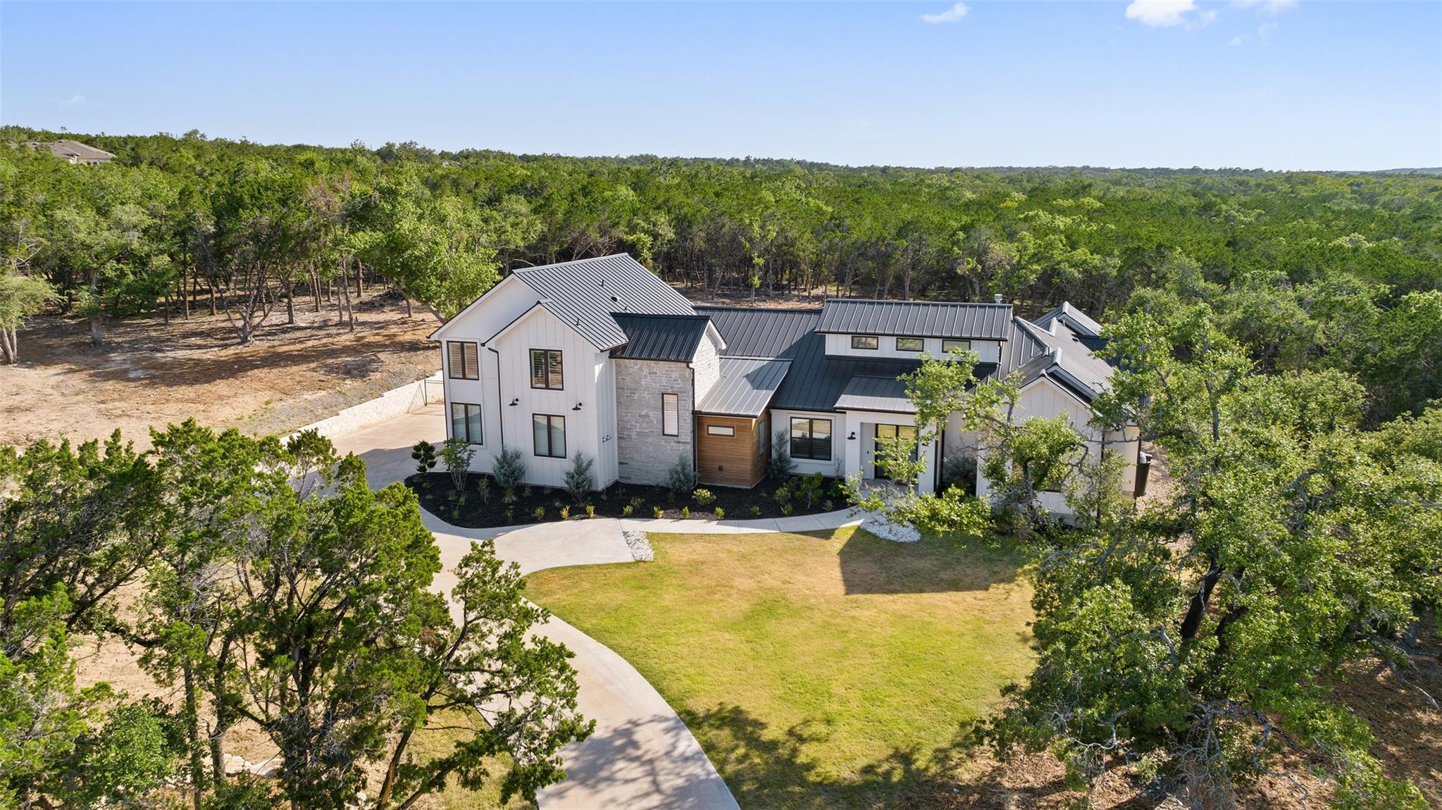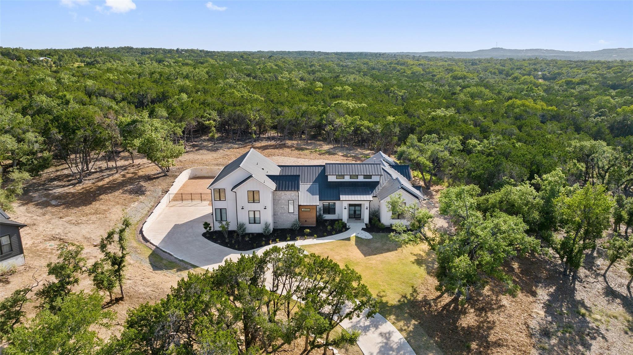 Rare Opportunity for sellers 2.99% conditional financing upon approval! Architecture is an art of design to balance flow and visual appealing aesthetics. Meet 175 Caspian Ln a Hill Country Contemporary design appealing to all of defines a desirable abode. Situated in an acute cul-de-sac facing allows for privacy to its fullest. This lot opens up to the south west direction allowing warmer winter solstice and protection from the Summer solstice without sacrificing sunsets. Boasting with additional outdoor potential the lot has been cleared ready for expansion of the outdoor Texas lifestyle. Upon entering the dwelling you are greeted with high vaulted ceilings and open passing through opening to Hill Country. Light North European White Oak wide planked floors spread across the entire home. Located on the main floor you will find primary suite, two additional bedrooms with one en-suite as well as common areas and office. Ascending up the stairs you will find additional two bedrooms, entertainment area complete with wet bar and additional storage/office space. Kitchen is dressed with full natural light and furnished with the collection of Thermador appliances. Spacious pantry with arrangements for prep appliances. Garage consists of 3 car spacious bays connection directly to the mudroom and kitchen. Gated level entry allows of easy access with vehicles to setup for entertainment events.