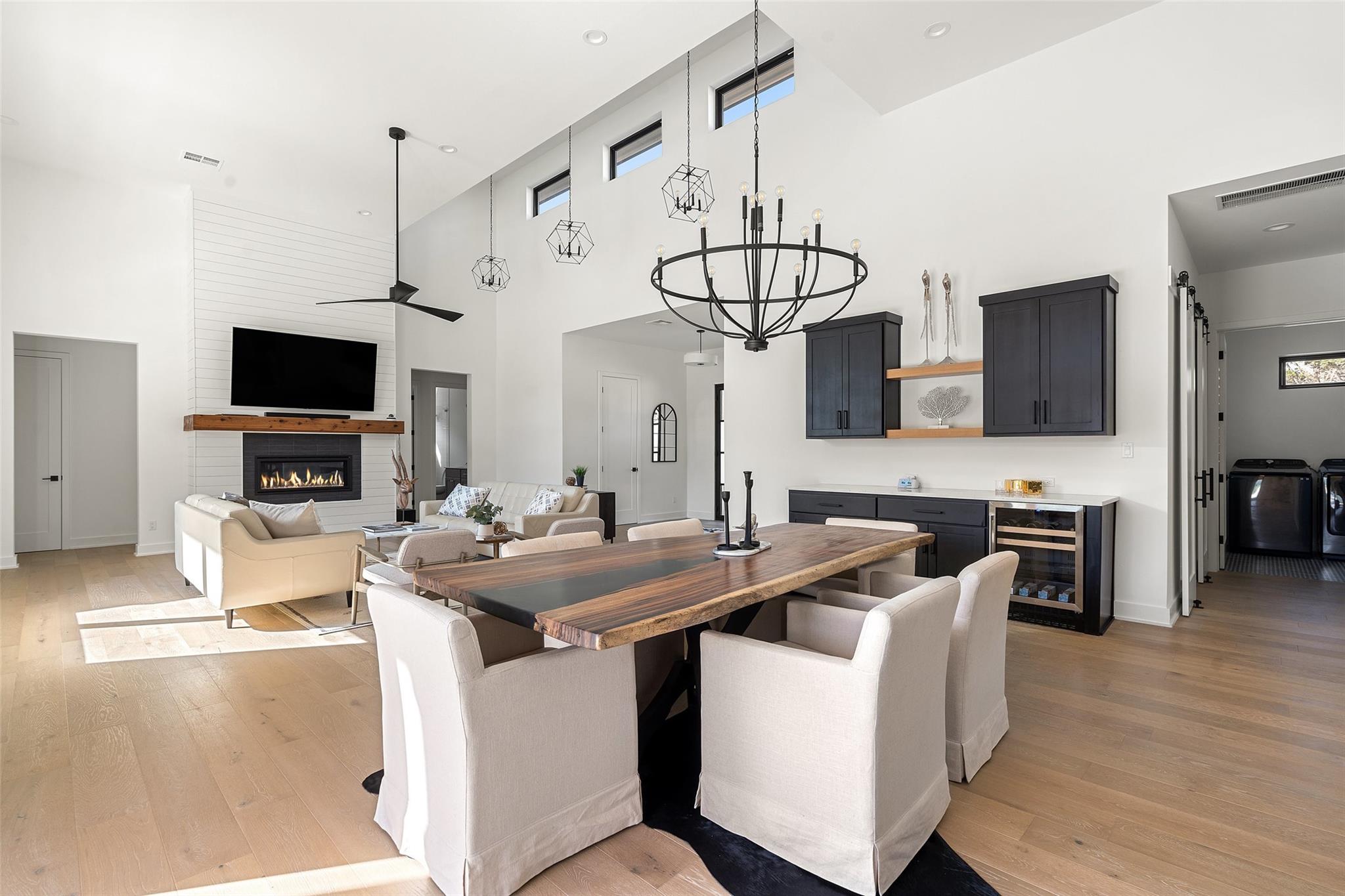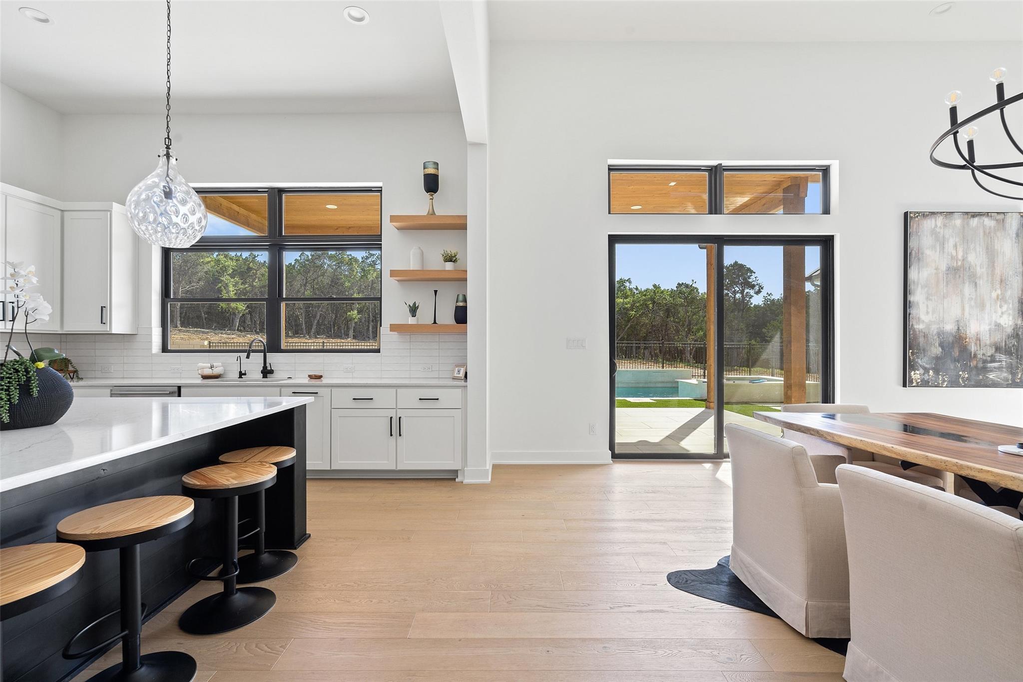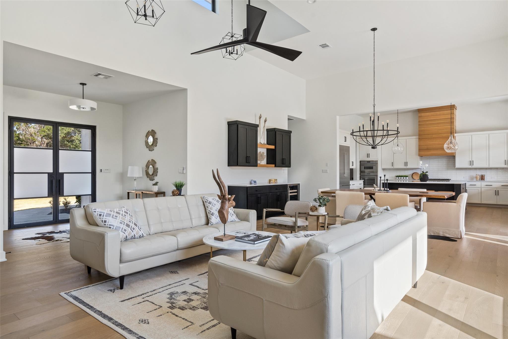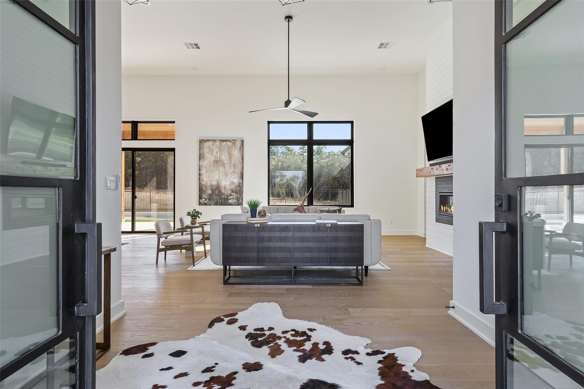 Rare Opportunity for sellers 2.99% conditional financing upon approval! Architecture is an art of design to balance flow and visual appealing aesthetics. Meet 175 Caspian Ln a Hill Country Contemporary design appealing to all of defines a desirable abode. Situated in an acute cul-de-sac facing allows for privacy to its fullest. This lot opens up to the south west direction allowing warmer winter solstice and protection from the Summer solstice without sacrificing sunsets. Boasting with additional outdoor potential the lot has been cleared ready for expansion of the outdoor Texas lifestyle. Upon entering the dwelling you are greeted with high vaulted ceilings and open passing through opening to Hill Country. Light North European White Oak wide planked floors spread across the entire home. Located on the main floor you will find primary suite, two additional bedrooms with one en-suite as well as common areas and office. Ascending up the stairs you will find additional two bedrooms, entertainment area complete with wet bar and additional storage/office space. Kitchen is dressed with full natural light and furnished with the collection of Thermador appliances. Spacious pantry with arrangements for prep appliances. Garage consists of 3 car spacious bays connection directly to the mudroom and kitchen. Gated level entry allows of easy access with vehicles to setup for entertainment events.