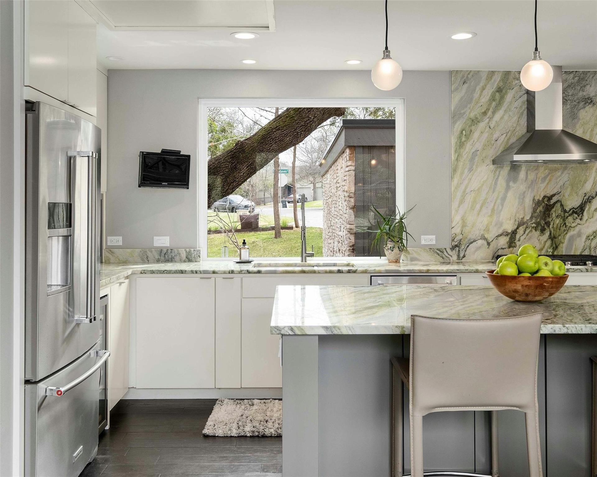 The best house in close-in Westlake under $2 million! Open Sunday 2-4. This beautifully renovated mid-century home is tucked away on a quiet street in the highly sought-after Westwood neighborhood. Remodeled to the studs in 2017 and featured in the NARI annual tour of homes, this home embodies treehouse living at its finest. When you arrive at the home, you are greeted by an inviting outdoor living area built around the towering live oak trees. The main level features an updated kitchen with gorgeous quartzite countertops, stainless appliances and huge windows. The dining area has two 8 foot triple sliding doors open to the AZEK deck overlooking the large terraced back yard perfect for playing backing to a wet weather creek. The stone fireplace is the heart of the home in the light-filled living area perfect for easy entertaining and daily living. An oversized guest suite with a built-in lounging nook bed completes the main level. Head downstairs for the private living quarters including two secondary bedrooms and a cozy den. The primary suite features a large walk-in closet, full bath and access to the back patio and yard. Westwood is one of the only walkable neighborhoods in Westlake, where kids ride their bikes to school and families enjoy leisurely walks to breakfast tacos at Texas Honey Ham or rooftop happy hours at Sway. Minutes from downtown Austin, Zilker Park and Lady Bird Lake, you get the ideal trifecta- relaxed neighborhood feel, top rated Eanes schools and convenience to downtown Austin. Rollingwood Pool membership can convey with purchase.