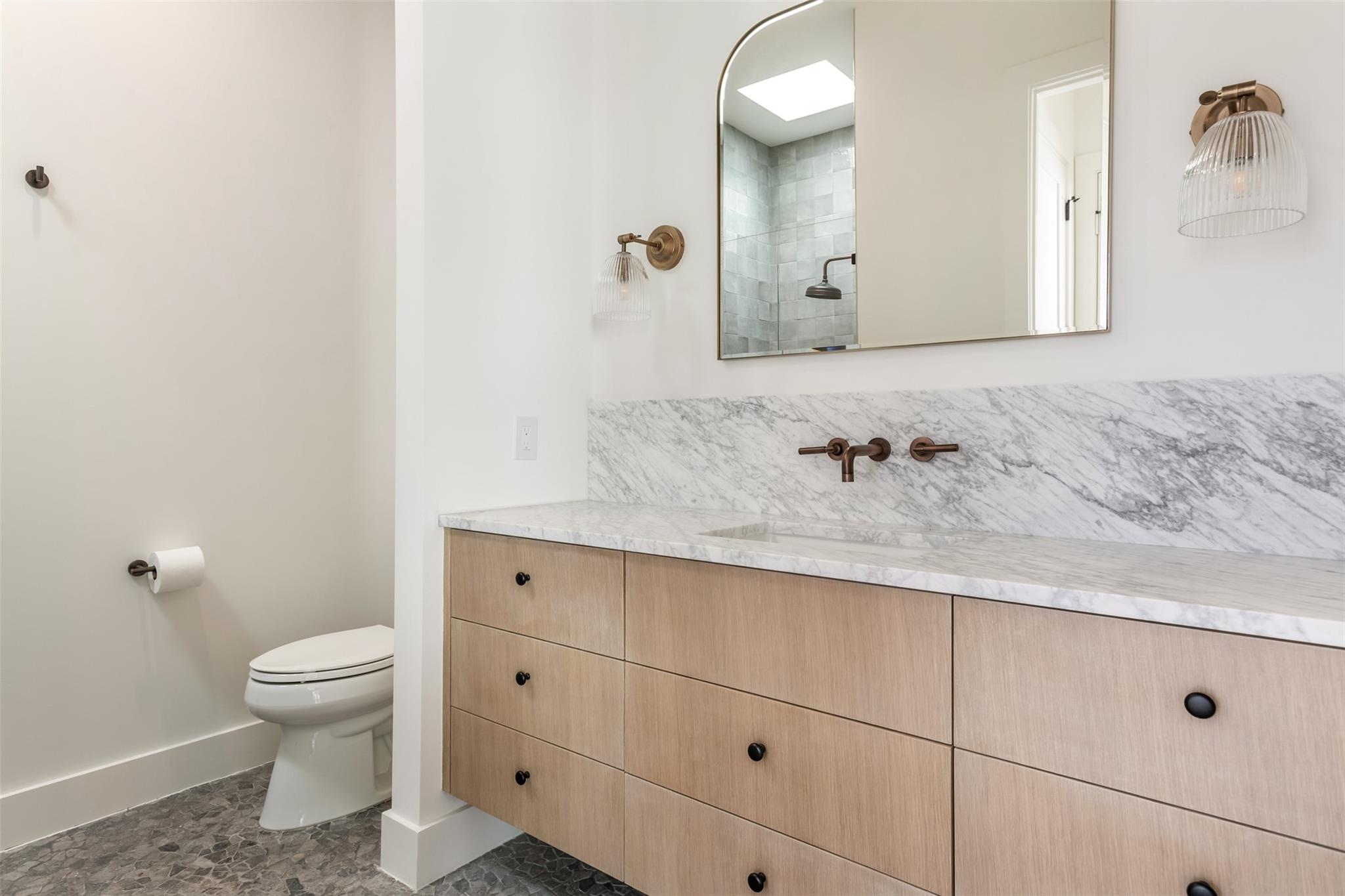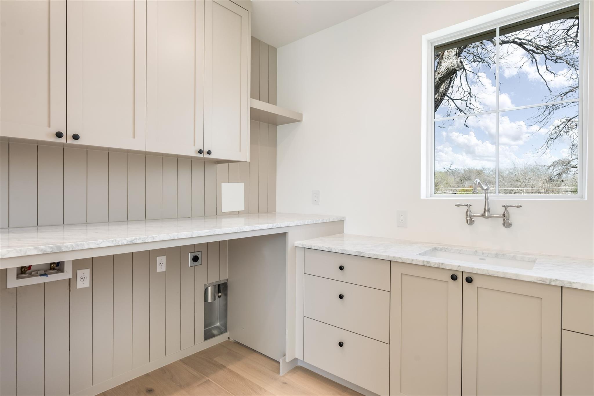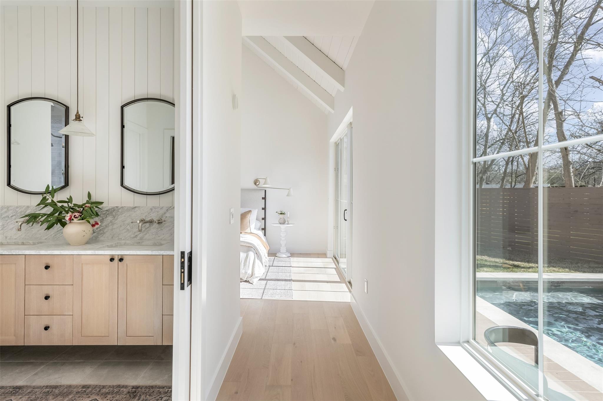 Experience the epitome of modern luxury living at Everglade Drive, a meticulously designed Cedar & Oak home in a convenient South Austin neighborhood. Adorned with top-of-the-line amenities this home is a stand out in quality of construction, functionality and design. As you step inside, you'll be greeted by a spacious open floor plan.The kitchen, dining, and living areas wrap around the stunning backyard creating a relaxing indoor outdoor feel. Featuring hardwood floors, custom cabinetry and built-ins, Venetian Plaster finishes and large windows that bathe the interiors in natural light. This space is a pleasure to inhabit. The gourmet kitchen is a chef's dream. The large center island & Venetian Plaster vent hood anchor the space. Marble countertops, and beautiful lighting add to the luxurious and cozy feel that threads its way through the entire home. A butler's pantry, coffee bar, and wall of additional storage complete the space adding functionality and beauty. The primary suite is a true retreat, complete with vaulted ceilings, tranquil natural light, and direct access to the backyard and pool. The ensuite bathroom features walk-in shower, double vanity, marble finishes, and a large custom closet with it own laundry hook-ups Outside is a private oasis, complete with a refreshing pool, and a spacious covered patio with an outdoor kitchen & access to the separate pool bathroom, perfect for hosting gatherings. Upstairs feathers 3 additional bedrooms, a full laundry room, bathroom, and cozy additional living space. The property also offers a one car garage with an additional storage room for added convenience. This home also features multiple laundry locations, energy-efficient fixtures and appliances, a tankless water heater, and spray foam insulation, and zoned HVAC, ensuring comfort and sustainability. Don't miss the opportunity to make this exceptional property your own. Schedule a showing today and experience the epitome of refined living.