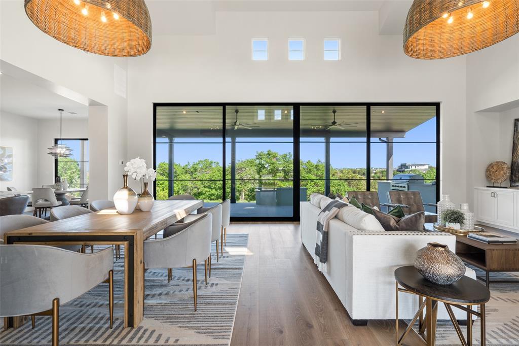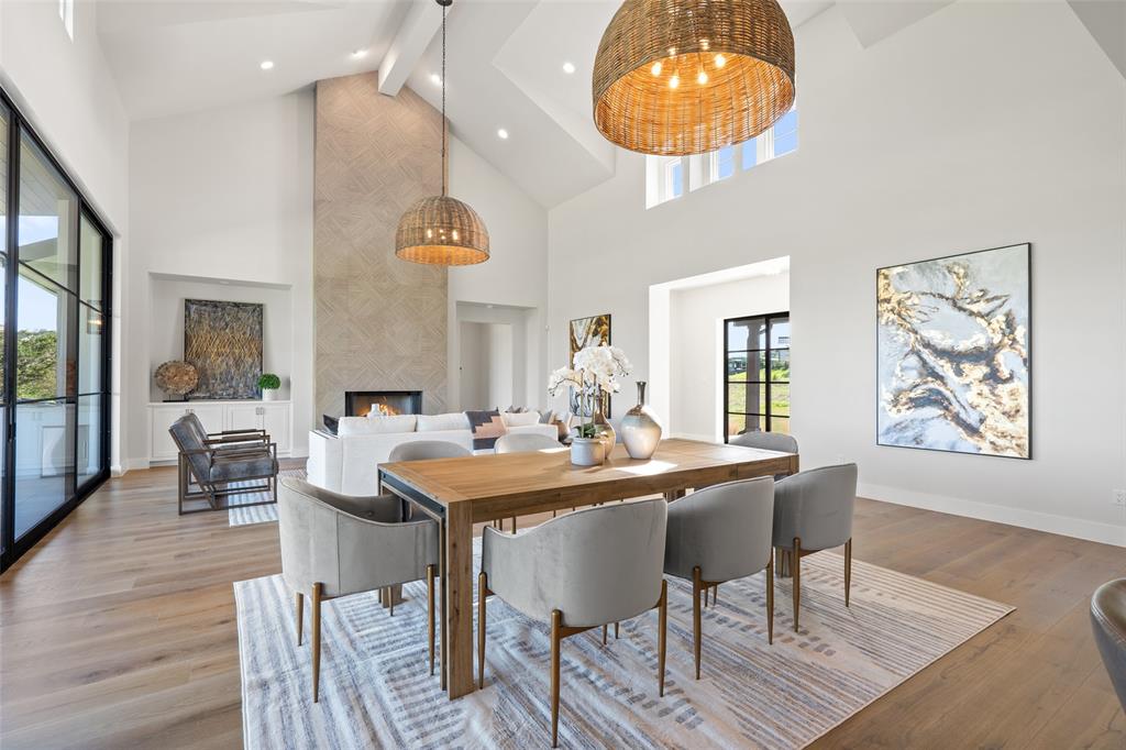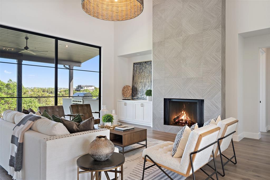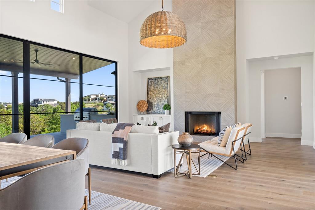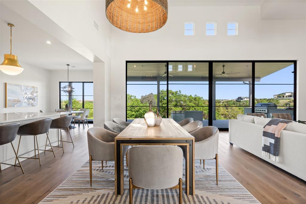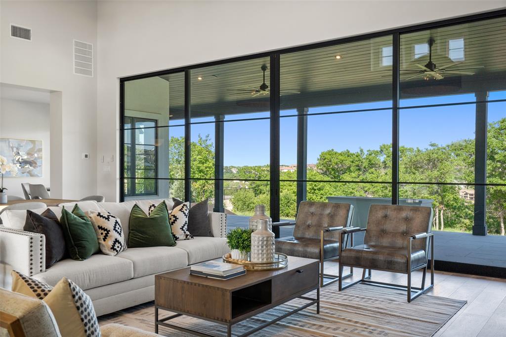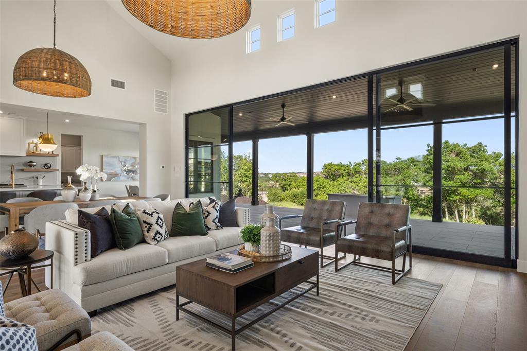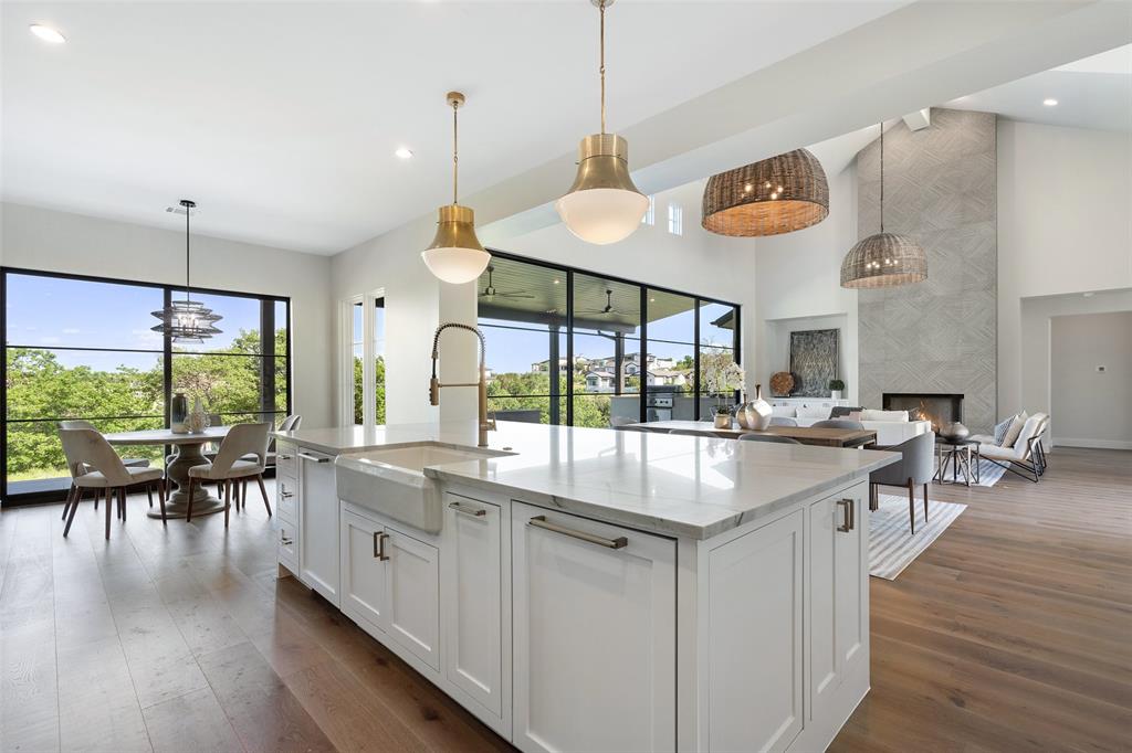 This brand-new Rough Hollow home offers a gracious and flexible floor plan, sunlit contemporary style, and incredible indoor-outdoor entertaining. Soaring ceilings lend drama to the great room, where a wall of glass frames spectacular views. A ceiling-height fireplace dominates one side of the main floor living area, with a chef’s kitchen on the other. Thermador appliances, a butler’s kitchen, a walk-in pantry, and a glass-enclosed wine room add functional luxury to everyday living. Enjoy seamless flow through the accordion glass doors that open fully to connect the interior with the outdoor living space. The .7-acre backyard oasis offers a flat lawn, stellar views, and a terrace with an outdoor kitchen and fireplace lounge. This adaptable, 4,900+sf home meets you where you are. The main level, with an owner’s suite and two additional first-floor ensuites, is ideally suited for multigenerational living or working from home. The second floor makes for a great kids’ realm, with two bedrooms and bathrooms, plus a built-in desk area. This home also has a first-floor flex space, a home theater, and a 3-car garage. The Peninsula at Rough Hollow is a sought-after, resort-style community on Lake Travis’s exclusive south shore. Live steps from the yacht club, private marina, and year-round amenities. Located in the Lake Travis ISD, this family-friendly community is only 30 minutes from Downtown Austin.