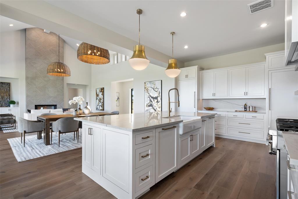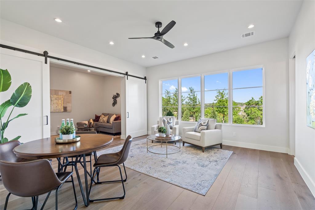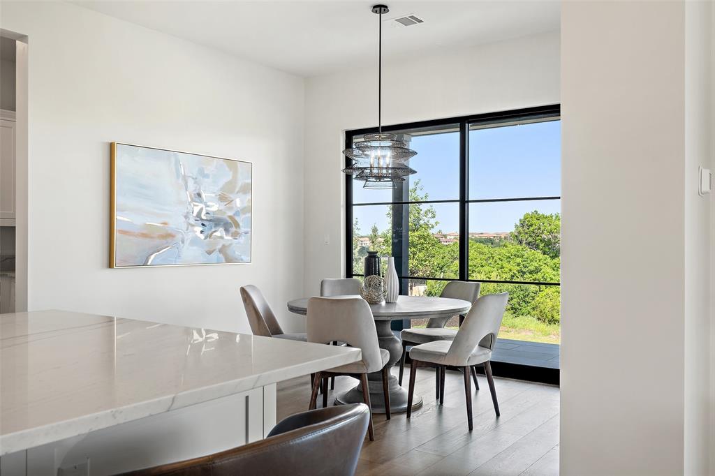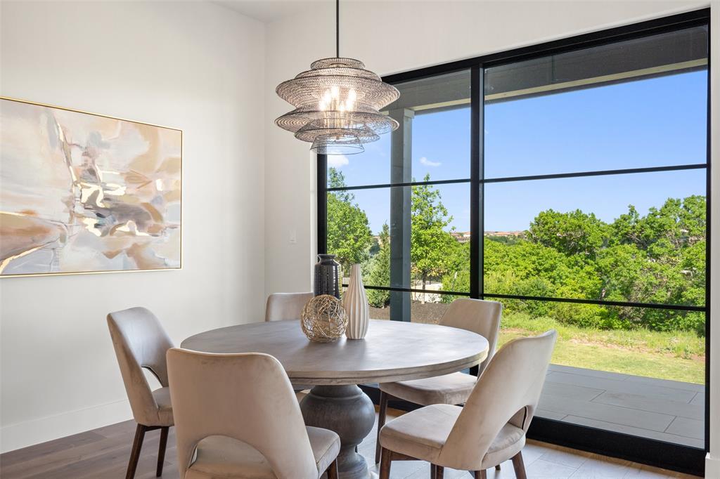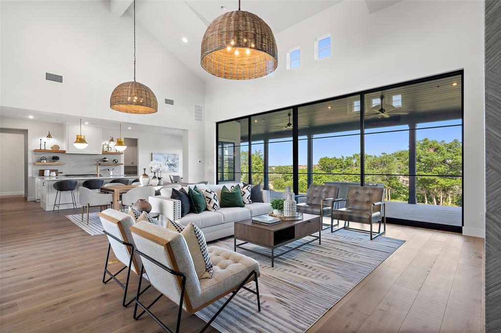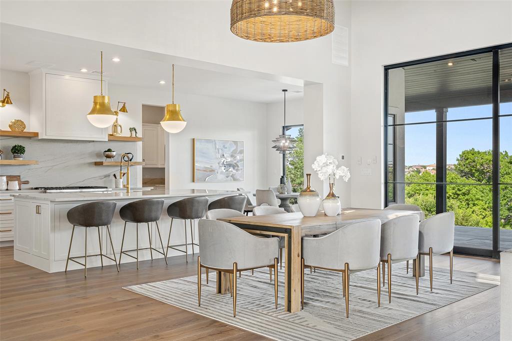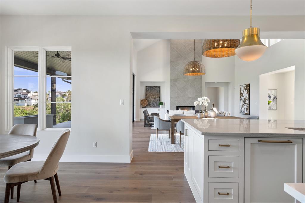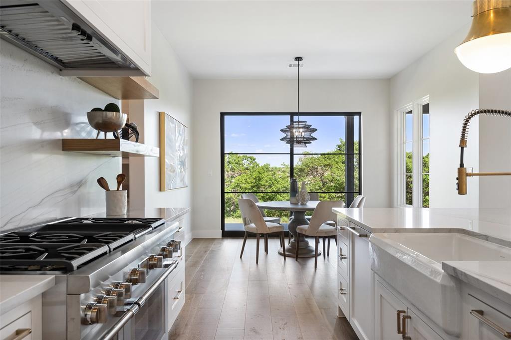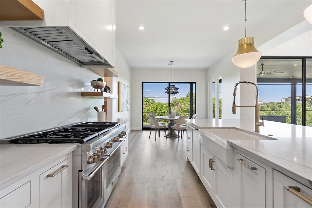 This brand-new Rough Hollow home offers a gracious and flexible floor plan, sunlit contemporary style, and incredible indoor-outdoor entertaining. Soaring ceilings lend drama to the great room, where a wall of glass frames spectacular views. A ceiling-height fireplace dominates one side of the main floor living area, with a chef’s kitchen on the other. Thermador appliances, a butler’s kitchen, a walk-in pantry, and a glass-enclosed wine room add functional luxury to everyday living. Enjoy seamless flow through the accordion glass doors that open fully to connect the interior with the outdoor living space. The .7-acre backyard oasis offers a flat lawn, stellar views, and a terrace with an outdoor kitchen and fireplace lounge. This adaptable, 4,900+sf home meets you where you are. The main level, with an owner’s suite and two additional first-floor ensuites, is ideally suited for multigenerational living or working from home. The second floor makes for a great kids’ realm, with two bedrooms and bathrooms, plus a built-in desk area. This home also has a first-floor flex space, a home theater, and a 3-car garage. The Peninsula at Rough Hollow is a sought-after, resort-style community on Lake Travis’s exclusive south shore. Live steps from the yacht club, private marina, and year-round amenities. Located in the Lake Travis ISD, this family-friendly community is only 30 minutes from Downtown Austin.
