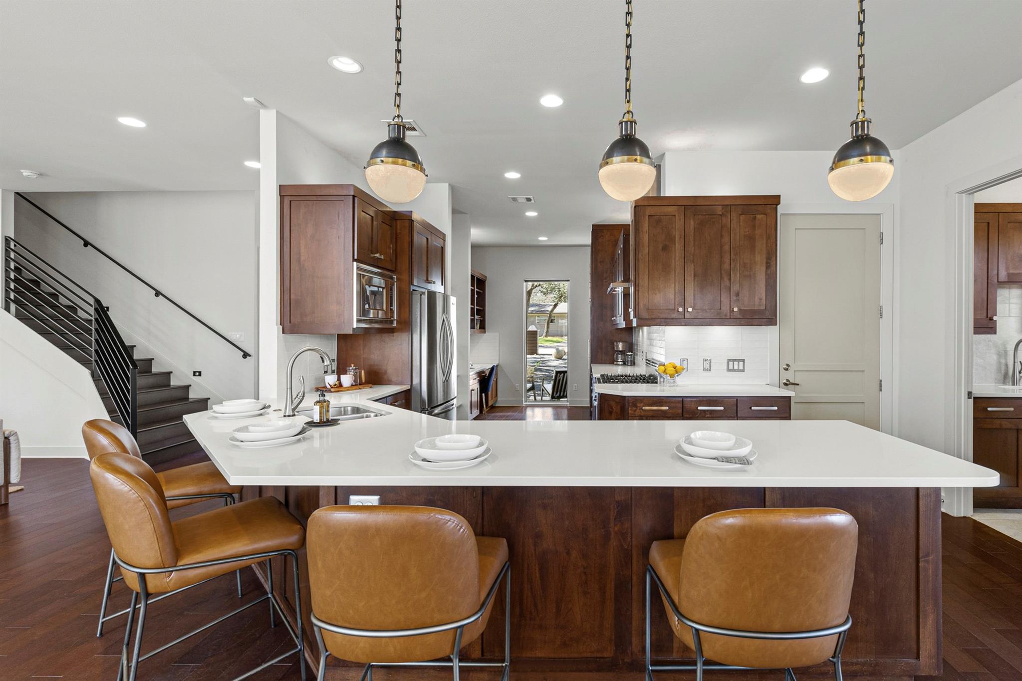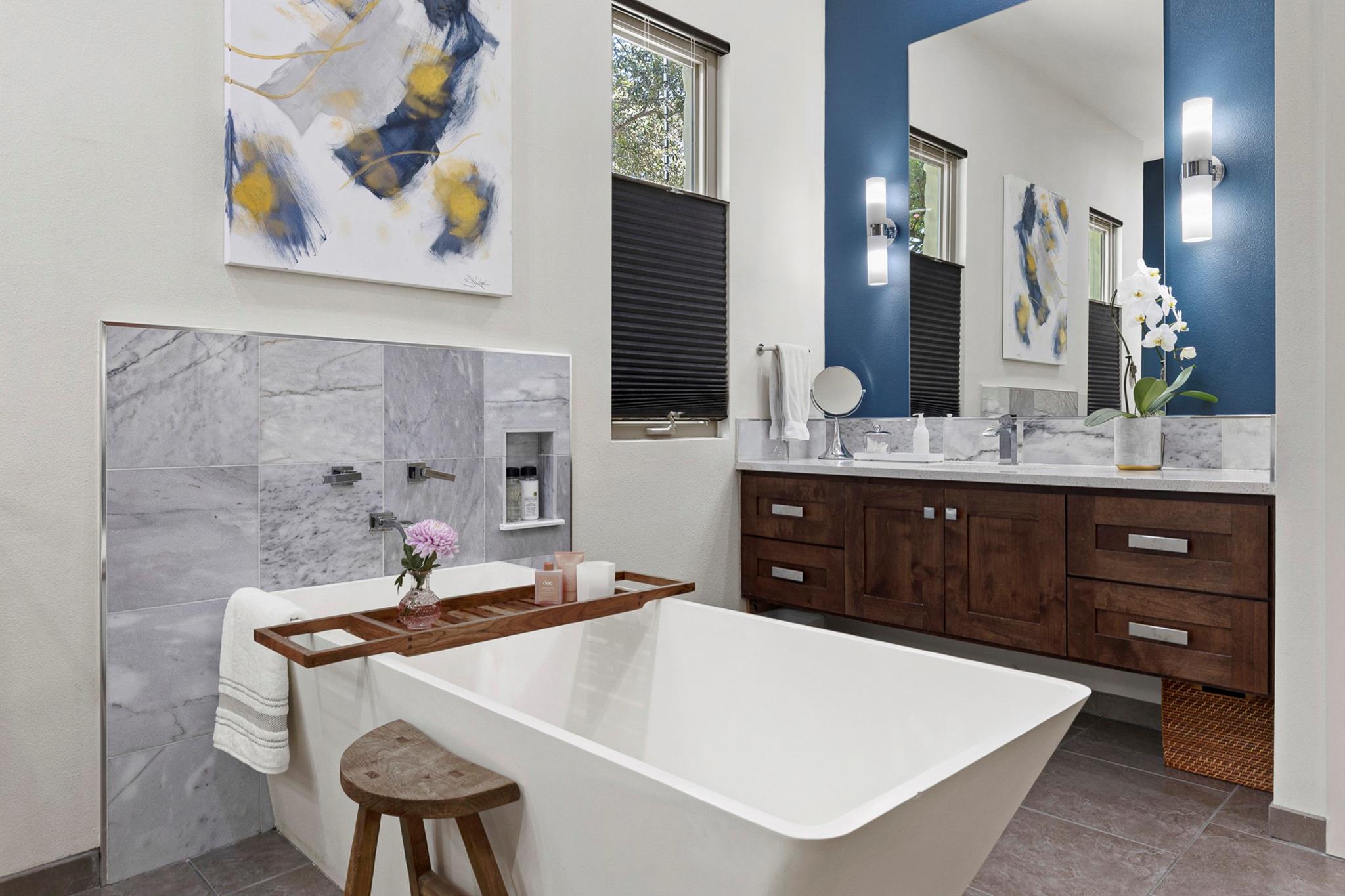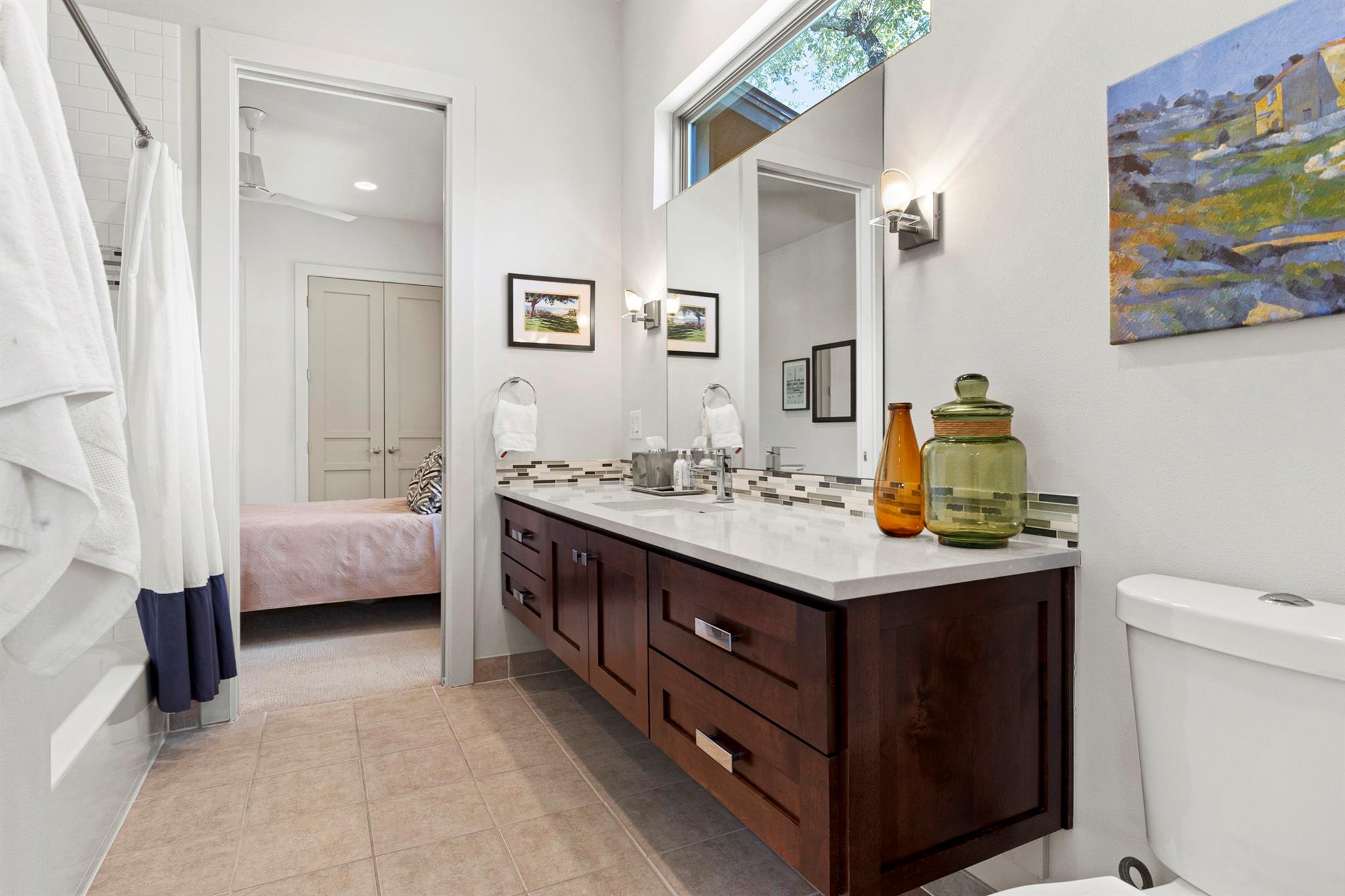Rare newer construction in the established neighborhood of Westwood Terrace. Built by Camelot in a warm contemporary style with an open floorplan that lends itself to easy entertaining and optimal functionality. Downstairs features an updated kitchen open to the living and dining areas and a cozy den. The owner’s suite includes a recently updated spa bathroom with an oversized freestanding tub, glass enclosed shower and spacious walk-in closet. Upstairs is designed with 3 spacious bedrooms, each with their own en-suite bath and walk-in closets. A huge game room offers multiple opportunities for gathering the family. There is a wrap-around back patio leading to a large, flat backyard with plenty of room for outdoor entertaining. Westwood Terrace is one of the few Westlake neighborhoods where you can bike or walk to lifestyle establishments like Trianon Coffee shop, Texas Honey Ham, Sway, Flower Child and dozens more, not to mention Eanes Elementary, Hill Country Middle and Westlake High School- for optimal convenience. This home has been pre-inspected and is ready for its new owners.