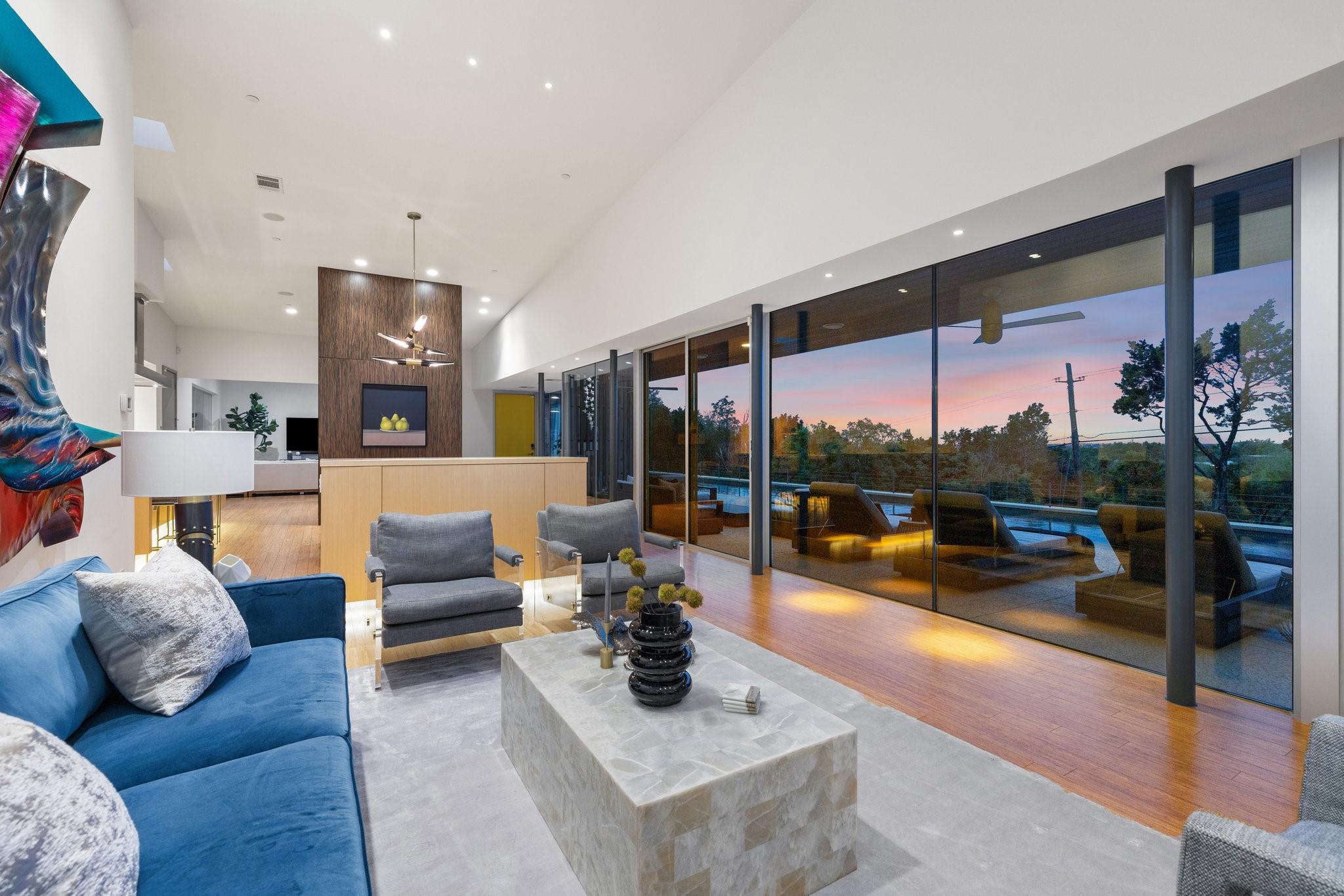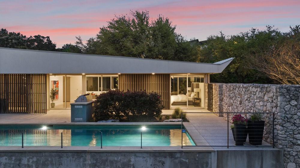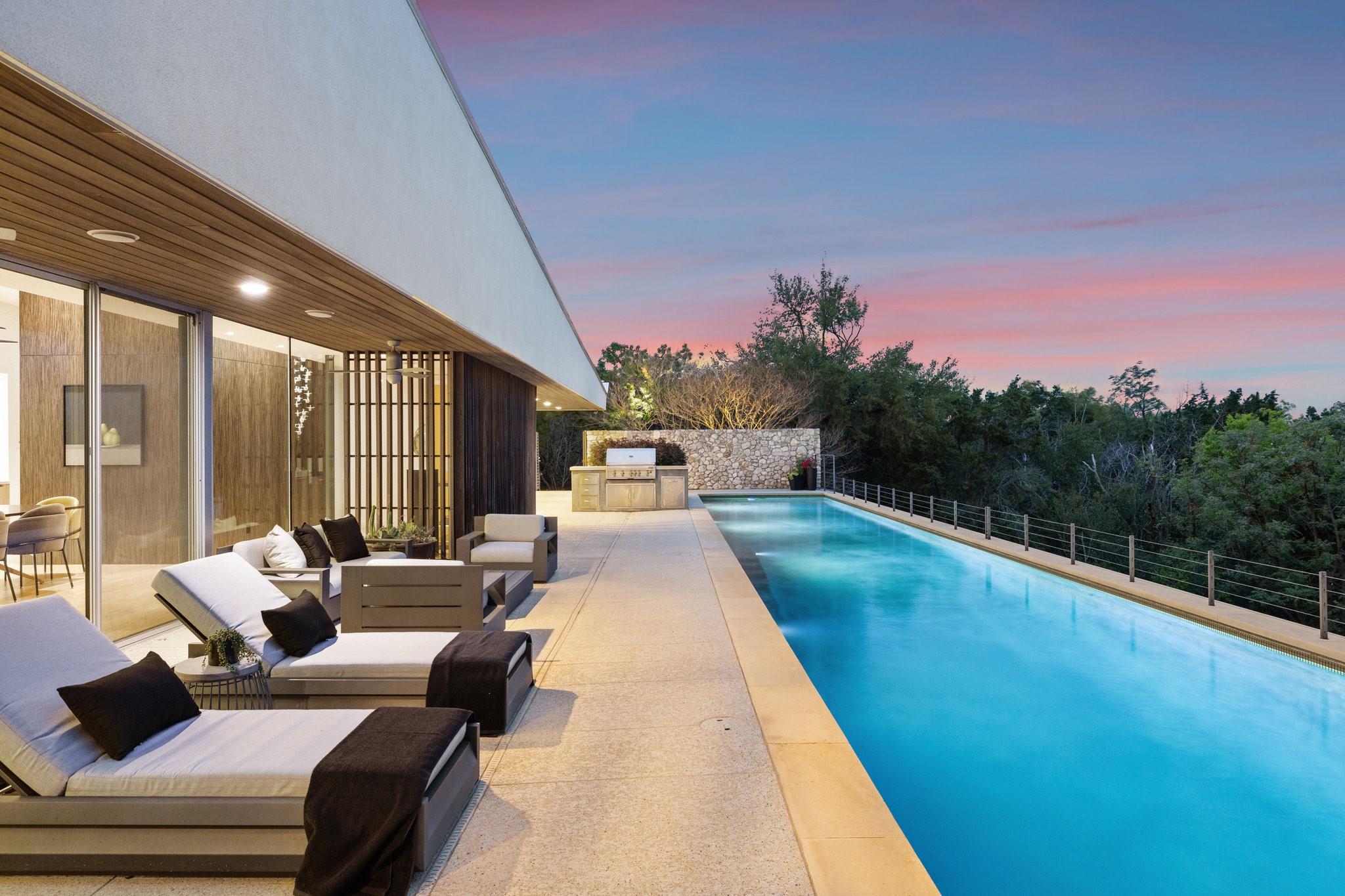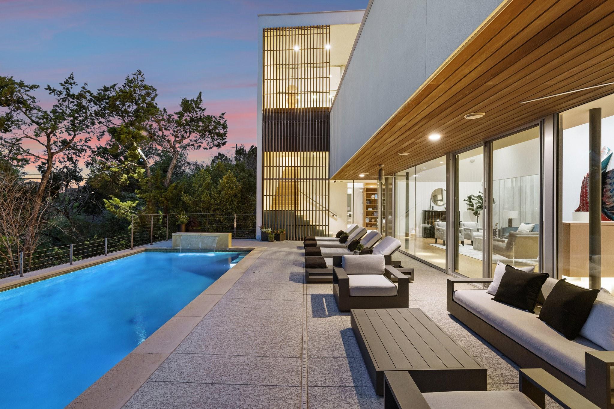Reduced $695,000!! Welcome to a modern luxury sanctuary, nestled on a private 1.1-acre wooded lot in Westlake's exclusive Loma Graciosa community with a low property tax rate of 1.43% offering ultimate privacy along with stunning views. Crafted by Foursquare builders in 2012, this architectural gem seamlessly blends sophistication with functionality, designed by award-winning David Webber of Webber+Studio Architects. Energy efficiency and tranquility are paramount, featuring a reflective metal roof, blond woods, native landscape, Control4 whole house AV system, and solar panels; all harmonizing with the natural surroundings. Upon arrival, be captivated by the home's integration with nature, boasting stone walls, cypress timber cladding, and abundant natural light through curtains of RAM windows and Heritage glass sliders.Zoned for highly ranked Eanes ISD (walkable to all 3 schools), immediate access to Bee Cave Road's shopping and restaurants, only 10 minutes from downtown Austin and conveniently located near Barton Creek Greenbelt, ABIA, and major highways; 403 Graciosa Cove embodies the pinnacle of modern living. The interior is a study in simplicity and sustainability, with an open-concept layout framing panoramic views to the south and east of the Texas hill country and downtown Austin skyline views. The chef's kitchen, primary suite, and four spacious versatile living spaces offer comfort and elegance, while outdoor amenities include a heated and chilled 75 foot lap pool, grill station, expansive pool deck for lounging, outdoor shower, and a cascading waterfall. Whether seeking tranquility or entertainment, this Westlake residence exceeds expectations with its meticulous design and prime location.