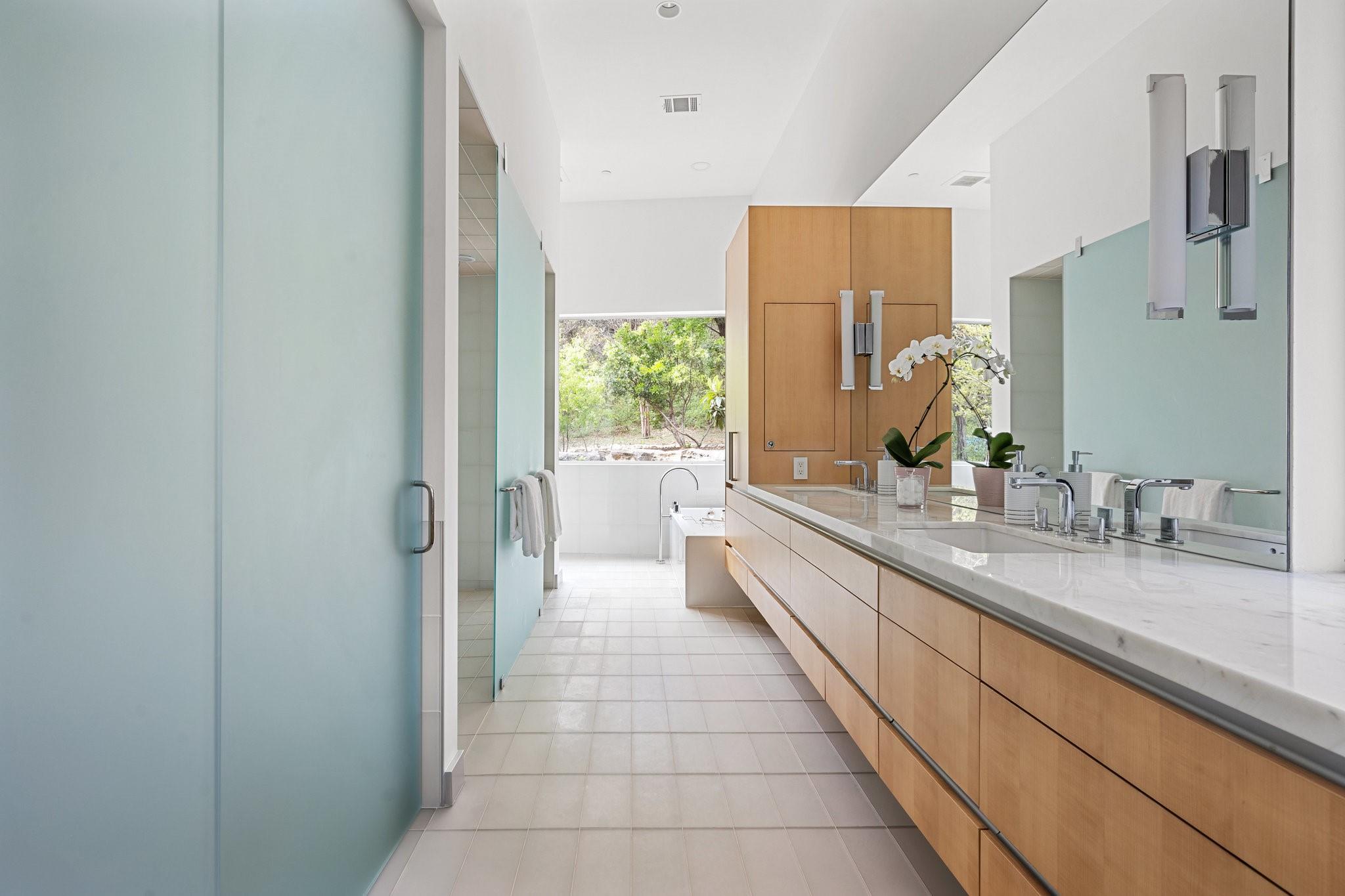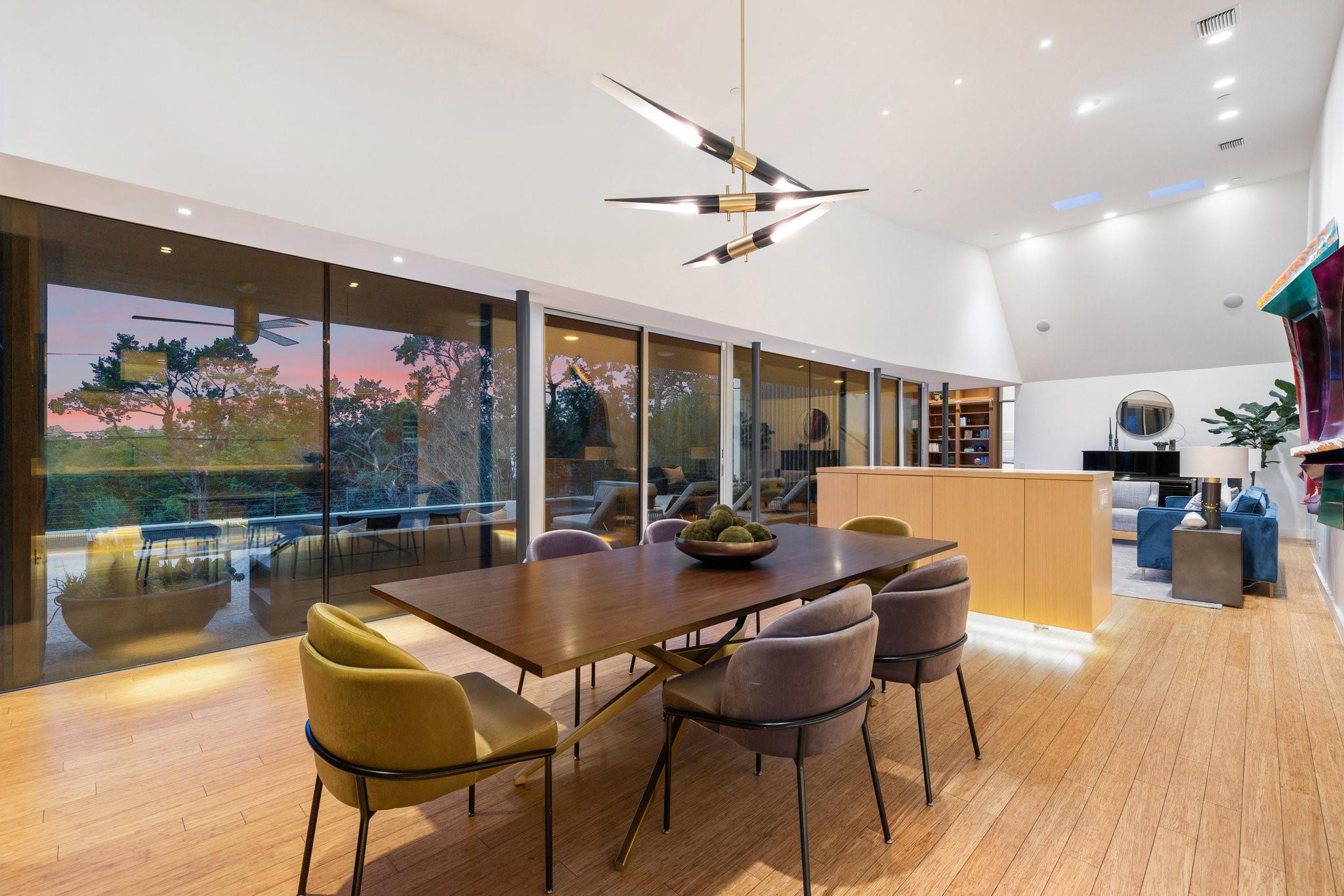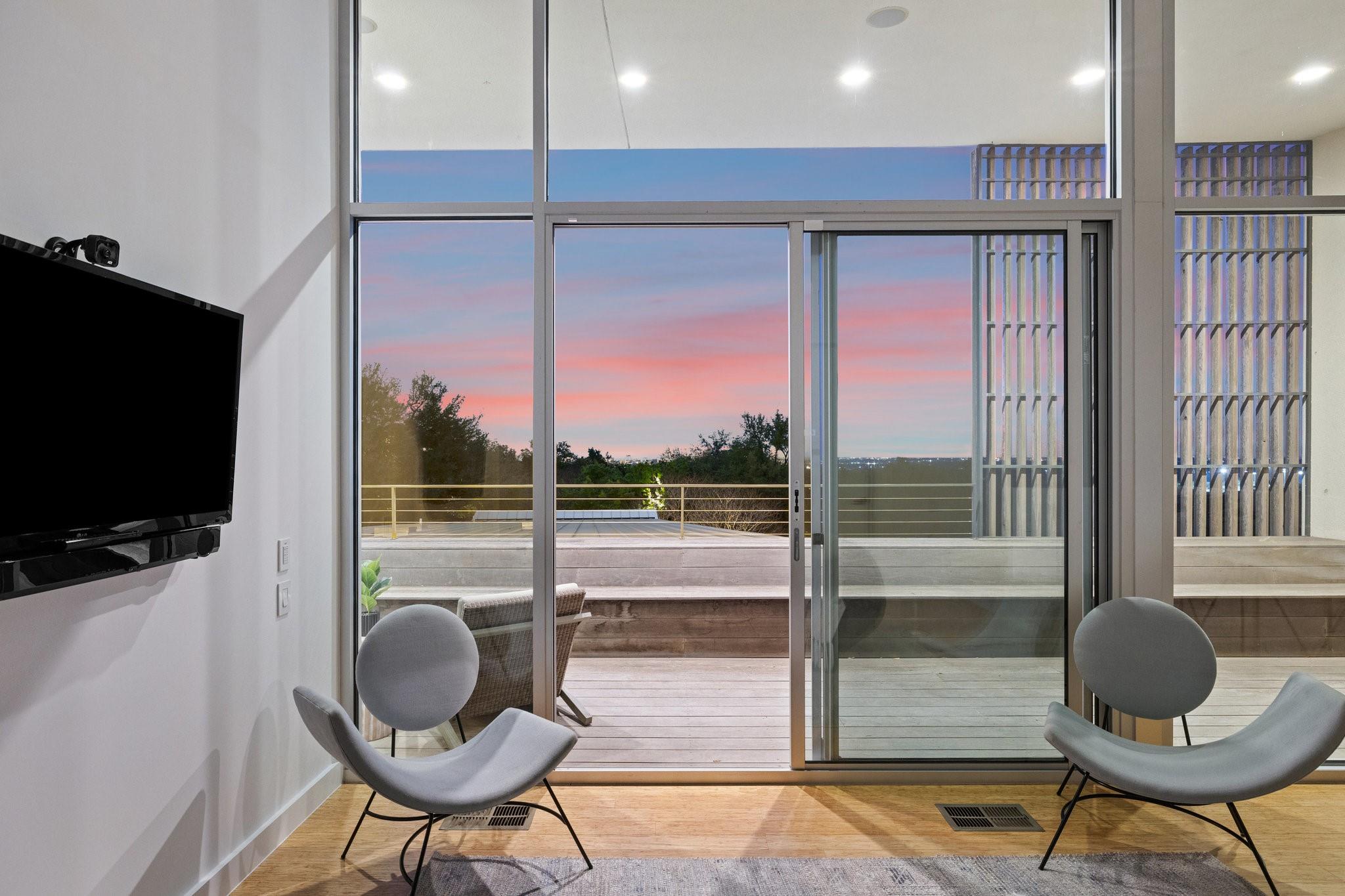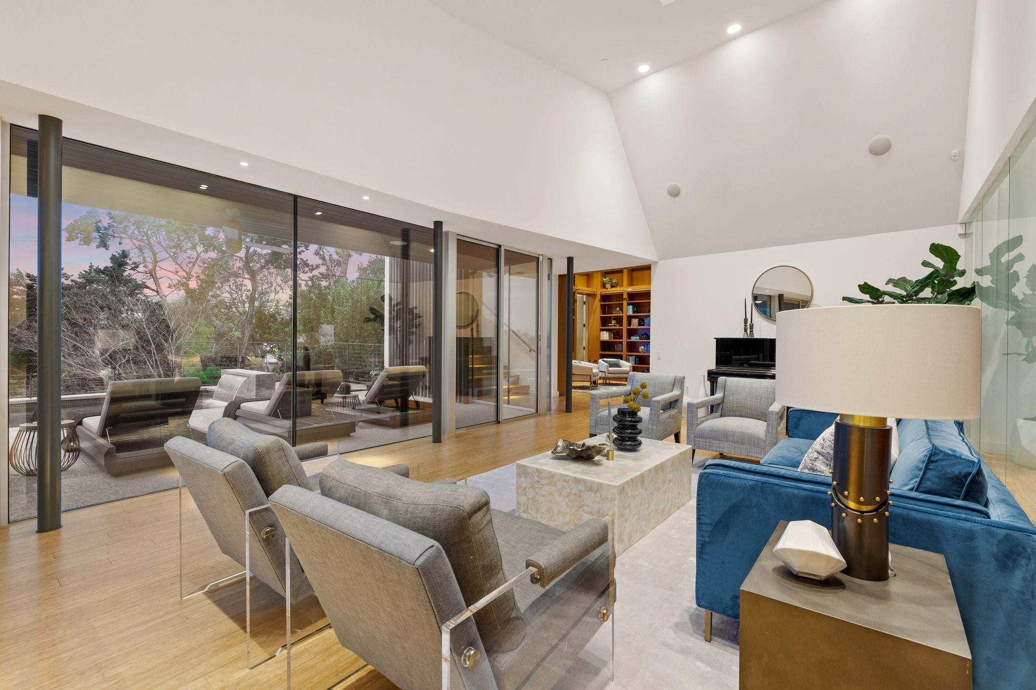 Reduced $695,000!! Welcome to a modern luxury sanctuary, nestled on a private 1.1-acre wooded lot in Westlake's exclusive Loma Graciosa community with a low property tax rate of 1.43% offering ultimate privacy along with stunning views. Crafted by Foursquare builders in 2012, this architectural gem seamlessly blends sophistication with functionality, designed by award-winning David Webber of Webber+Studio Architects. Energy efficiency and tranquility are paramount, featuring a reflective metal roof, blond woods, native landscape, Control4 whole house AV system, and solar panels; all harmonizing with the natural surroundings. Upon arrival, be captivated by the home's integration with nature, boasting stone walls, cypress timber cladding, and abundant natural light through curtains of RAM windows and Heritage glass sliders.Zoned for highly ranked Eanes ISD (walkable to all 3 schools), immediate access to Bee Cave Road's shopping and restaurants, only 10 minutes from downtown Austin and conveniently located near Barton Creek Greenbelt, ABIA, and major highways; 403 Graciosa Cove embodies the pinnacle of modern living. The interior is a study in simplicity and sustainability, with an open-concept layout framing panoramic views to the south and east of the Texas hill country and downtown Austin skyline views. The chef's kitchen, primary suite, and four spacious versatile living spaces offer comfort and elegance, while outdoor amenities include a heated and chilled 75 foot lap pool, grill station, expansive pool deck for lounging, outdoor shower, and a cascading waterfall. Whether seeking tranquility or entertainment, this Westlake residence exceeds expectations with its meticulous design and prime location.