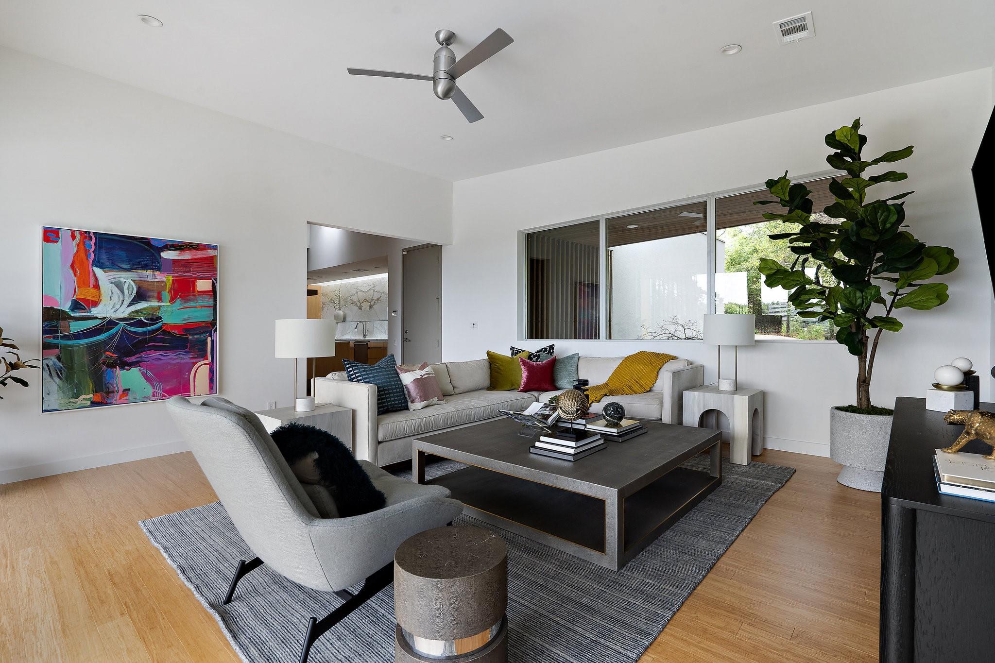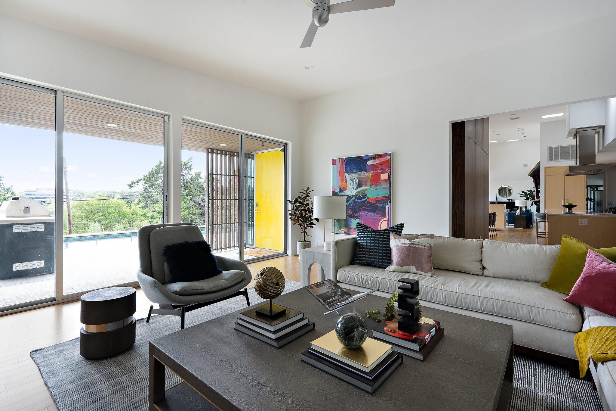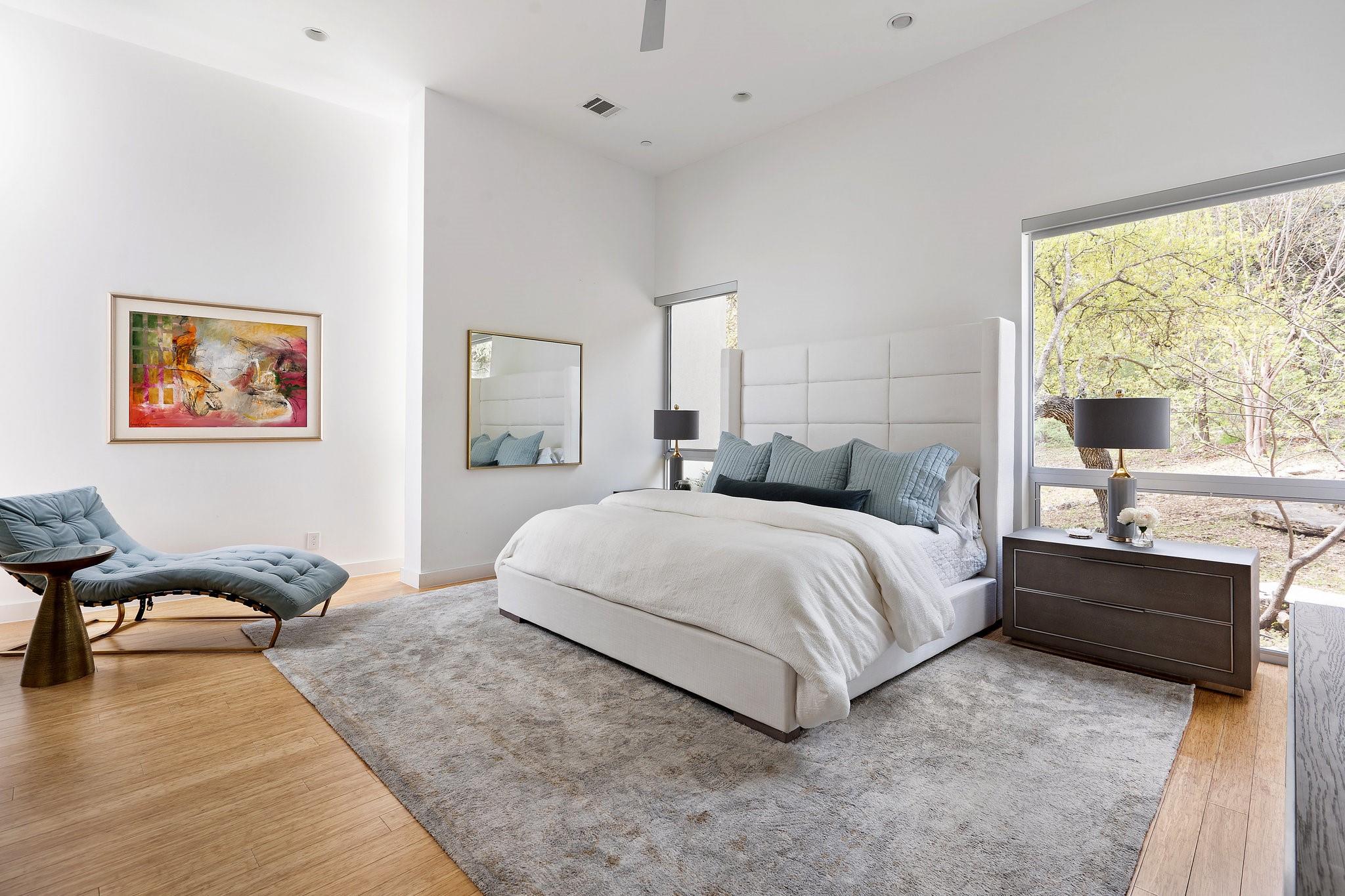 Reduced $695,000!! Welcome to a modern luxury sanctuary, nestled on a private 1.1-acre wooded lot in Westlake's exclusive Loma Graciosa community with a low property tax rate of 1.43% offering ultimate privacy along with stunning views. Crafted by Foursquare builders in 2012, this architectural gem seamlessly blends sophistication with functionality, designed by award-winning David Webber of Webber+Studio Architects. Energy efficiency and tranquility are paramount, featuring a reflective metal roof, blond woods, native landscape, Control4 whole house AV system, and solar panels; all harmonizing with the natural surroundings. Upon arrival, be captivated by the home's integration with nature, boasting stone walls, cypress timber cladding, and abundant natural light through curtains of RAM windows and Heritage glass sliders.Zoned for highly ranked Eanes ISD (walkable to all 3 schools), immediate access to Bee Cave Road's shopping and restaurants, only 10 minutes from downtown Austin and conveniently located near Barton Creek Greenbelt, ABIA, and major highways; 403 Graciosa Cove embodies the pinnacle of modern living. The interior is a study in simplicity and sustainability, with an open-concept layout framing panoramic views to the south and east of the Texas hill country and downtown Austin skyline views. The chef's kitchen, primary suite, and four spacious versatile living spaces offer comfort and elegance, while outdoor amenities include a heated and chilled 75 foot lap pool, grill station, expansive pool deck for lounging, outdoor shower, and a cascading waterfall. Whether seeking tranquility or entertainment, this Westlake residence exceeds expectations with its meticulous design and prime location.