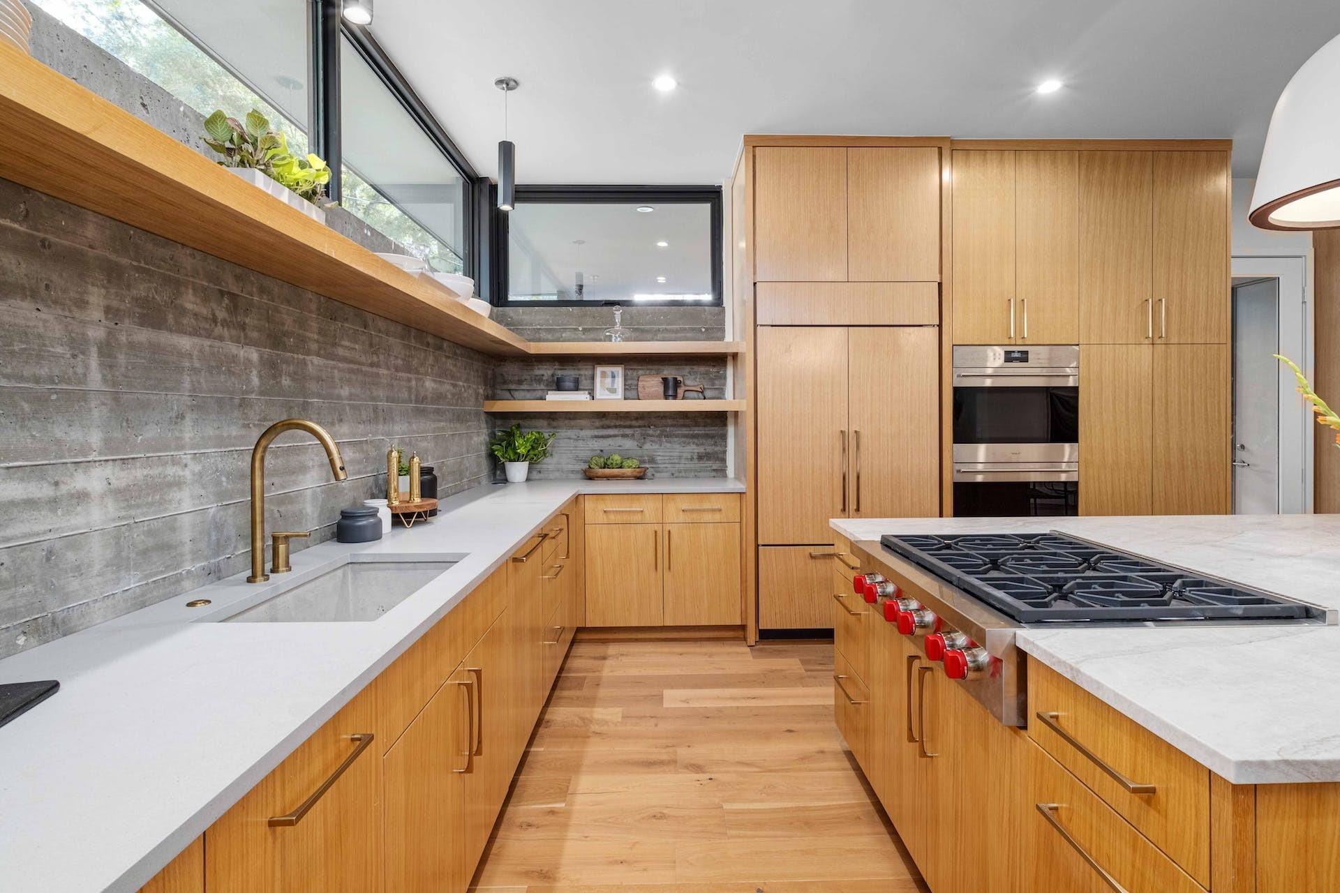 If you know Zilker, you know Ford Street and their famous Halloween festivities where kids and parents alike come from all over town just to celebrate! Walk or bike to Zilker Park, Barton Springs, restaurants and shops on South Lamar and Barton Springs, Lady Bird Lake and surrounding hike and bike trails, Zilker Elementary and so much more! Designed by Side Angle Side and built by Cobb Development, your clients will be amazed at all of the details, features and finishes thoughtfully curated for this gorgeous property. A striking board form concrete exterior wall with clerestory windows to maximize light is the focal point and the first thing you notice when approaching the home. This concrete wall also acts as an interior kitchen wall that blends beautifully into the modern design with custom cabinets, Wolf and Sub-Zero appliances and stunning fixtures. Beyond the kitchen on the main level is a dining area with full wet bar and spacious living room which looks out the large, Western sliding glass doors onto the expansive back yard and sparkling pool with covered patio and grilling area. Also downstairs is a guest bedroom with full bath, which of course could double as an office, gym or guest space. You will also find a separate powder bathroom for your guests and pool use. As you ascend the stairs to the second level, you encounter a massive enclosed media/library/flex space and large laundry/utility room. One one end of the second level are the two secondary bedrooms with their bath. On the other end is the gorgeous primary suite with spa-like bathroom and walk-in closet. The primary suite also has an oversized Juliette balcony overlooking the backyard pool area. Experience the 78704 lifestyle in the one of the most coveted neighborhoods in Central Austin!