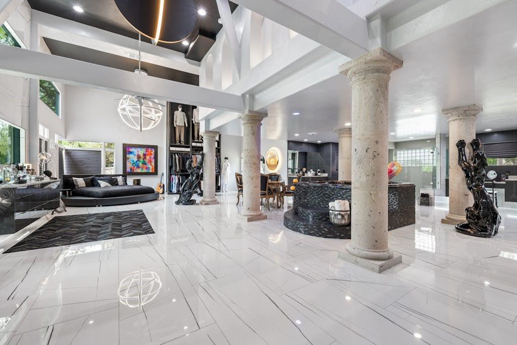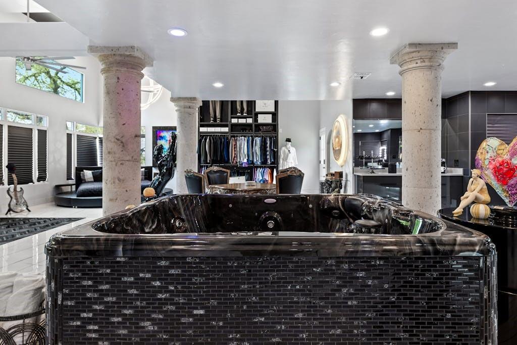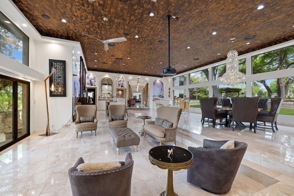 | Interior Features | Bar, Bidet, Bookcases, Breakfast Bar, Built-in Features, Cathedral Ceiling(s), Chandelier, Quartz Counters, Crown Molding, Double Vanity, Eat-in Kitchen, Entrance Foyer, High Speed Internet, Interior Steps, Kitchen Island, Multiple Dining Areas, Open Floorplan, Primary Bedroom on Main, Recessed Lighting, Sauna, Smart Home, Soaking Tub, Sound System, Storage, Two Primary Closets, Walk-In Closet(s), Wet Bar, Wired for Data, Wired for Sound | |