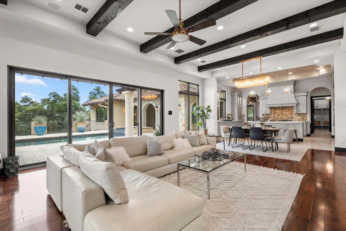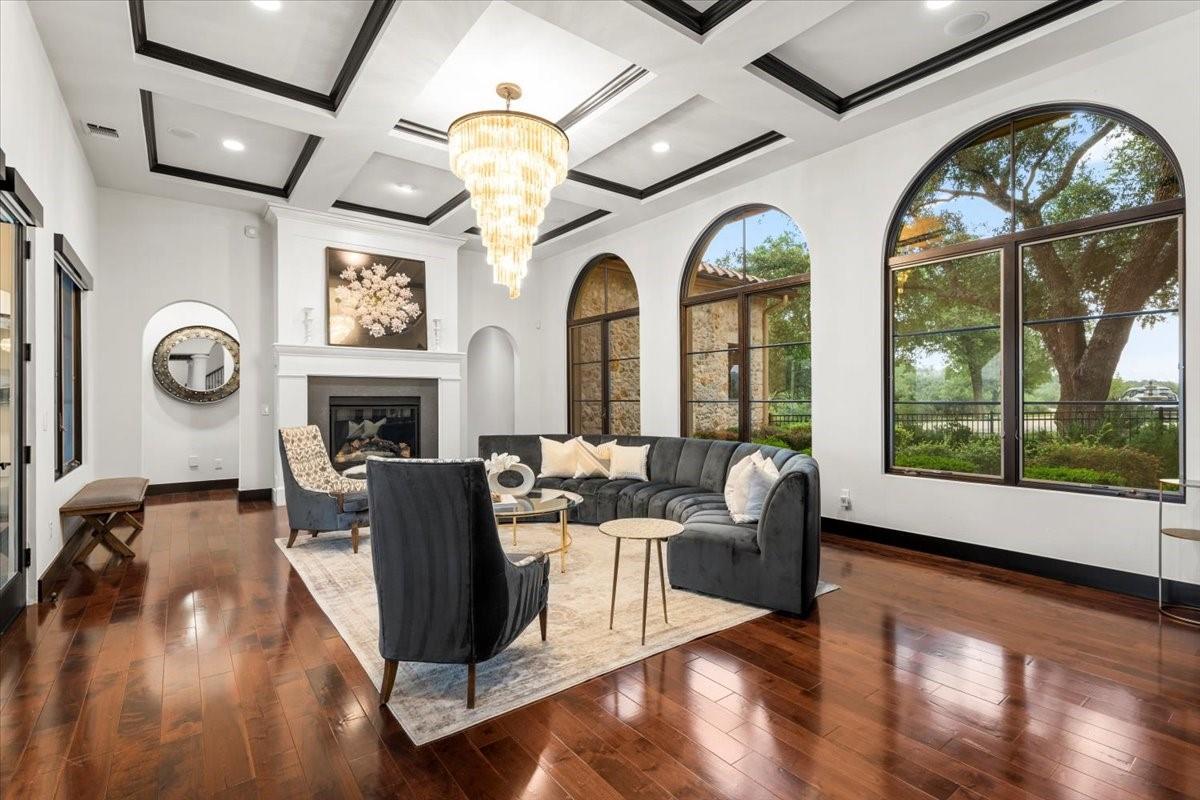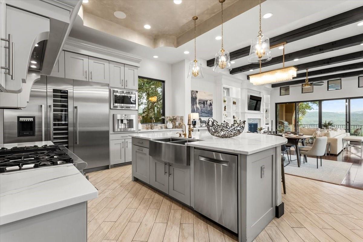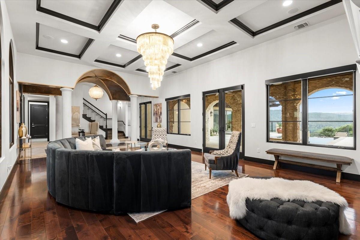 | Interior Features | Beamed Ceilings, Coffered Ceiling(s), Tray Ceiling(s), Granite Counters, Double Vanity, Interior Steps, Kitchen Island, Multiple Dining Areas, Multiple Living Areas, Open Floorplan, Pantry, Primary Bedroom on Main, Recessed Lighting, Soaking Tub, Walk-In Closet(s) | |