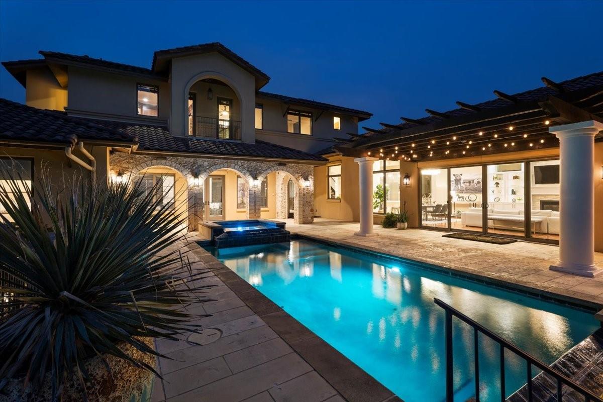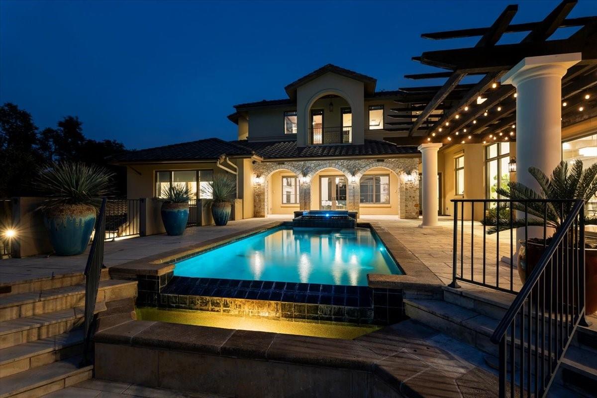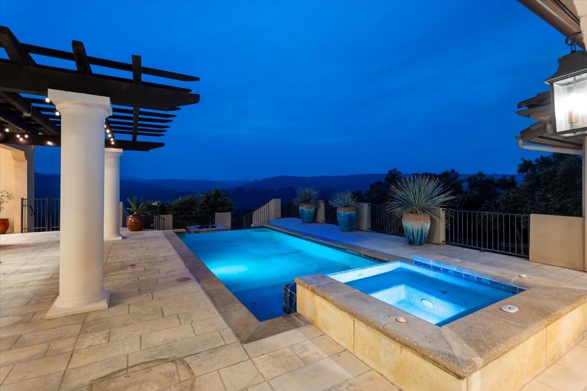 Welcome to your dream estate located in the exclusive gated Caslano community. Sprawling on almost 6 acres of pristine hilltop, this gated retreat offers an unparalleled level of luxury and privacy, boasting panoramic views of both Lake Austin and Balcones Preserve providing miles and miles of hill country views. Featuring state of the art upgrades, this smart home feels like a lock and leave with controls at your fingertips. Every room throughout the estate is thoughtfully planned including a work out room, library, en suite bedrooms, 2 primary suites on the main level, and more. You will be even more impressed by the complete upgrades list totaling almost $1M in improvements. Step inside to discover an open floorplan that seamlessly blends indoor and outdoor living. Every detail has been meticulously curated with designer touches throughout, creating an ambiance of sophistication and comfort. Outdoor living is elevated to new heights with a built-in kitchen, perfect for al fresco dining and entertaining by the pool. Indoor entertainment options abound in this magnificent abode. Enjoy movie nights in the state-of-the-art media room or gather with friends and family in the expansive gameroom. 2 spacious studies provide a tranquil space for work or reflection. Embrace sustainable living with solar panels, while the convenience of an elevator ensures easy access to every level. Retreat to the luxurious primary suite, where direct access to the outdoor entertainment area awaits. Pamper yourself in the spa-like bath, featuring a soaking tub and a large walk-in shower with invigorating body jets.
