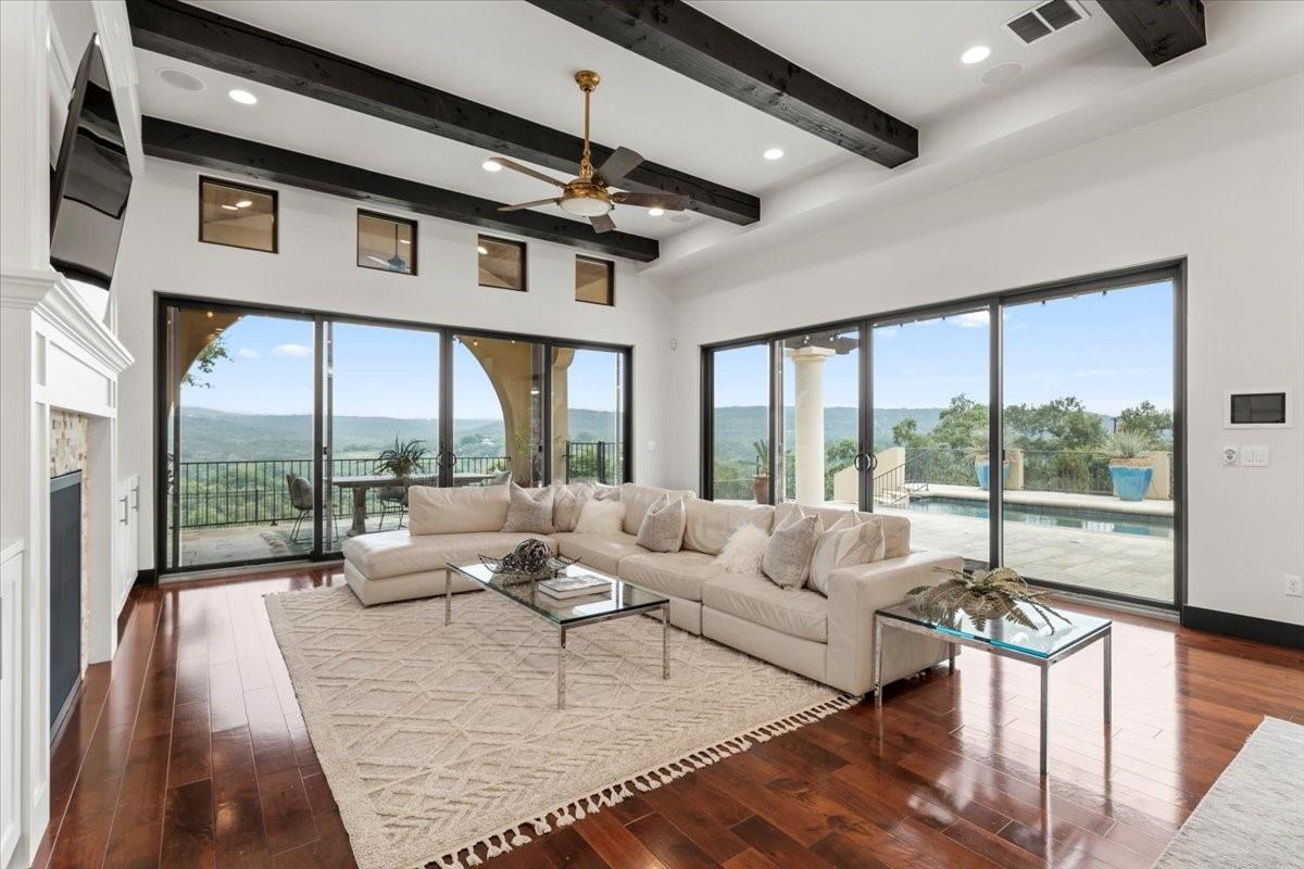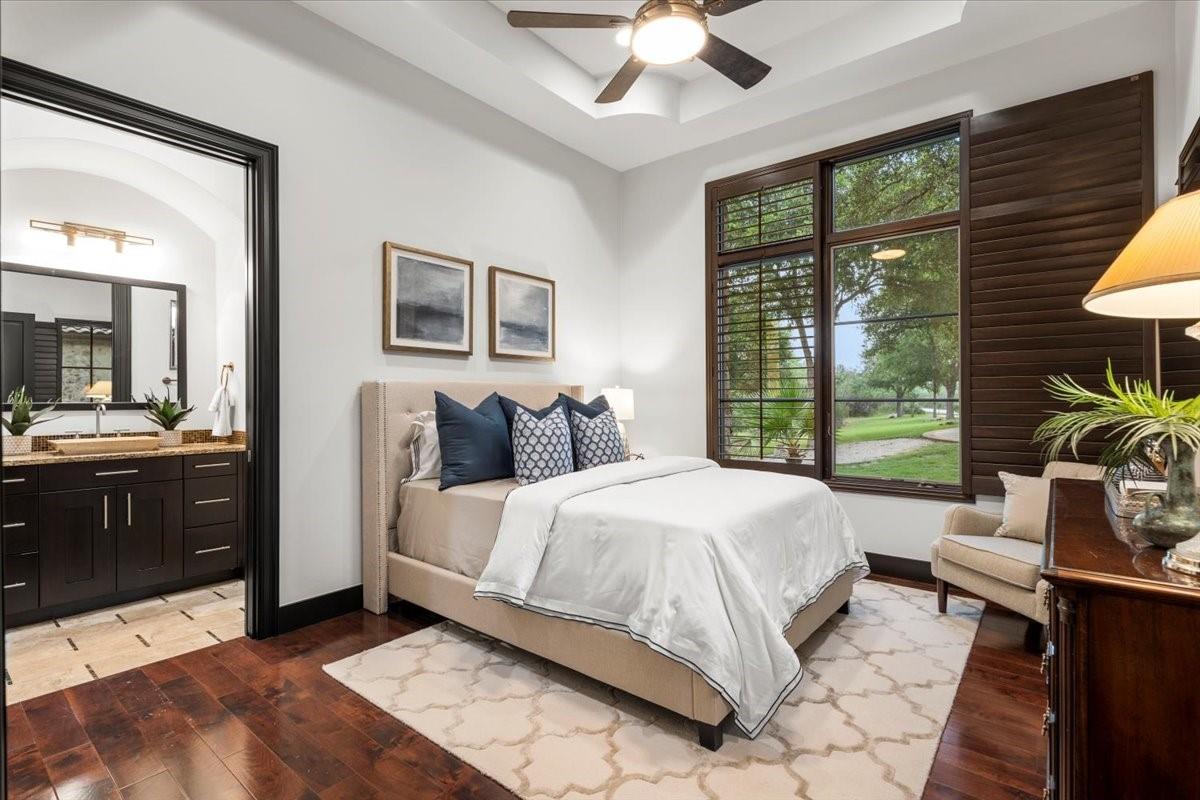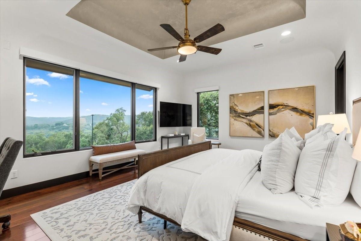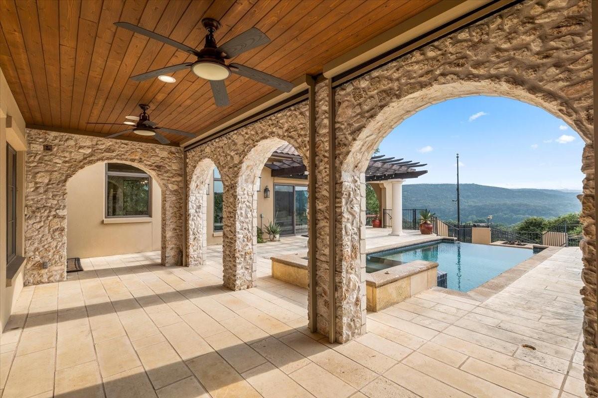 Welcome to your dream estate located in the exclusive gated Caslano community. Sprawling on almost 6 acres of pristine hilltop, this gated retreat offers an unparalleled level of luxury and privacy, boasting panoramic views of both Lake Austin and Balcones Preserve providing miles and miles of hill country views. Featuring state of the art upgrades, this smart home feels like a lock and leave with controls at your fingertips. Every room throughout the estate is thoughtfully planned including a work out room, library, en suite bedrooms, 2 primary suites on the main level, and more. You will be even more impressed by the complete upgrades list totaling almost $1M in improvements. Step inside to discover an open floorplan that seamlessly blends indoor and outdoor living. Every detail has been meticulously curated with designer touches throughout, creating an ambiance of sophistication and comfort. Outdoor living is elevated to new heights with a built-in kitchen, perfect for al fresco dining and entertaining by the pool. Indoor entertainment options abound in this magnificent abode. Enjoy movie nights in the state-of-the-art media room or gather with friends and family in the expansive gameroom. 2 spacious studies provide a tranquil space for work or reflection. Embrace sustainable living with solar panels, while the convenience of an elevator ensures easy access to every level. Retreat to the luxurious primary suite, where direct access to the outdoor entertainment area awaits. Pamper yourself in the spa-like bath, featuring a soaking tub and a large walk-in shower with invigorating body jets.