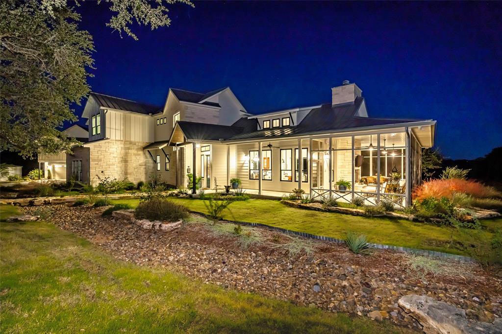 WOW!! Come see this elegant WATERFRONT estate in Wimberley, TX. This beautiful Modern Farmhouse was a 2019 Max Award Finalist! Its unique design, exceptional details, and custom craftsmanship welcome you to this serene home. This estate consists of a main house of approximately 3055 sq ft and a guest house of approximately 1439 sq ft, all on 8.45 lakefront acres on Mustang Valley Lake. Some of the highlights found in the main house include custom light fixtures, exposed beams, handmade tiles from Tabarka Studios, and a gorgeous kitchen island with a cherry wood top. The stunning screen porch will make dining al fresco a nightly pleasure! The guest house continues with the same fine materials – wood-grain tile floors, granite and quartz counters, and expansive windows. The balcony deck is a great place to enjoy the impressive lake views, birdwatch, and relax! (See attached extensive feature list for more details on materials and construction) Roam around the acres, take in the serenity of nature, harvest veggies from your organic garden, and then grab a picnic down at your own gazebo lake-side! While down at the lake, throw in a line and catch a trophy bass! Enjoy Mustang Valley amenities that include a tennis court, playscape, pavilion, and walking / biking paths. Excellent opportunity for this property to become an equestrian estate with plenty of room for a barn.