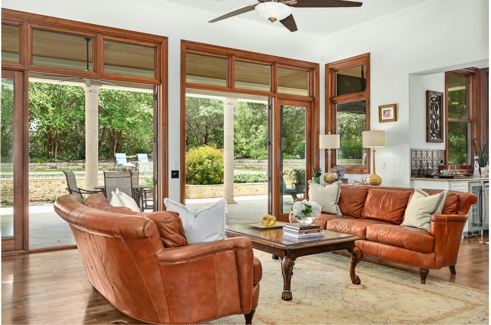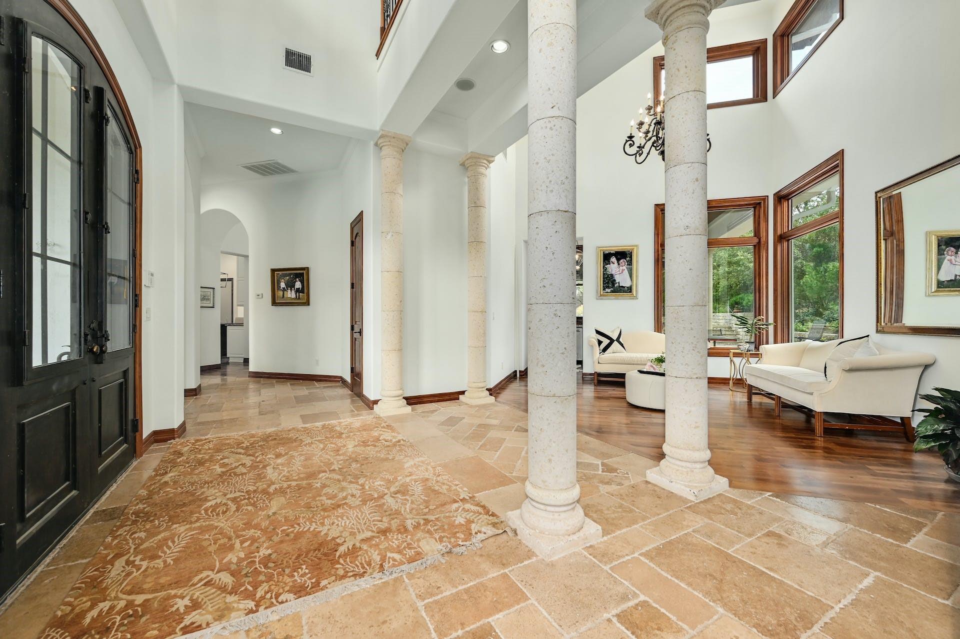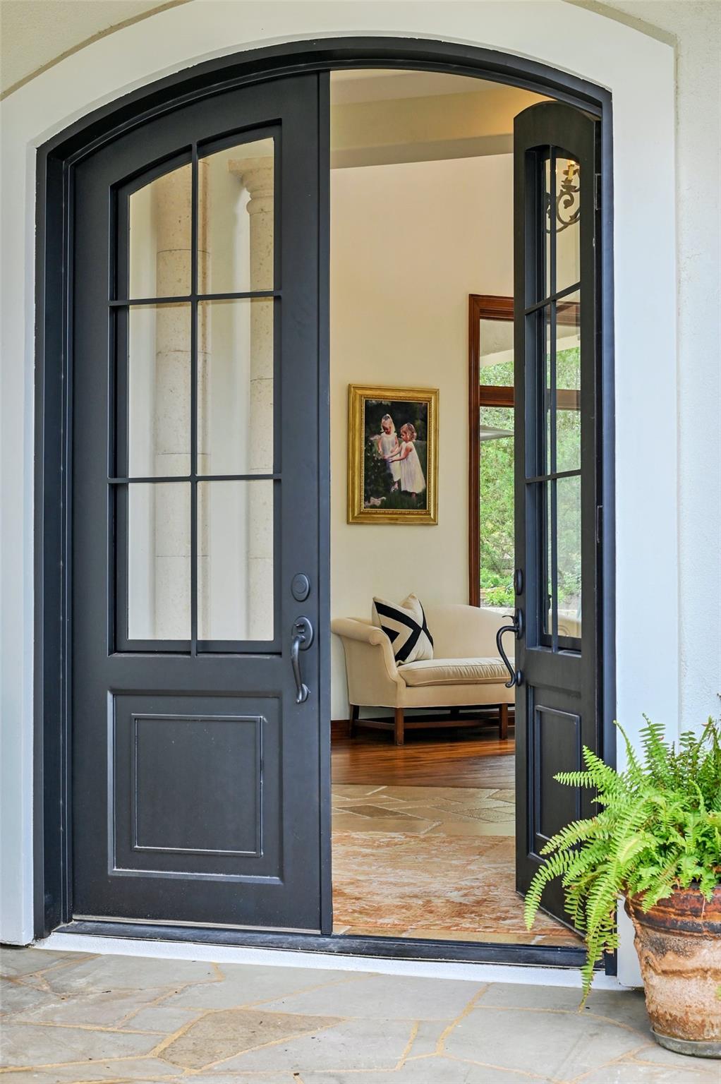 Beautifully updated transitional Mediterranean home tucked away on a quiet cul-de-sac in the distinguished Davenport Ranch community. Enter through impressive iron doors to the two-story foyer that overlooks the formal living room and ironclad staircase. The custom design showcases 5 bedrooms, 6 bathrooms, and a sparkling pool with over 5,000 sqft of living space. The family room features a limestone fireplace, wet bar and wall of windows that overlook the pool, and oversized patio space creating the perfect gathering place for family and friends. The chef's kitchen features top of the line appliances, walk-in pantry, wine refrigerator, dual sinks and a charming office nook. An enchanting formal dining room and casual breakfast area offer flexibility to fit your lifestyle. The oversized primary suite includes a large walk-in closet and private gym. The ensuite bath features gorgeous tiles with dual vanities, large shower and soaking tub. An ensuite guest bedroom, dedicated office and wine cellar complete the main level. The upstairs den offers ample entertaining space with a dedicated office space privately tucked away. Three additional bedrooms boast private en suite baths, and walk-in closets. The lush grounds showcase beautiful landscaping, manicured lawns and a flexible space ideal for a future playscape or sport court. Entertain with ease from the swimming pool and spa, flanked by the covered patio with graceful columns, multiple ceiling fans, outdoor TVs, and built-in grill and smoker. Enjoy privacy from the unique flat lot, with no directly adjoining neighbor to the right or directly behind. Zoned to Bridge Point Elementary, Hill Country Middle School, and Westlake High School, this home is an entertainers dream!