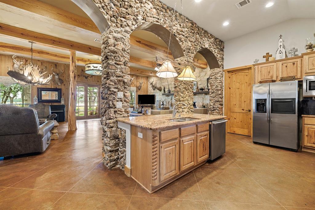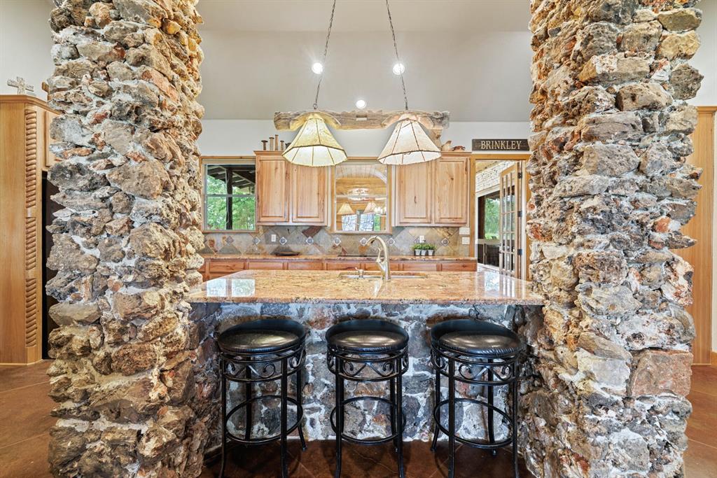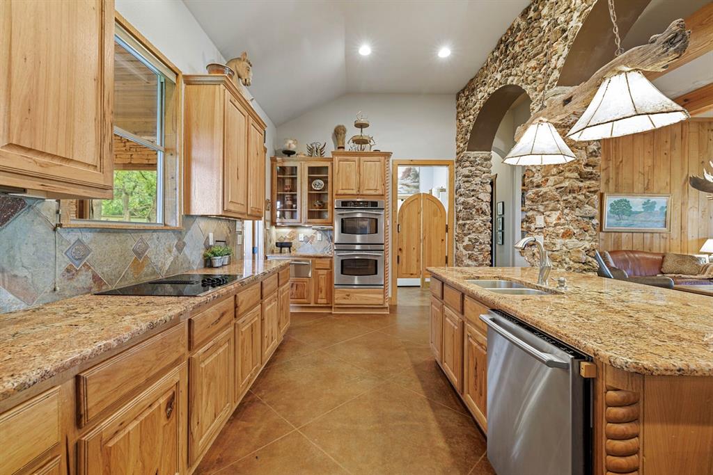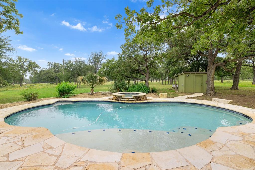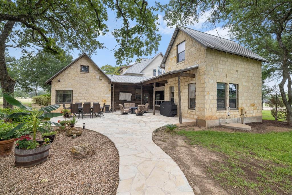 Beautiful hill country oasis on 59.91 acres minutes from downtown Burnet and nearby lakes. Immaculate custom-built home with all the details and ideal floor plan. From the front entry you'll find an impressive great room with natural woodwork, stone fireplace and ample space for everyone. The kitchen features a custom stone archway, expansive island, all the upgrades and a butler's pantry. Off the kitchen is the epitome of hill country dining - beautiful custom wood and stonework, ample natural light and plenty of room to entertain. The primary bedroom includes a sitting area/foyer, private patio with french doors, custom tile ceiling and private staircase access to second-level bonus room perfect for an office, craft room, library or extra storage. Primary bathroom features double vanity, tub with stone overlay, separate shower and oversized walk-in closet. Also on the main floor is the guest suite with a full bath. The second level features two bedrooms with a jack-and-jill bathroom, game room with built-in desk and cabinetry and a media room with projector and screen that can also double as another bedroom or flex space. The exterior features include custom Austin stonework on all sides, metal roof and multiple covered porches. Off the back porch is a covered patio with stone walkways leading to the pool, spa and fire pit. Attached to the main house via a covered walkway is a ~600sf office/studio with kitchen and covered parking - perfect for casita, guest house, etc. At the back of the property is a large barn with horse stalls, pens, multiple storage/workshop rooms, garage doors, covered parking for cars/boats/equipment and two separate portable buildings for additional office space or storage. Large, manicured oak trees cover the property. This property is a diamond in the rough - the perfect combination of luxury, privacy and convenience.