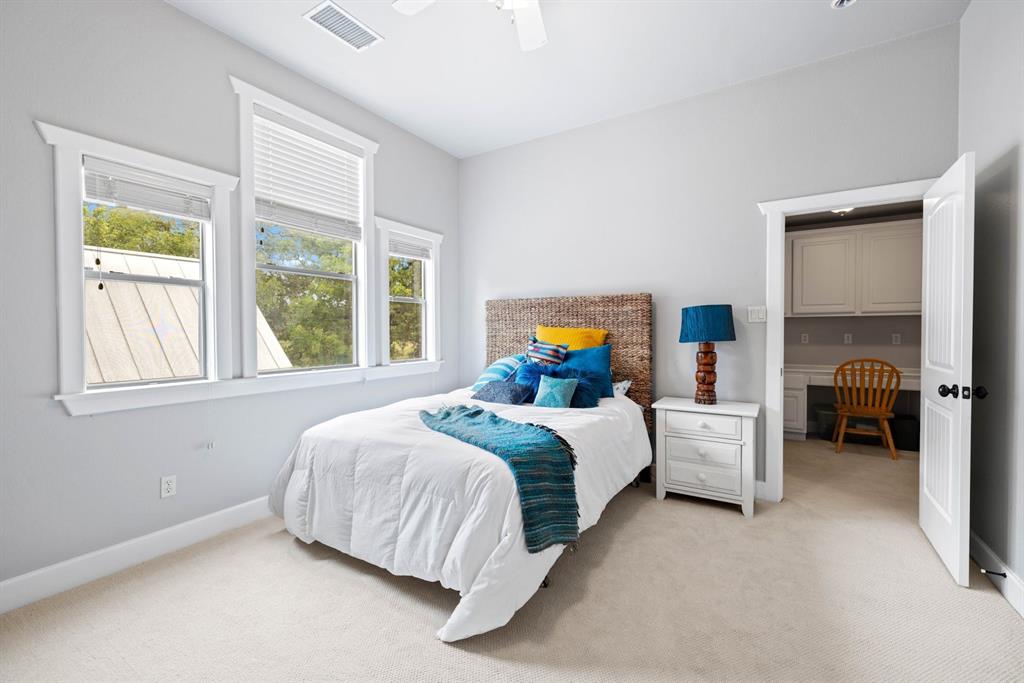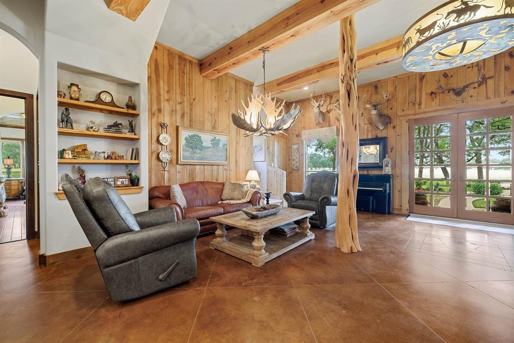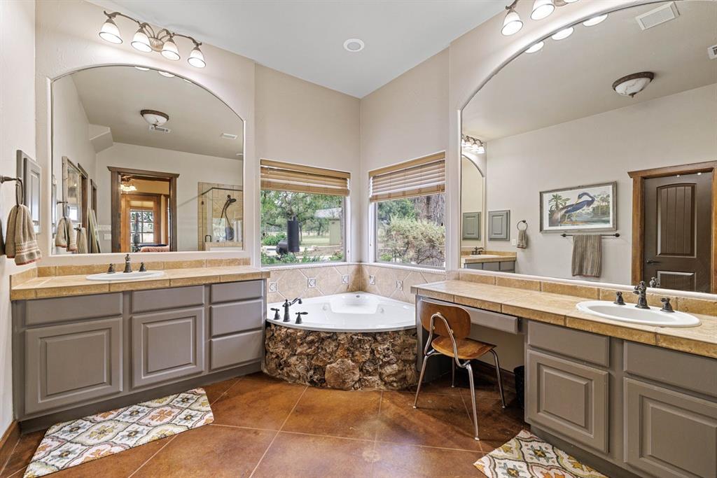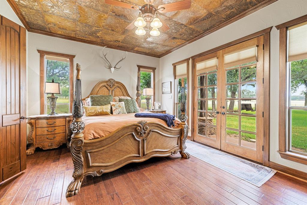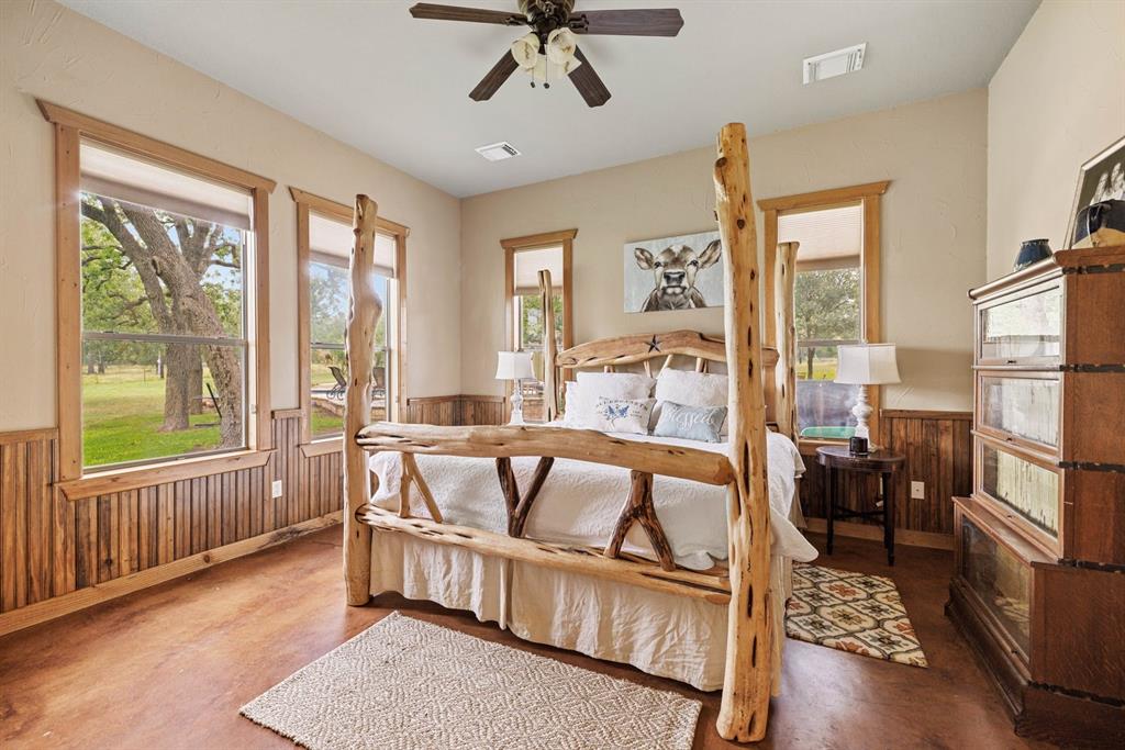 Beautiful hill country oasis on 59.91 acres minutes from downtown Burnet and nearby lakes. Immaculate custom-built home with all the details and ideal floor plan. From the front entry you'll find an impressive great room with natural woodwork, stone fireplace and ample space for everyone. The kitchen features a custom stone archway, expansive island, all the upgrades and a butler's pantry. Off the kitchen is the epitome of hill country dining - beautiful custom wood and stonework, ample natural light and plenty of room to entertain. The primary bedroom includes a sitting area/foyer, private patio with french doors, custom tile ceiling and private staircase access to second-level bonus room perfect for an office, craft room, library or extra storage. Primary bathroom features double vanity, tub with stone overlay, separate shower and oversized walk-in closet. Also on the main floor is the guest suite with a full bath. The second level features two bedrooms with a jack-and-jill bathroom, game room with built-in desk and cabinetry and a media room with projector and screen that can also double as another bedroom or flex space. The exterior features include custom Austin stonework on all sides, metal roof and multiple covered porches. Off the back porch is a covered patio with stone walkways leading to the pool, spa and fire pit. Attached to the main house via a covered walkway is a ~600sf office/studio with kitchen and covered parking - perfect for casita, guest house, etc. At the back of the property is a large barn with horse stalls, pens, multiple storage/workshop rooms, garage doors, covered parking for cars/boats/equipment and two separate portable buildings for additional office space or storage. Large, manicured oak trees cover the property. This property is a diamond in the rough - the perfect combination of luxury, privacy and convenience.