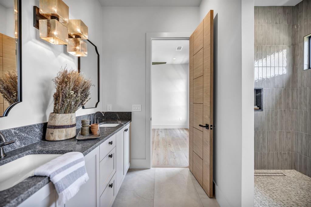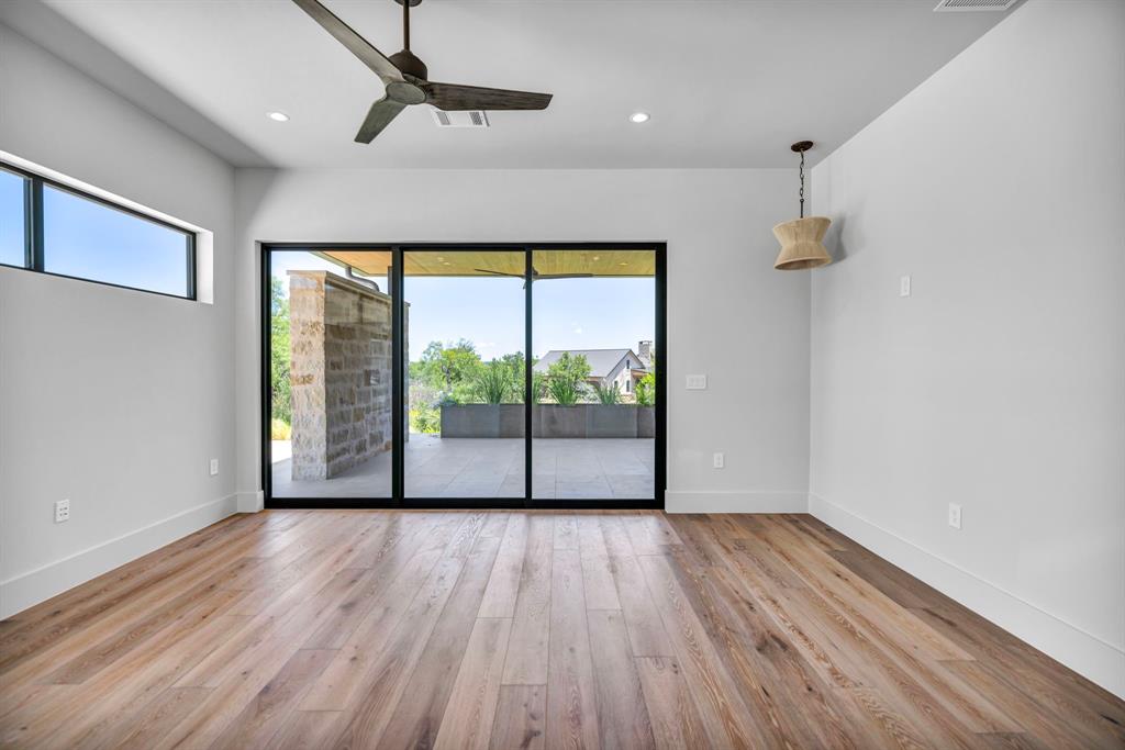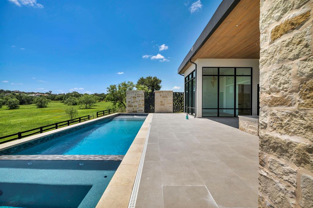 This stunning home is in the highly desirable, gated community of The Trails of Horseshoe Bay on the shores of Lake LBJ. Designed by Walter Barrineau and built by acclaimed Westway Builders, this home is your private oasis with expansive views of natural pastureland and rolling hills. Placed on .64 acres of Texas Hill Country, this new construction offers boundless features. Features include rift sewn white oak cabinetry, white oak internal doors, European Oak engineered hardwood flooring, designer tile laid out with meticulous details/patterns with linear shower drains, frameless glass showers, designer lighting, custom designed exterior garage lighting, white oak tambour and plaster fireplace, Thermador appliances, leathered and honed granite countertops throughout, venetian plaster in the kitchen and living area, white oak floating shelves, large wine refrigerator/bar in kitchen, custom white oak wall detail on kitchen wall facing into living room, built in coffee maker in butler pantry, custom made floating vanity in powder bath with hidden side toilet paper storage, designer hardware and plumbing throughout, floating staircase with white oak slabs treads and custom built handrailing, a large custom pivot door entry, large art niches, and high ceilings to capture the natural surroundings and distant views. This home is a masterpiece of design and craftmanship. Owner is a LREA.