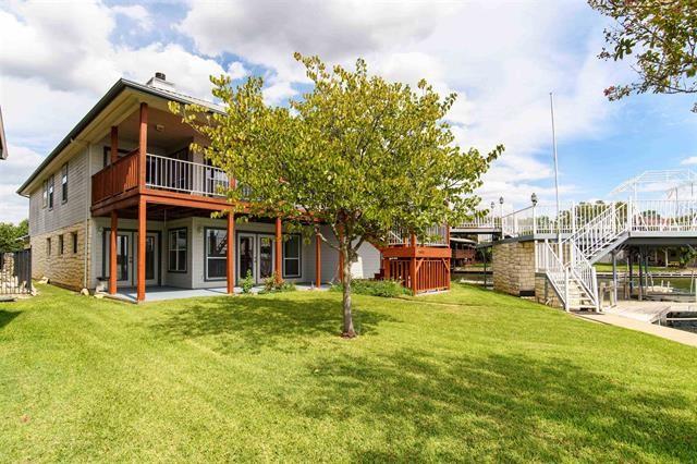 Opportunity is knocking! Location is everything! One Hundred Forty Circle Point may just be one of the premier lakefronts on Fabulous Lake LBJ. When it comes to lake-life, the waterfront is everything. Located at the end of a point, this property boasts Ninety plus feet of waterfront with a two-stall concrete boat dock with lifts, a storage room, lake pump, and a jet ski ramp. A large concrete deck (approx. 30’x33’) covers the boat lift & links to the upstairs living area of the home. Panoramic views consist of the water and tree covered ranchland across the lake. The possibilities for enjoying the water, entertaining friends & family, or simply enjoying the sunset are limited only by your imagination. The home consists of a downstairs foyer, large game room/family area with access to a large porch with views of the water. Two bedrooms and another room which could serve as a bedroom or office along with a full bathroom & laundry complete the lower floor. An elevator allows for easy access to the second-floor main living area. Upstairs the kitchen, dining, and living room allow for spectacular views of the lake with access to the second-floor deck and walkway to the large deck over the dock. A master suite has lake-views as well. Two other bedrooms and a bath complete the upstairs. The yard is equipped with a sprinkler system. Located between Kingsland and Marble Falls this property is close to all the Highland Lakes has to offer.