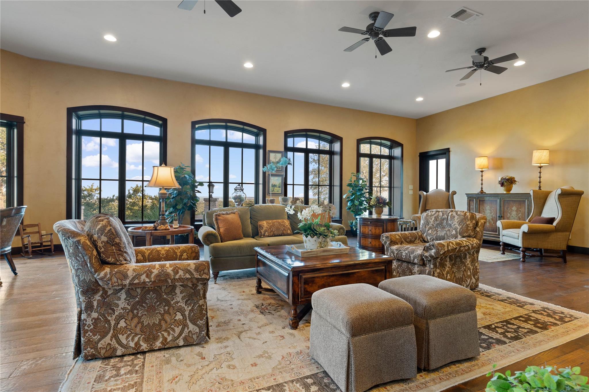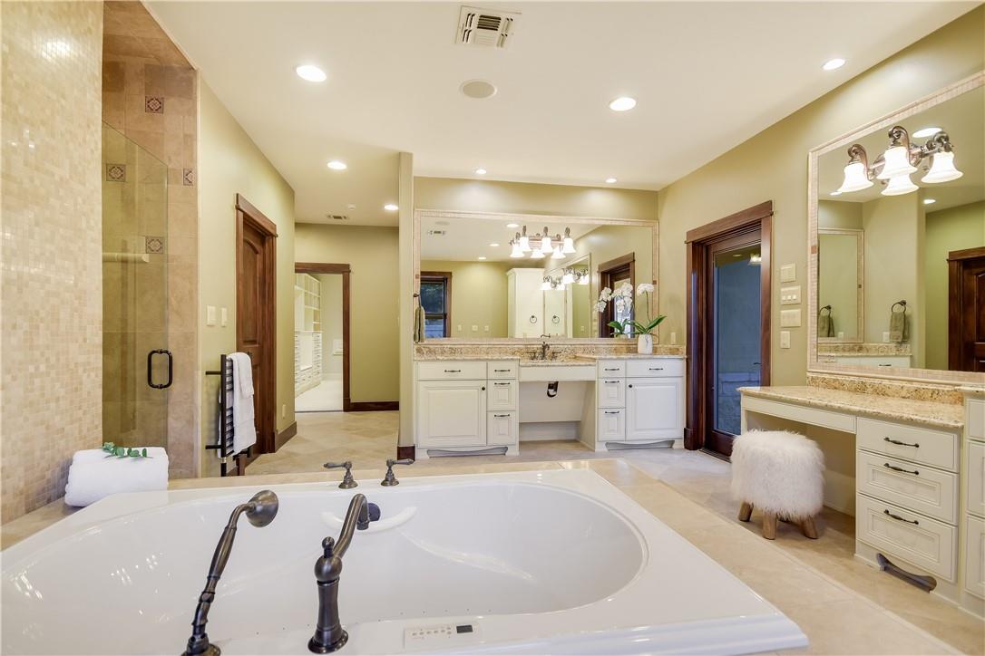 Two Primary Baths, Two Primary Suties, Bookcases, Built-in Features, Ceiling Fan(s), Coffered Ceiling(s), High Ceilings, Tray Ceiling(s), Chandelier, Granite Counters, Crown Molding, Double Vanity, Electric Dryer Hookup, Eat-in Kitchen, Elevator, Entrance Foyer, French Doors, In-Law Floorplan, Interior Steps, Kitchen Island, Multiple Dining Areas, Multiple Living Areas, Natural Woodwork, Open Floorplan, Pantry, Primary Bedroom on Main, Recessed Lighting, Soaking Tub, Storage, Walk-In Closet(s), Washer Hookup, Wet Bar |