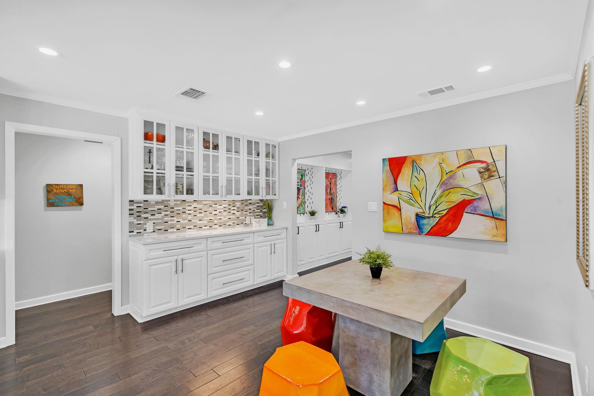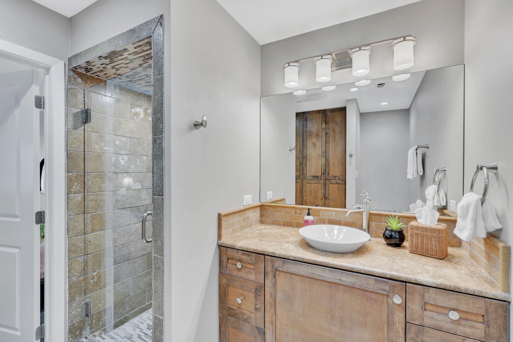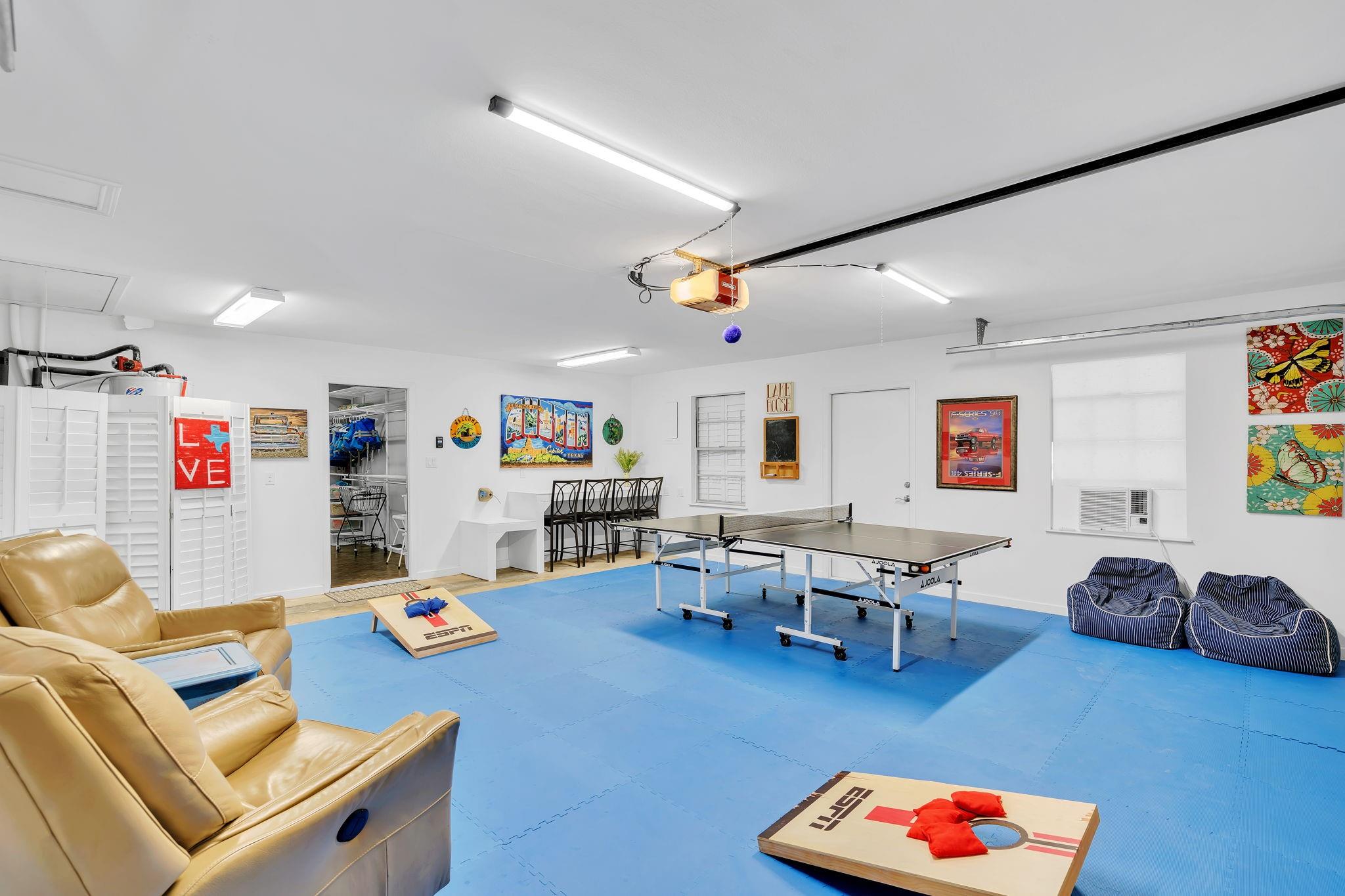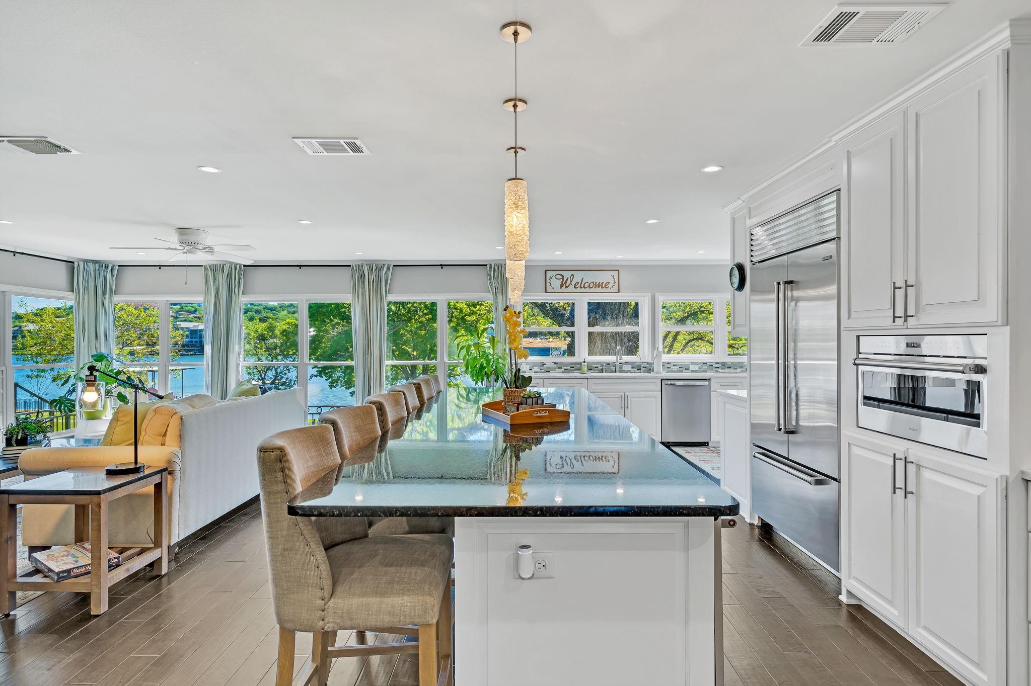 This amazing Lake Marble Falls property offers a fantastic opportunity for luxurious waterfront living or a vacation rental investment. With a newly remodeled 2525 sq ft home, featuring 4 bedrooms and 3 baths, it provides ample living space (sleeps 12) for full-time residents, weekend visitors, or short-term renters. The vibrant and urban-themed décor adds a modern touch to the property with furnishings to convey with the sale (excluding a few items). The highlight of this property is the impressive 2179 sq ft natatorium, which includes a heated pool, spa, and seating areas. The climate-controlled environment with a commercial-grade dehumidifying HVAC system ensures year-round comfort for residents and guests. Other features include a fenced yard, parking for 15+, and 3 garages, including space for an RV. Outside, the property boasts large pecan trees, a lush lawn gently sloping towards the 130 ft of waterfront, complete with a beach area, retaining wall, boat dock, and pier. Located at the heart of the Hill Country in Marble Falls, just 50 miles northwest of Austin and 85 miles north of San Antonio, this property offers a convenient escape from city life while still being within reach of major urban centers. Don't miss this unique opportunity to experience lakeside living at its best, whether as a primary residence, a vacation home, or a lucrative short-term rental. Available for Showings starting Thursday, 4/11.