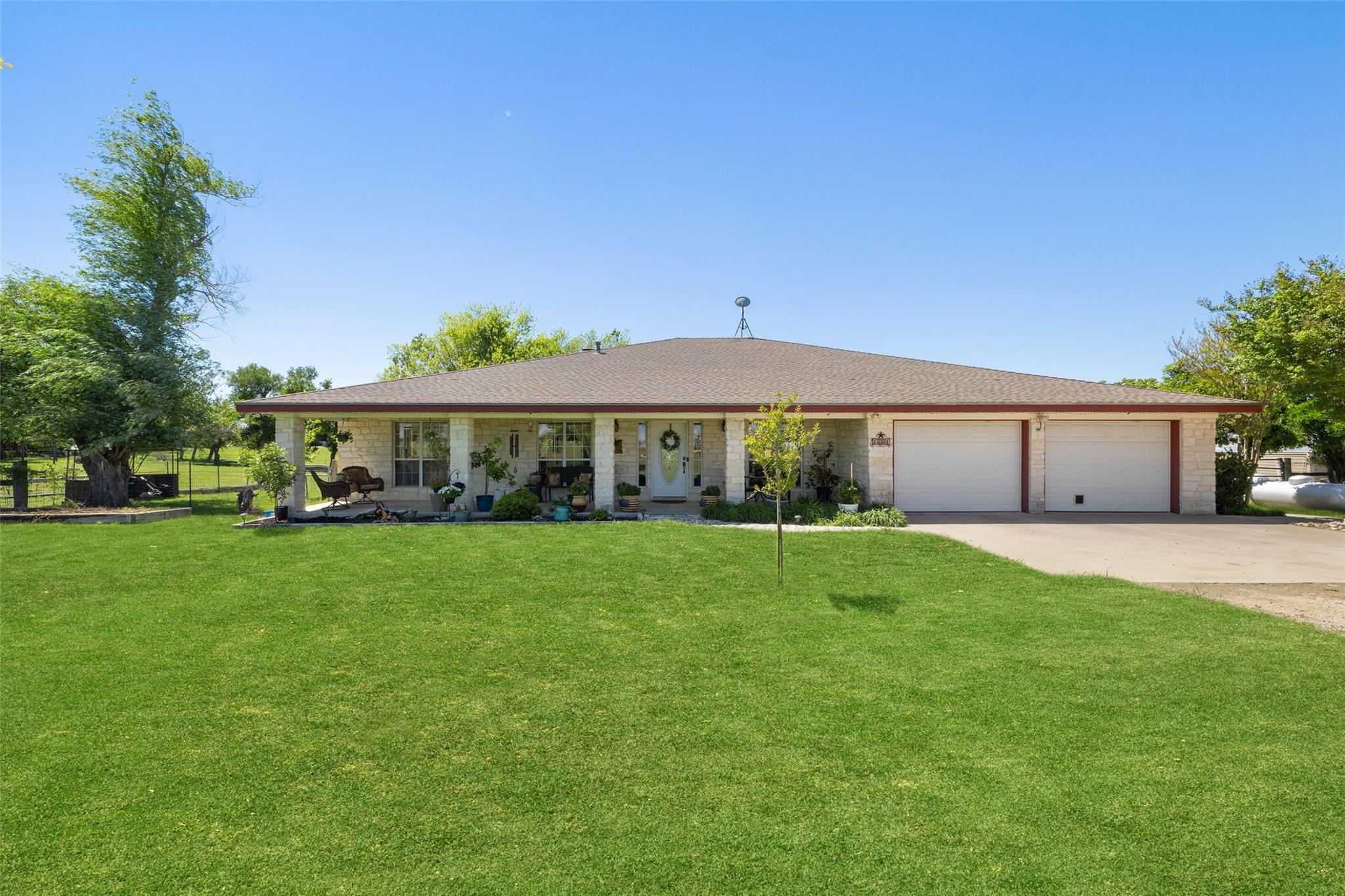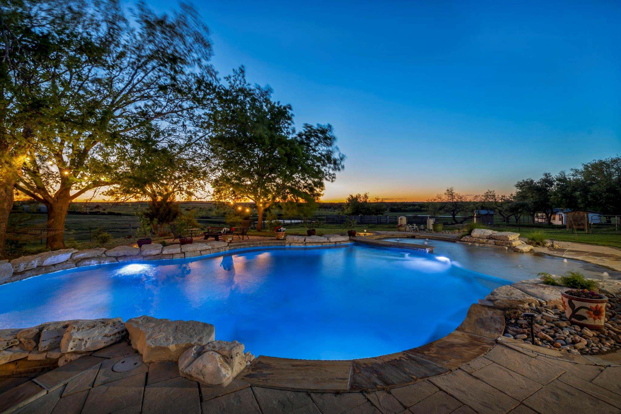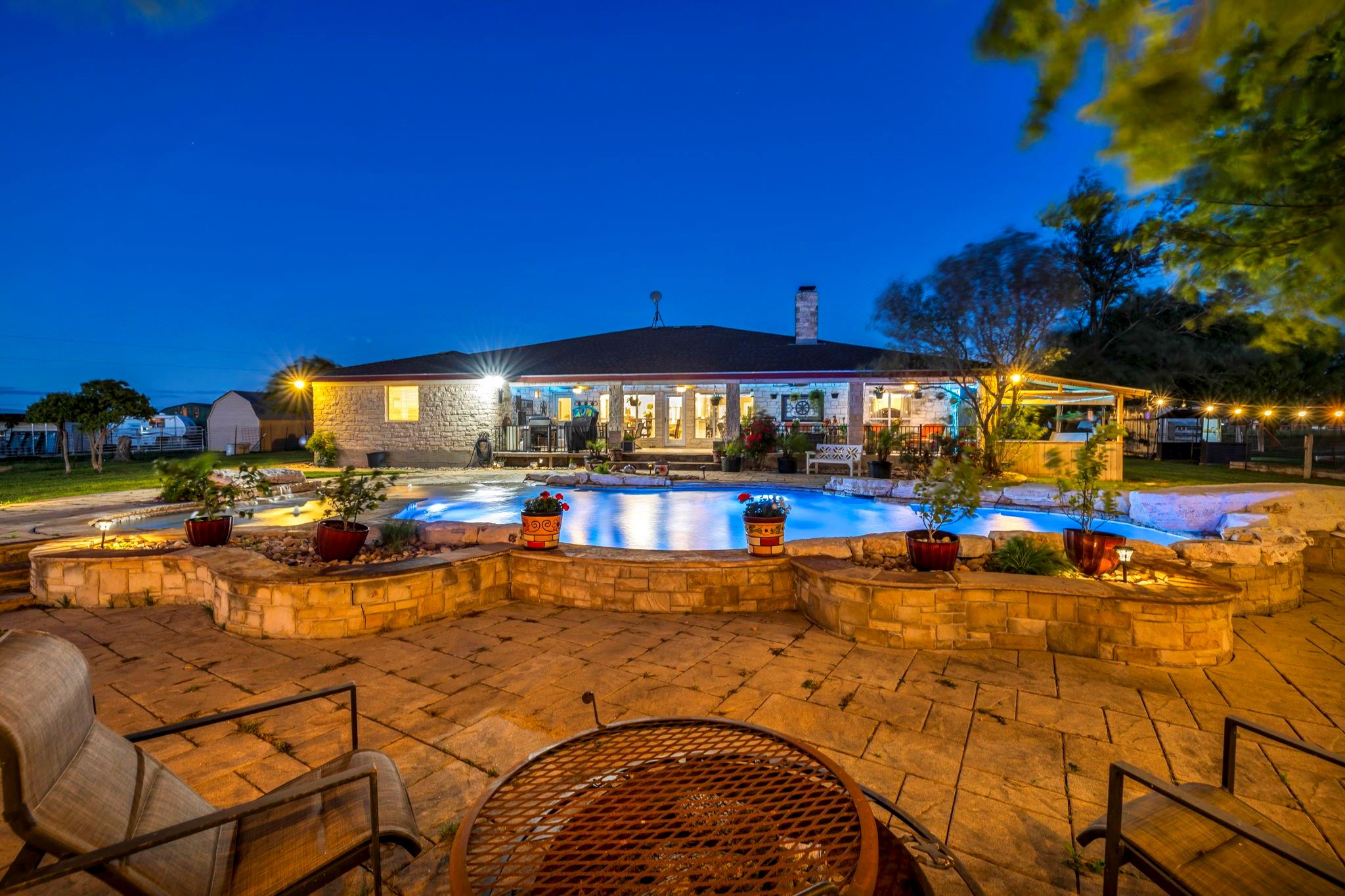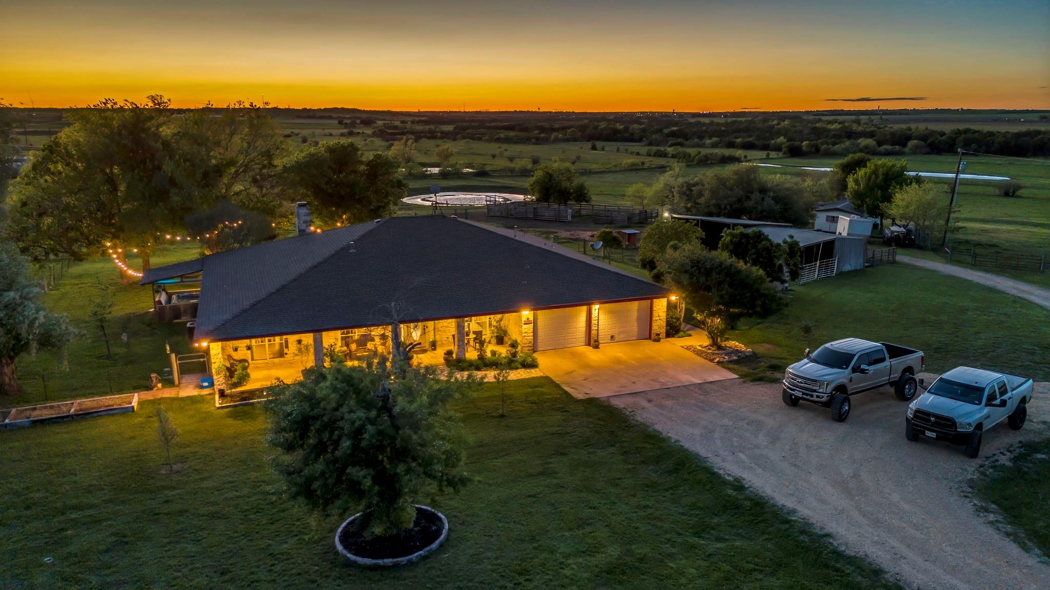 Welcome home! This gem is the perfect blend of luxury and comfort. Upon entering, you're greeted by a formal dining room and an office. The kitchen is a chef's paradise, complete with ample cabinetry, double ovens, stainless steel appliances, and an island fit for culinary creations. The family room boasts a cozy wood burning fireplace. Owner's retreat includes an ensuite bath with his and hers vanities, walk-in closet, separate shower and a garden tub with a fantastic view! Step outside to an outdoor living center oasis with gorgeous countryside views and a resort-style pool that features a waterfall and a large beach area with umbrellas! Enjoy over 30 acres of farm/equestrian land with two storage buildings, stock ponds, pens and fences. Guest quarters that include an additional 2 bed/2bath sit on its own parcel with its own power, propane, water and septic. A backup generator for the main home and pool were installed in 2021. Pool pumps with cellular control and HVAC for the main home were added in 2019. The back of the property faces downtown Taylor and is just a short 12 minute drive from the Samsung Semiconductor facility!