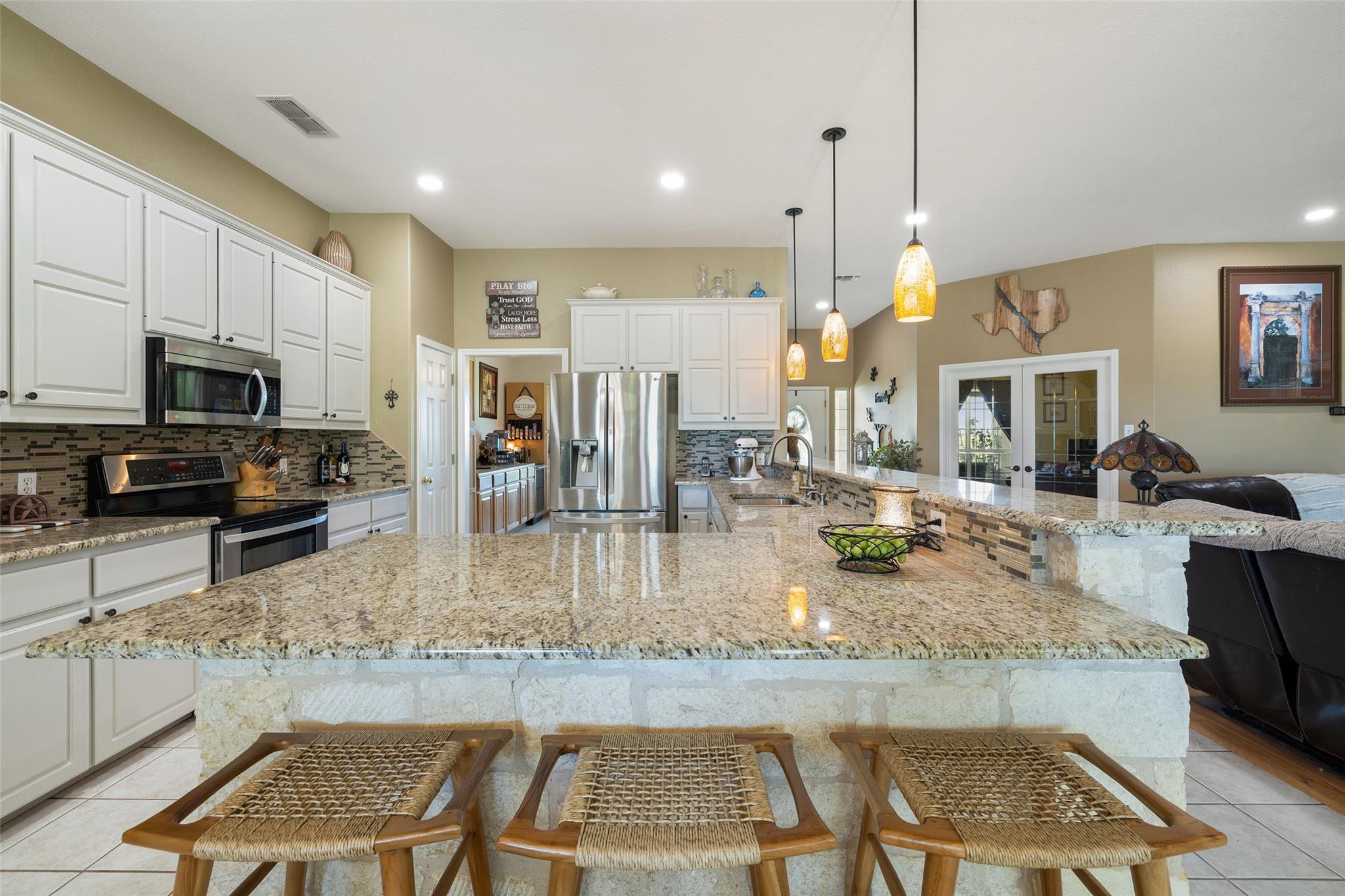 | Interior Features | Breakfast Bar, Ceiling Fan(s), High Ceilings, Granite Counters, Electric Dryer Hookup, Eat-in Kitchen, Entrance Foyer, French Doors, Kitchen Island, Multiple Dining Areas, Multiple Living Areas, Open Floorplan, Primary Bedroom on Main, Recessed Lighting, Soaking Tub, Two Primary Closets, Wired for Sound | |