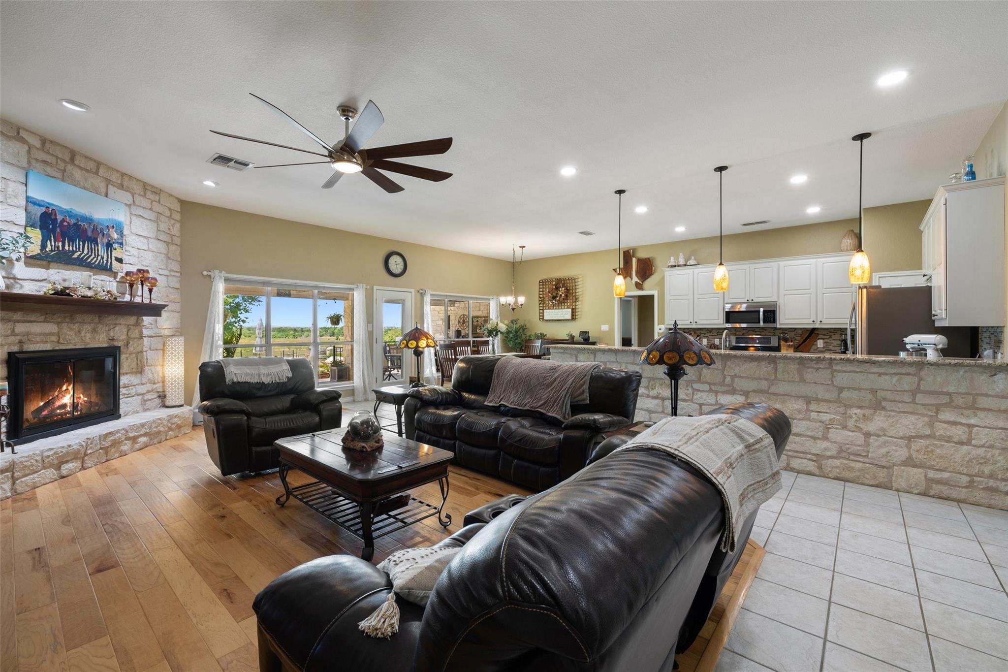 | Fireplace Info | Living Room, Raised Hearth, Stone, Wood Burning | |