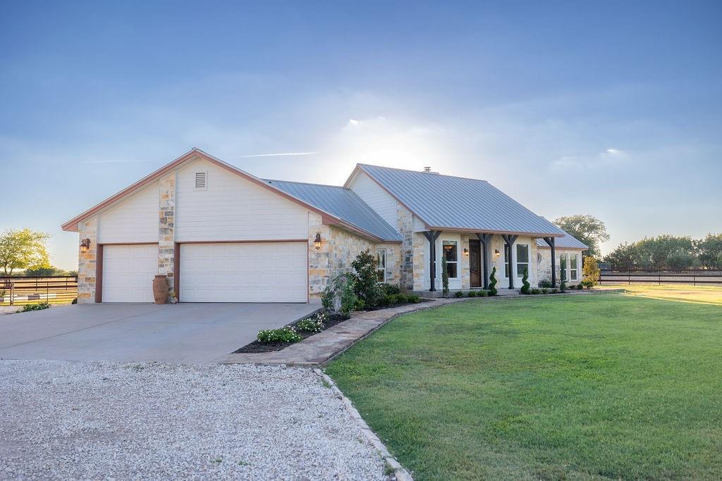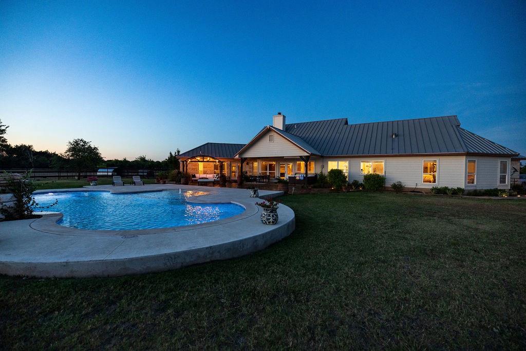 A gorgeous luxury home centered on 20 TOTALLY UNRESTRICTED,AG EXEMPT private acres! 15 min to the 3 major Hwys & 35 minutes to Austin or beyond! Custom limestone home w/steel roof, radiant barrier, foam insulation. NEW: 2 tankless water heaters, 2 AC, all hottub components, pool motor, garage door openers, main gate controls, septic pump & over $200K in upgrades throughout! Imported mahogany double front doors leading to a palatial entry & dining Rm seats 12+. Stunning open concept all glass rear view to patio, pool & acreage! Relax in the living room w/stone fireplace, hand hewn wood mantle, French doors open to an oasis: covered porch, stone patio, custom 40’ waterfall pool w/beach entry, XL hottub, pergola & AMAZING sunsets. Living room connects to the chef designed kitchen w/imported Italian range w/rotisserie double ovens,Copper vent hood, pot filler, built in Kitchenaid stainless fridge & appliances, RO water filter, soft close to-ceiling cabinetry, rolled travertine tile walls sliding shelves, mixer-lift, pot drawers w/double islands & unique quartzite counters make it ideal for large gatherings & entertaining. Master bdrm: roomy, tons natural light, French doors open to the “beach”. Spa-like bathroom: stone/glass shower, soaking tub, dual vanities, granite counters, 2 walk in closets. Adjacent room can be either an office/nursery. The ample guest suite, w/full bath, granite counters, walk in closet & sitting area. 2 additional luxuriously spacious guest rooms sharing a full bath: granite counters, glass & stone shower w/dual shower heads, travertine tile sitting bench. Outer buildings:(48x72) workshop: 110 & 220 electric, welding benches, 8” reinforced slab, 3 rolling doors for RV, boat, cars! 5 barns: (48x72), (48 x68), (17 x 24), 2 (20 x48) 3 (12x17) Main barn: tack room, 8- 10 x 10 steel modular pens, 2 rolling doors, tankless water heater w/wash rack connections, covered lighted arena.11 divided pastures w/ 10’&16’ pass trough gates. MUST SEE TO BELIEVE!