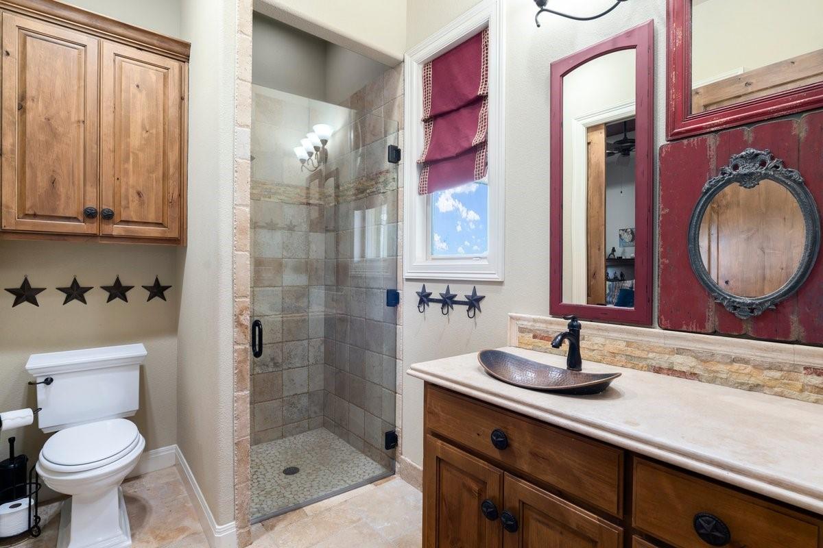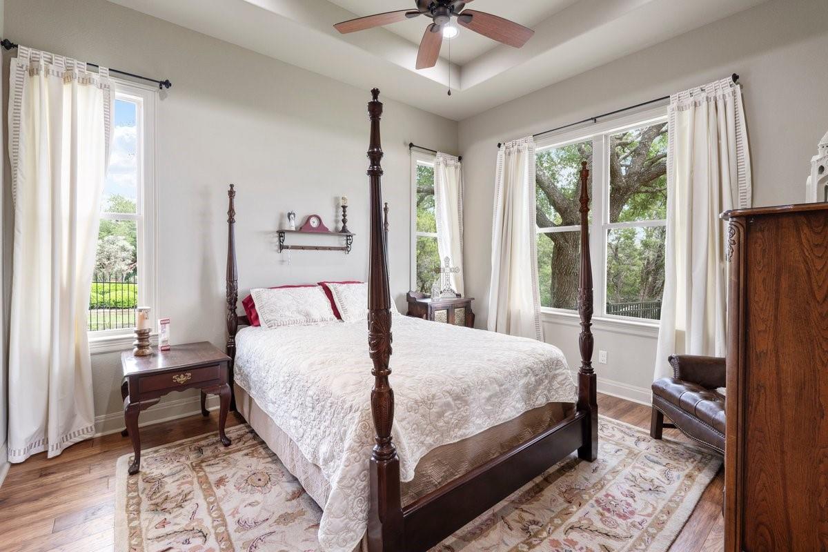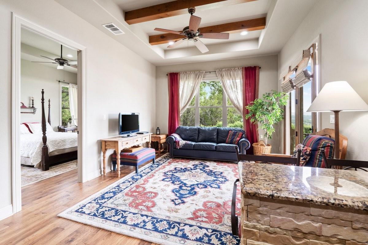 Perched high in the majestic hills surrounding Lake Travis in one of the most prime locations just outside of Austin. And with a low tax rate! With a true feeling of seclusion, yet only minutes from shopping, dining and schools, the small, gated neighborhood of Bee Creek Estates is one of the most exclusive in the area. This picturesque home with lush landscaping sits on a large 1.77 acre lot. Soak in lounging by the pool with breathtaking, panoramic views in all directions. Step inside to discover a meticulously maintained interior. The kitchen is massive and will thrill any culinary enthusiast with its copper sink, granite countertops, JennAir appliances and tons of storage. An immense, dedicated office also includes a stone fireplace. The primary suite has a fireplace as well as a substantial closet and high ceilings. And the laundry room with custom cabinetry and a separate desk area is huge! This home also comes equipped with an RO water filtration system. All doorways were designed to be extra wide in order to accommodate a wheelchair. Perfect for in-laws, guests or teens in need of privacy, there is an attached 650 square foot casita off of the garage with another entrance from outside. This spacious apartment includes a large living area as well as a separate bedroom. With a kitchen, separate shower, ADA compliant bathtub and washer/dryer, you and your guests will have the privacy that everyone craves. According to builder plans, the main part of the home is 3,114 square feet. Close by are miles and miles of hiking trails, 7 area golf courses and a plethora of water activities on any of the lakes this area is known for. This ideal location is not only private and tranquil but close to everything! Only 20 minutes from downtown Austin and 30 minutes from the Austin airport and just 10 minutes from both Lakeway and Bee Cave, this exemplary home offers a rare opportunity to indulge in the natural splendor of the Lake Travis area while being close to everything.
