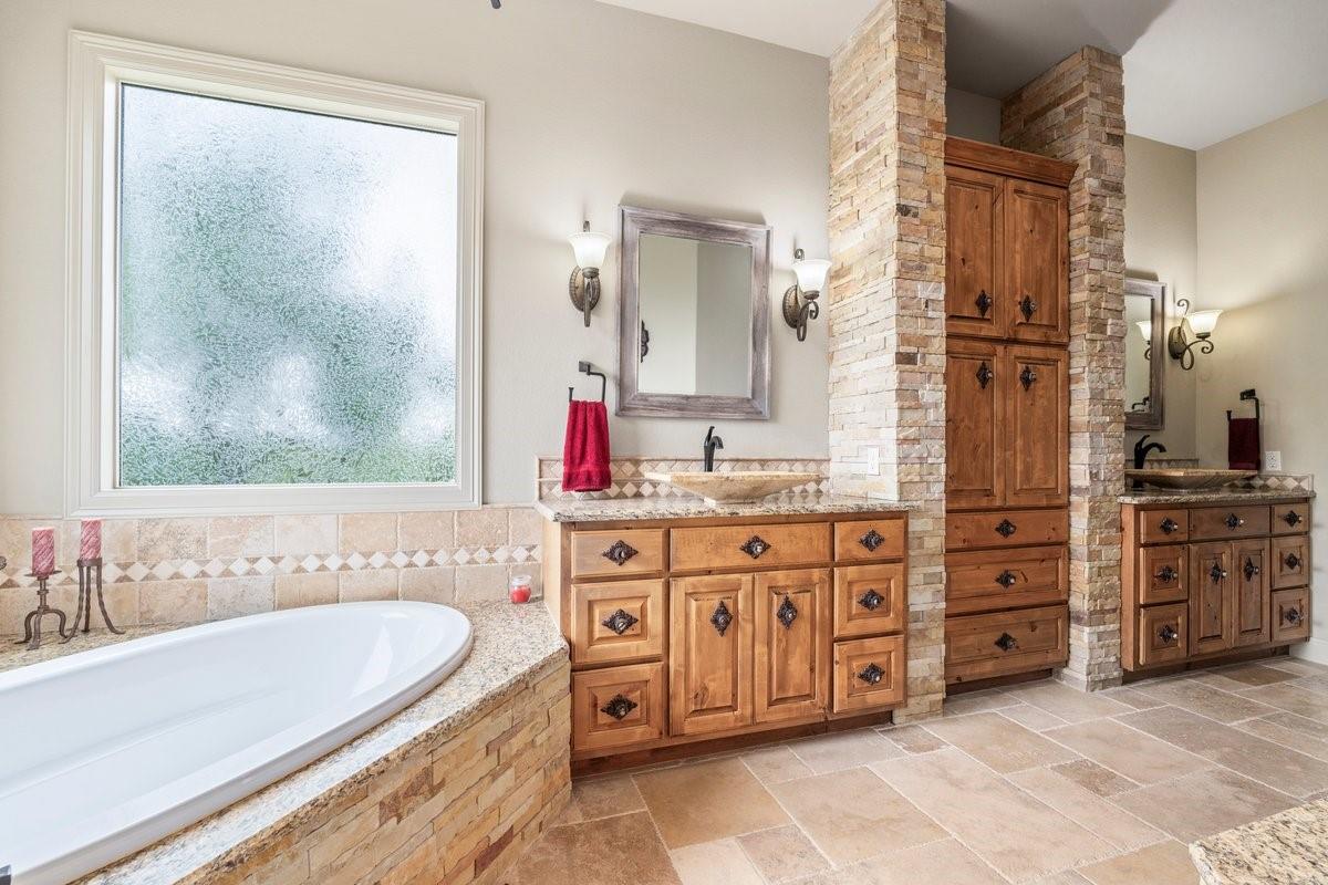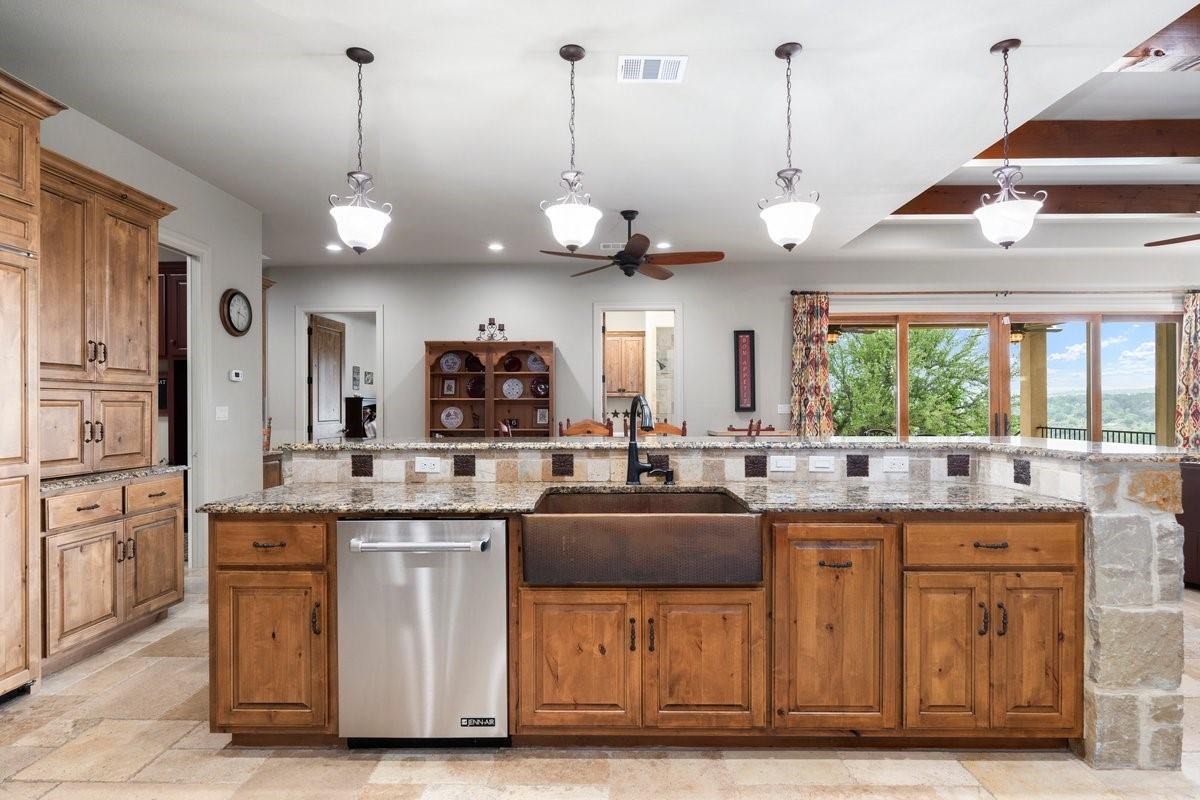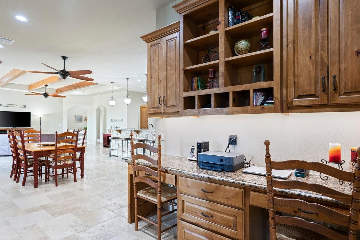 | Interior Features | Breakfast Bar, Built-in Features, Ceiling Fan(s), Beamed Ceilings, High Ceilings, Granite Counters, Double Vanity, Dry Bar, Eat-in Kitchen, Entrance Foyer, In-Law Floorplan, Multiple Dining Areas, Multiple Living Areas, Natural Woodwork, No Interior Steps, Open Floorplan, Pantry, Primary Bedroom on Main, Recessed Lighting, Soaking Tub, Storage, Walk-In Closet(s) | |