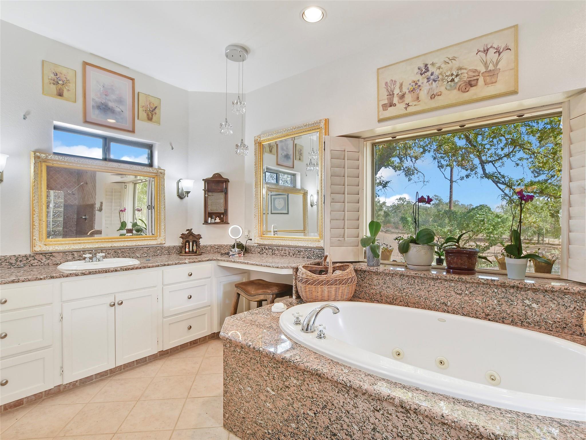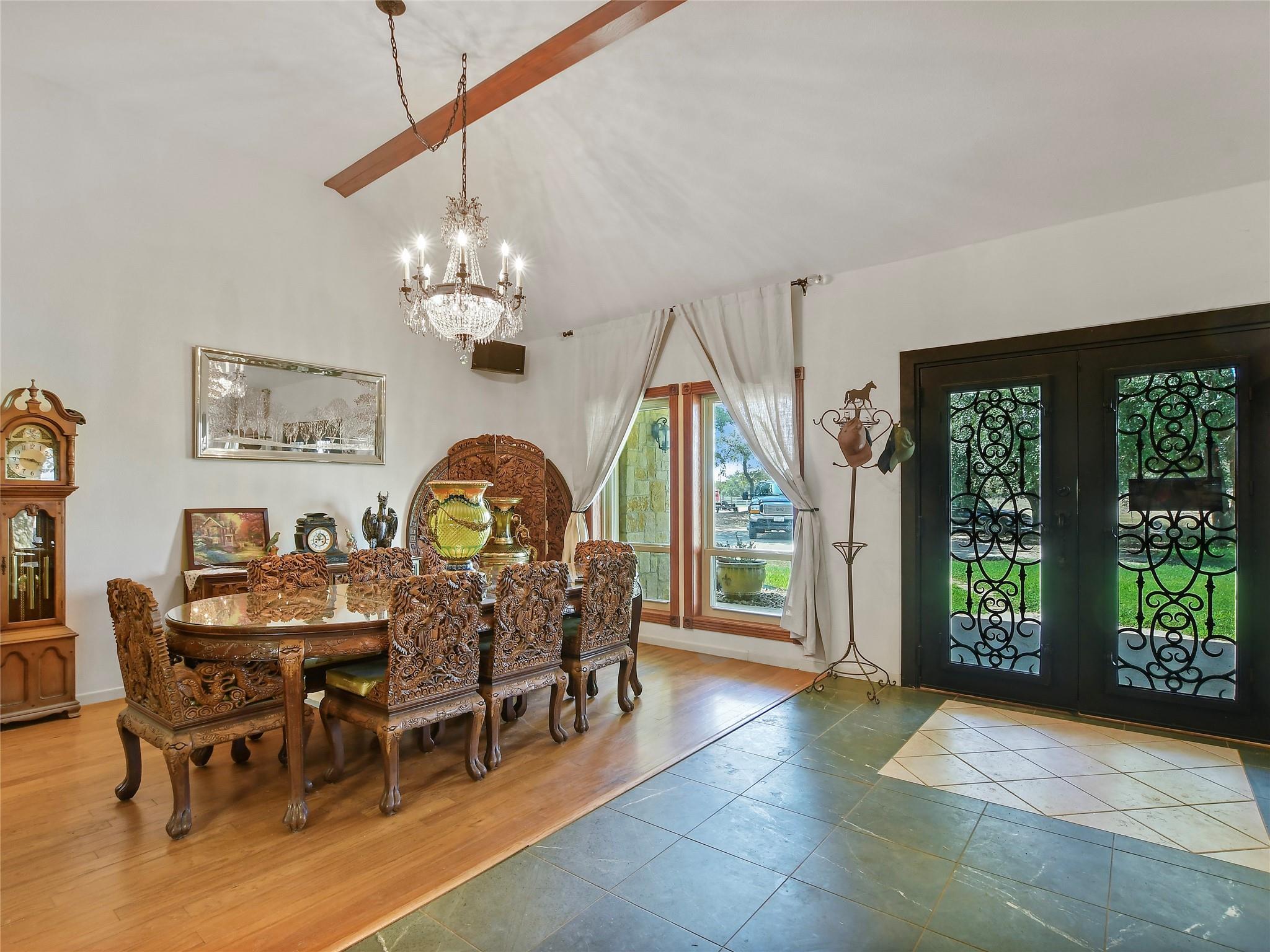 | Interior Features | Breakfast Bar, Beamed Ceilings, High Ceilings, Granite Counters, Double Vanity, Entrance Foyer, French Doors, In-Law Floorplan, Kitchen Island, Low Flow Plumbing Fixtures, Multiple Dining Areas, No Interior Steps, Open Floorplan, Primary Bedroom on Main, Recessed Lighting, Soaking Tub, Walk-In Closet(s), Washer Hookup | |