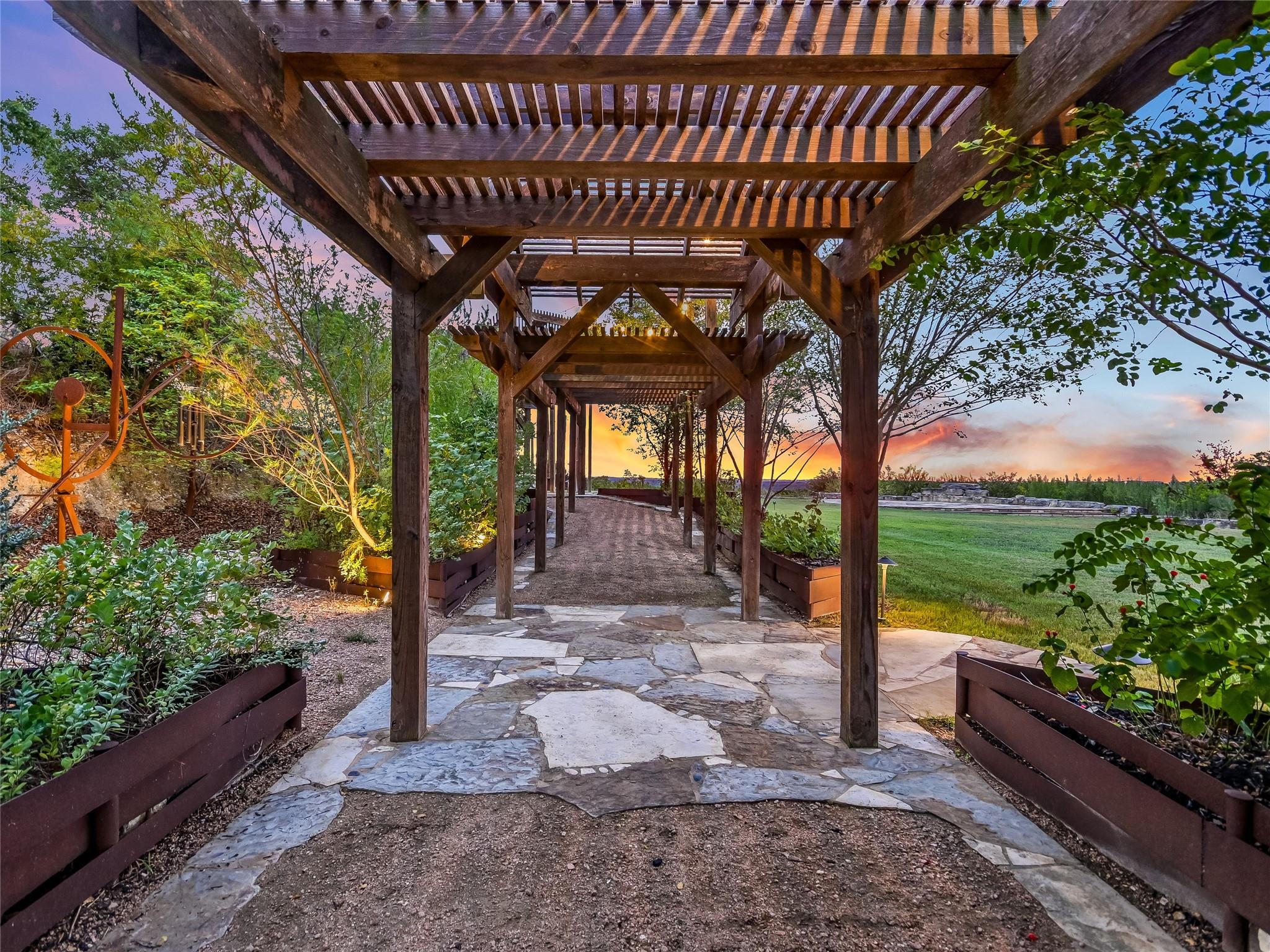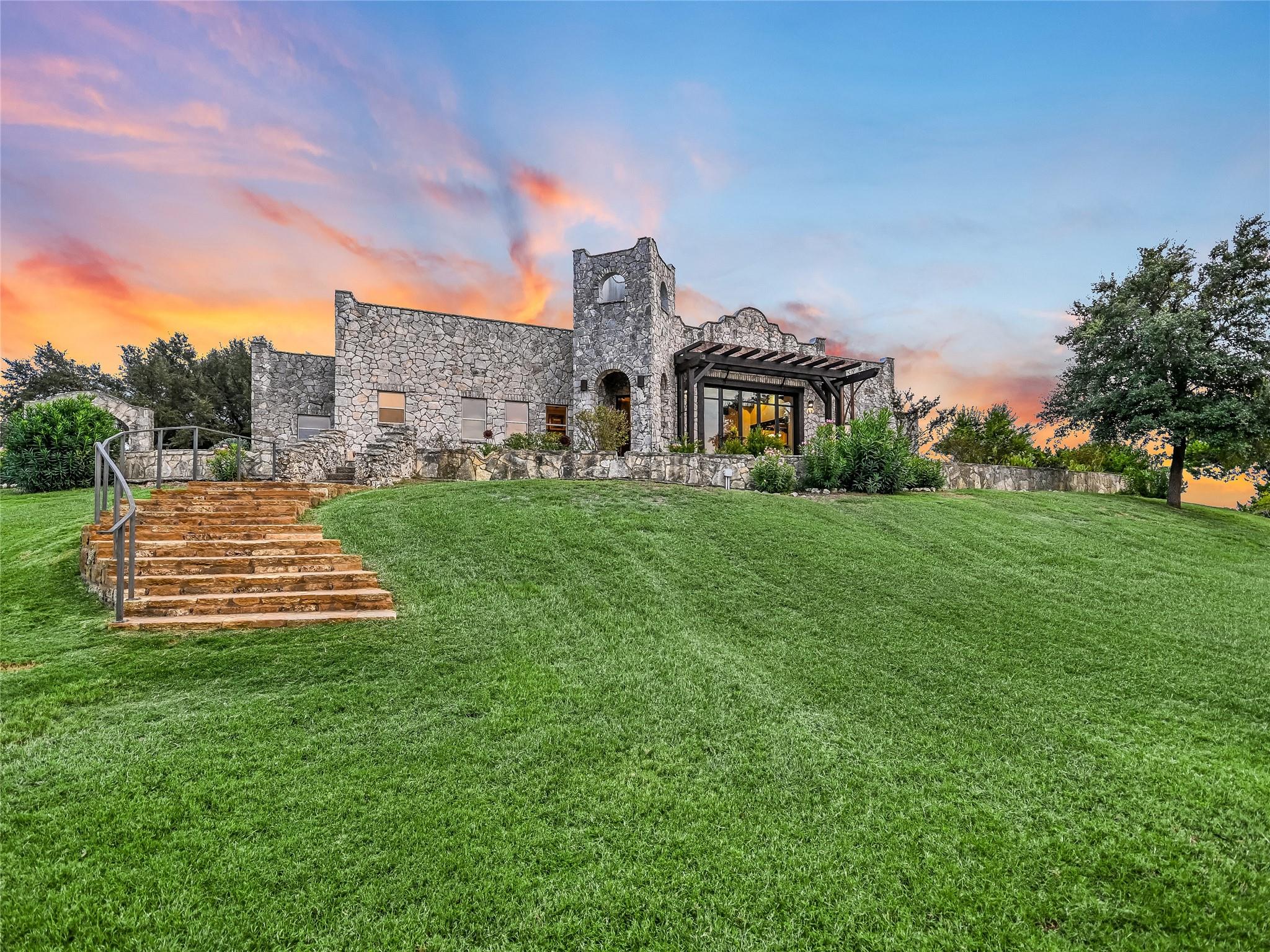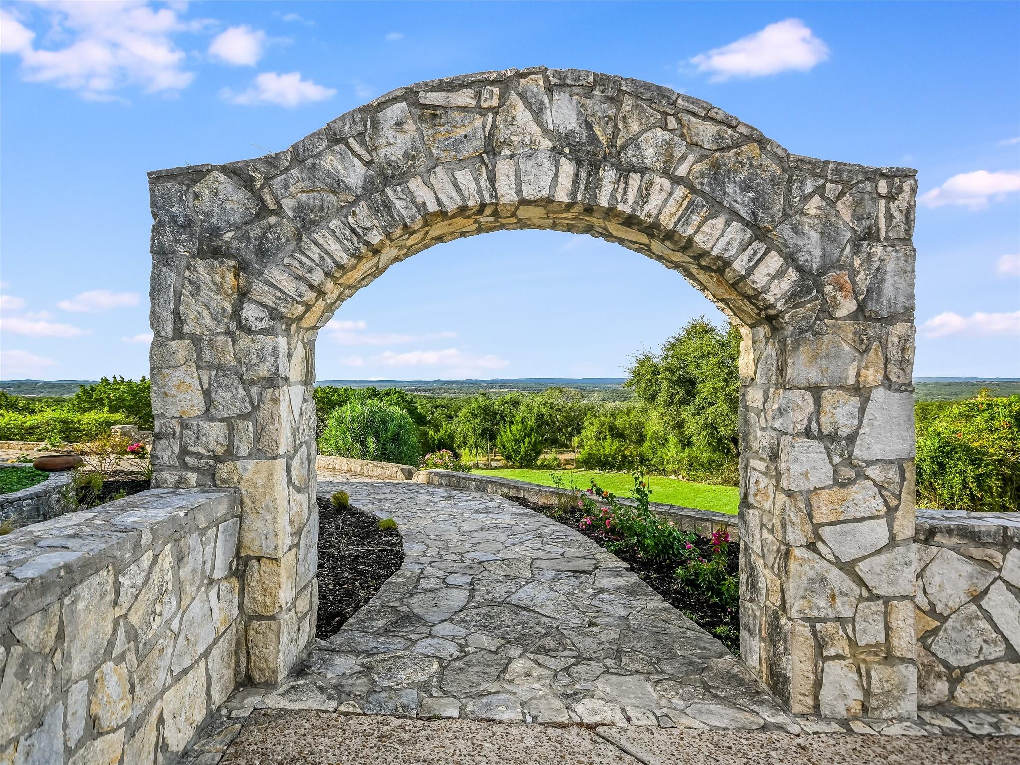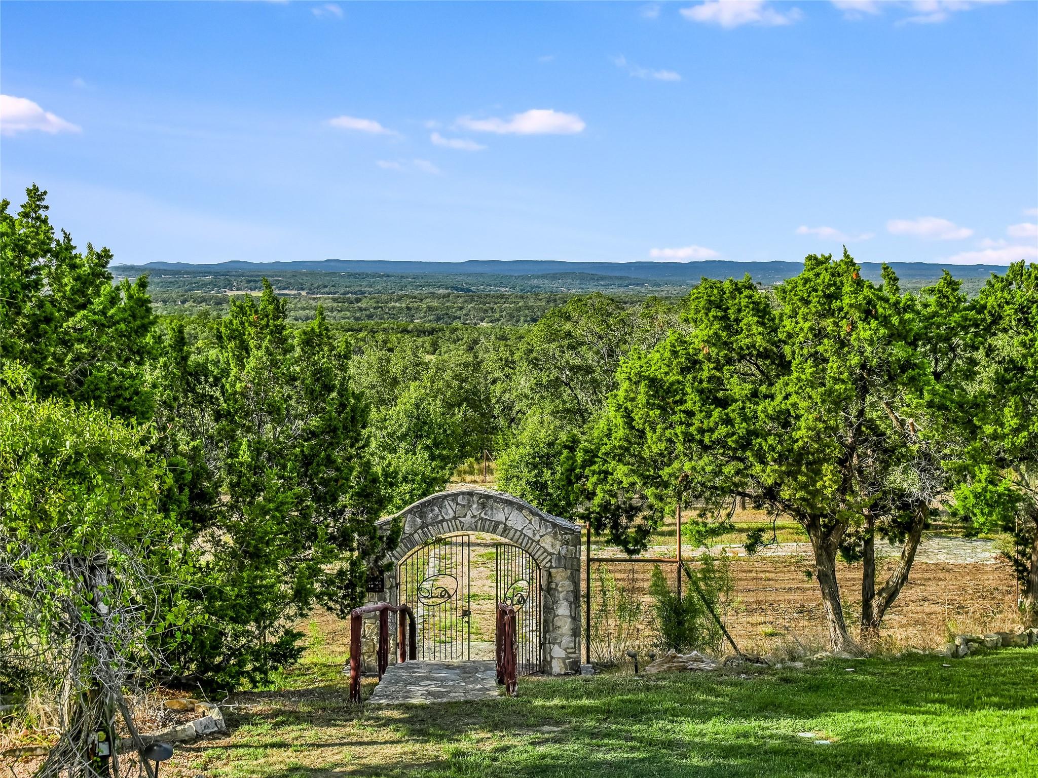 30 unrestricted landscaped acres w/ frontage on FM 32 between San Marcos and Wimberley, Rancho Mirando stands as a breathtaking Hill Country Event Venue & Luxury Guest Ranch, at an elevated position of panoramic views of the Devil's Backbone spanning over 2 counties. The land has undergone 15years of restoration to native grasses & wildflowers and the removal of cedar trees allowing the installation of a 60 tree Olive Grove. This estate boasts a cool castle-like Hacienda, built in 2001, of 3834 sqft. With 4 bedrooms, 3 1/2 baths, 3 living areas, a fully equipped kitchen, a utility room, a double garage, two sprawling patios, and an ample 192+/- sqft storage area, it effortlessly accommodates up to 16 guests in true Texas comfort.Step outside, and you'll find an inviting oasis that includes a covered BBQ terrace, a refreshing pool with a cascading waterfall, and an adjacent 500 +/- sq ft tented area - all designed for relaxation & celebration while enjoying those captivating views.Across the way, is a view oriented, building constructed in 2011, the Pavilion. It is a contemporary Texas Hill Country style designed by AIA Architect Mark W Canada with approximately 3500 sqft of versatile space. Complete with multiple terraces, a fully equipped commercial kitchen, & spellbinding vistas.Descend the steps, and you'll come upon charming Bella Vista Bar & Patio & Park, complete with a welcoming serving bar and a limestone patio. The exquisite Bella Vista area stands as a picturesque park amid natural beauty.The potential of this remarkable property is as boundless as your imagination. Ideal for weddings, rehearsal dinners, joyous celebrations, corporate and family retreats, inspiring cooking classes, memorable awards ceremonies, cinematic filming locations, and heartwarming family or class reunions.With 30 sprawling acres at your disposal, envision creating additional cottages or living spaces to expand your dreams. NOTE: The Taxes & Tax Information are estimates.