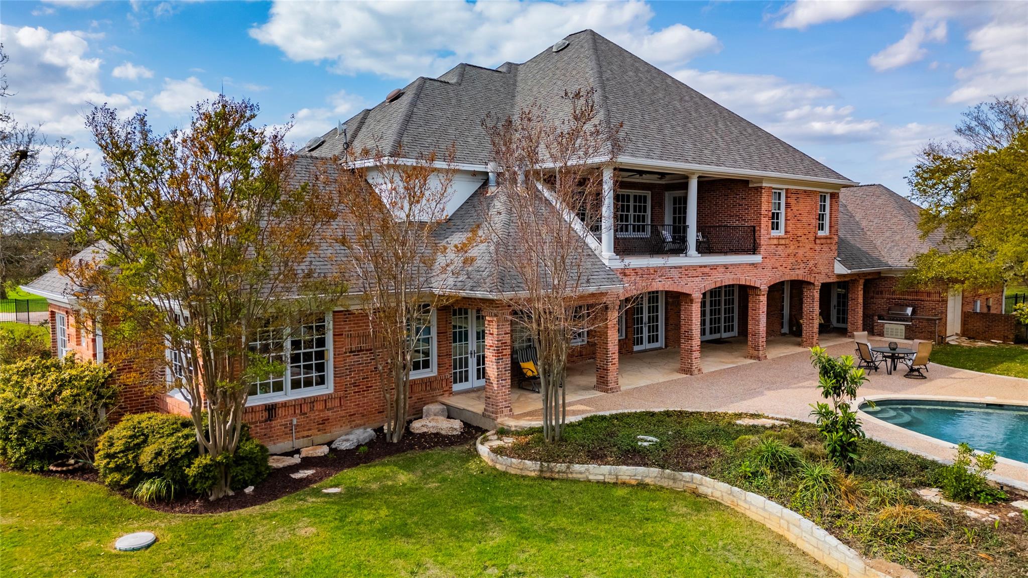 Discover the allure of 1601 Panther Creek Rd, Driftwood, a secluded retreat on over 26 acres of fenced countryside, just a short drive of the vibrant communities of Dripping Springs and Austin. Refresh your soul as you immerse yourself in an outdoor sanctuary featuring a pool and expansive covered living area, set against a backdrop of stately live oaks and the vibrant symphony of local birdlife. Then, feel the world melt away as you retreat to this spacious and stately home with 4 bedrooms, 5 baths and ample living spaces with living room, two dining areas, library/office, game room and incredible storage. The large primary suite is on the first floor and has direct access to the exterior. In addition, a versatile insulated workshop on the property provides an ample area to tinker, create or park your toys, including a covered area to park an RV or boat. Escape to your own private sanctuary! Enjoy panoramic views, including a long-range vista from the second-floor balcony. The historical and picturesque windmill on the property completes the Hill Country ambiance you truly desire! Wildlife management valuation for low taxes.