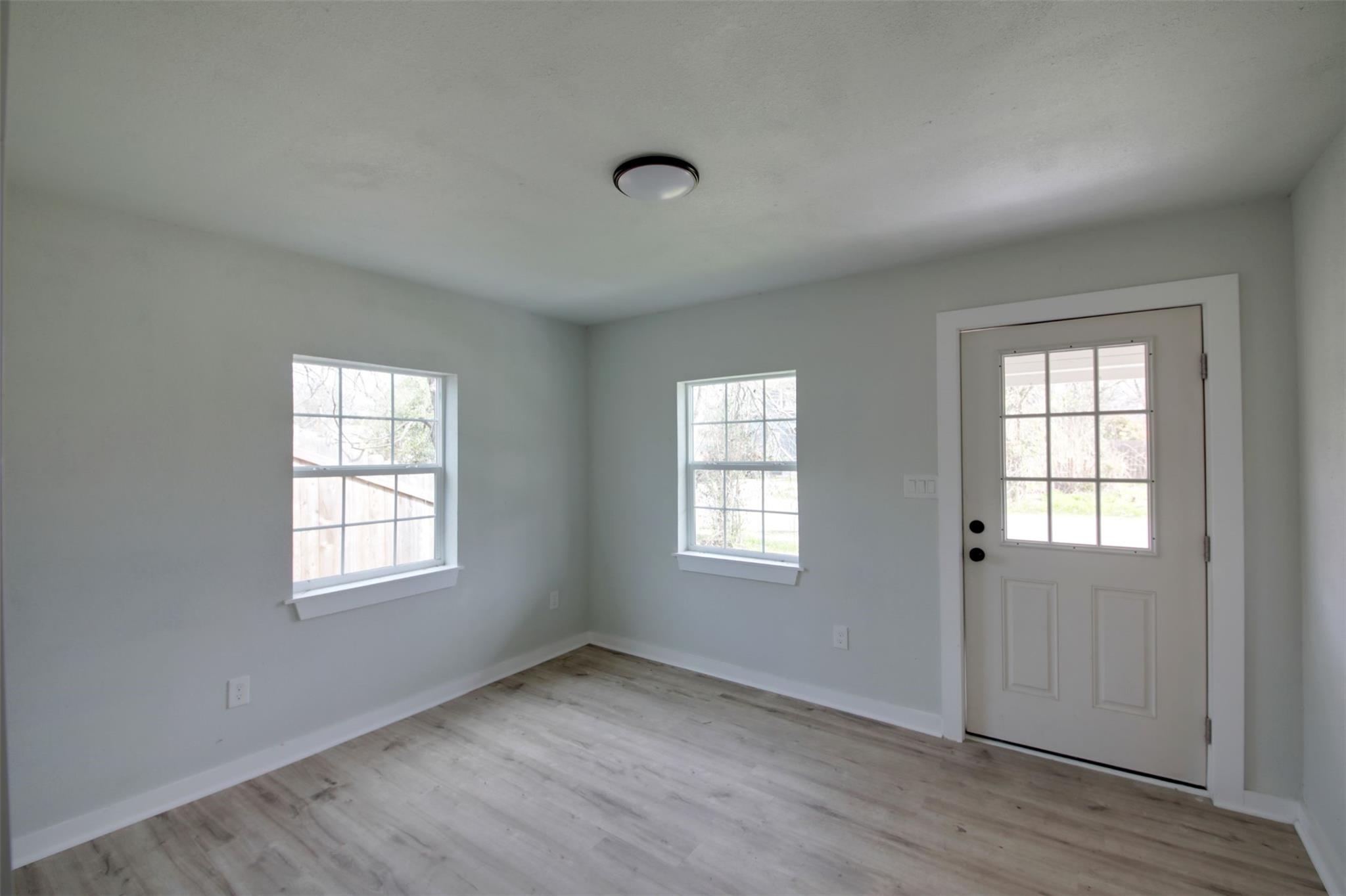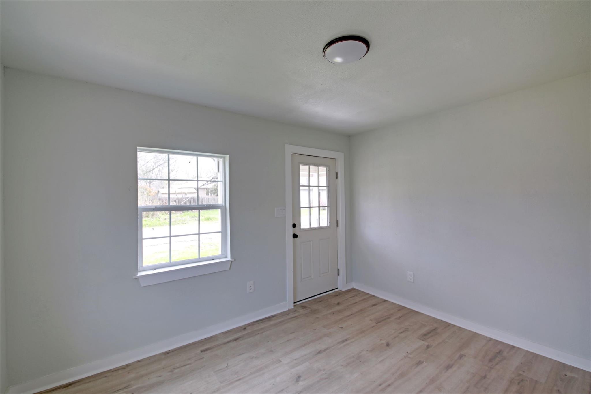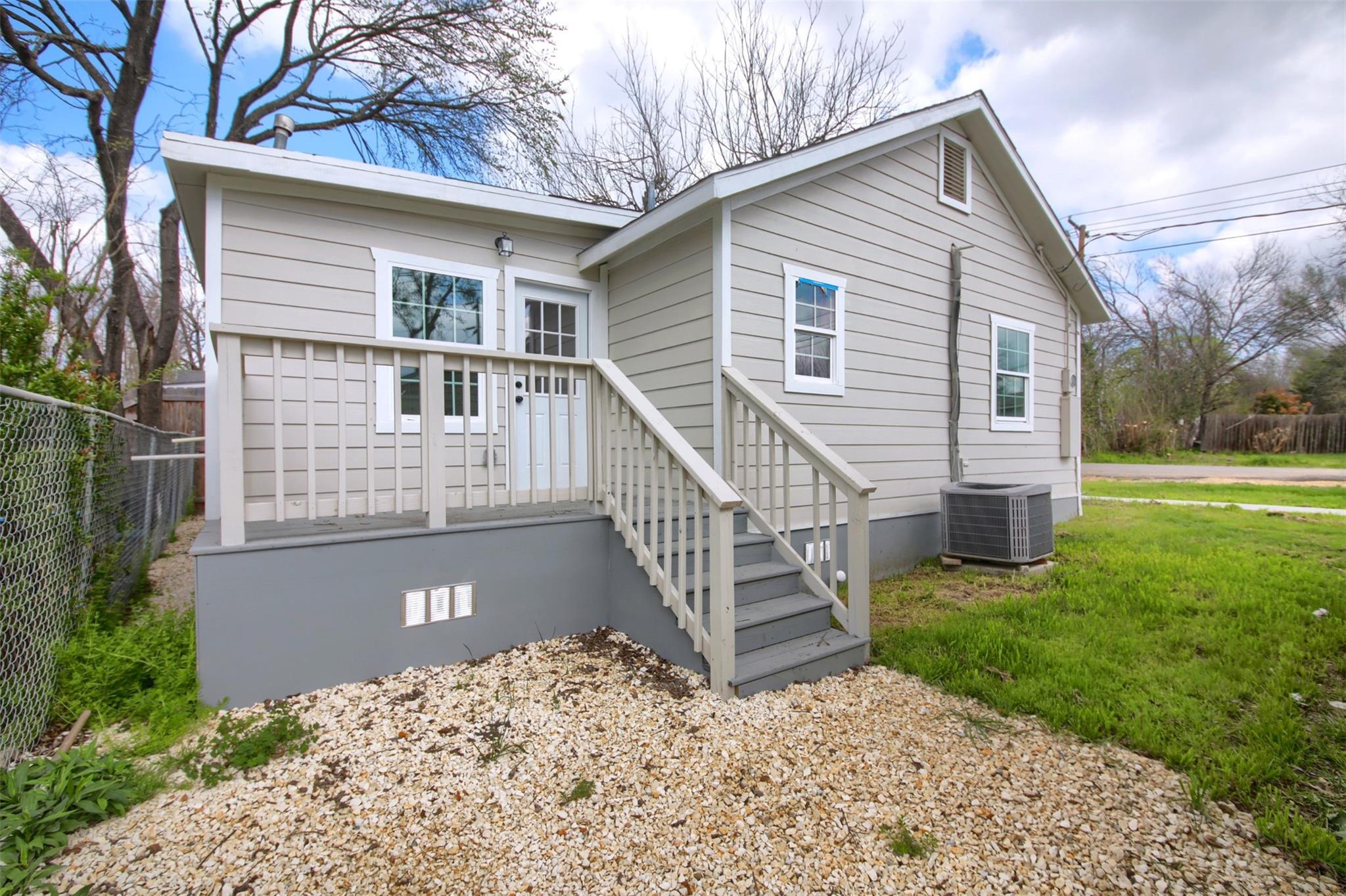 Newly remodeled 772 Sq. Ft. house with 2 bedrooms and 1 bath. Open living room to Kitchen and then to a back bedroom. Laundry room in the back with space for dining. Small Deck on the side of the house.