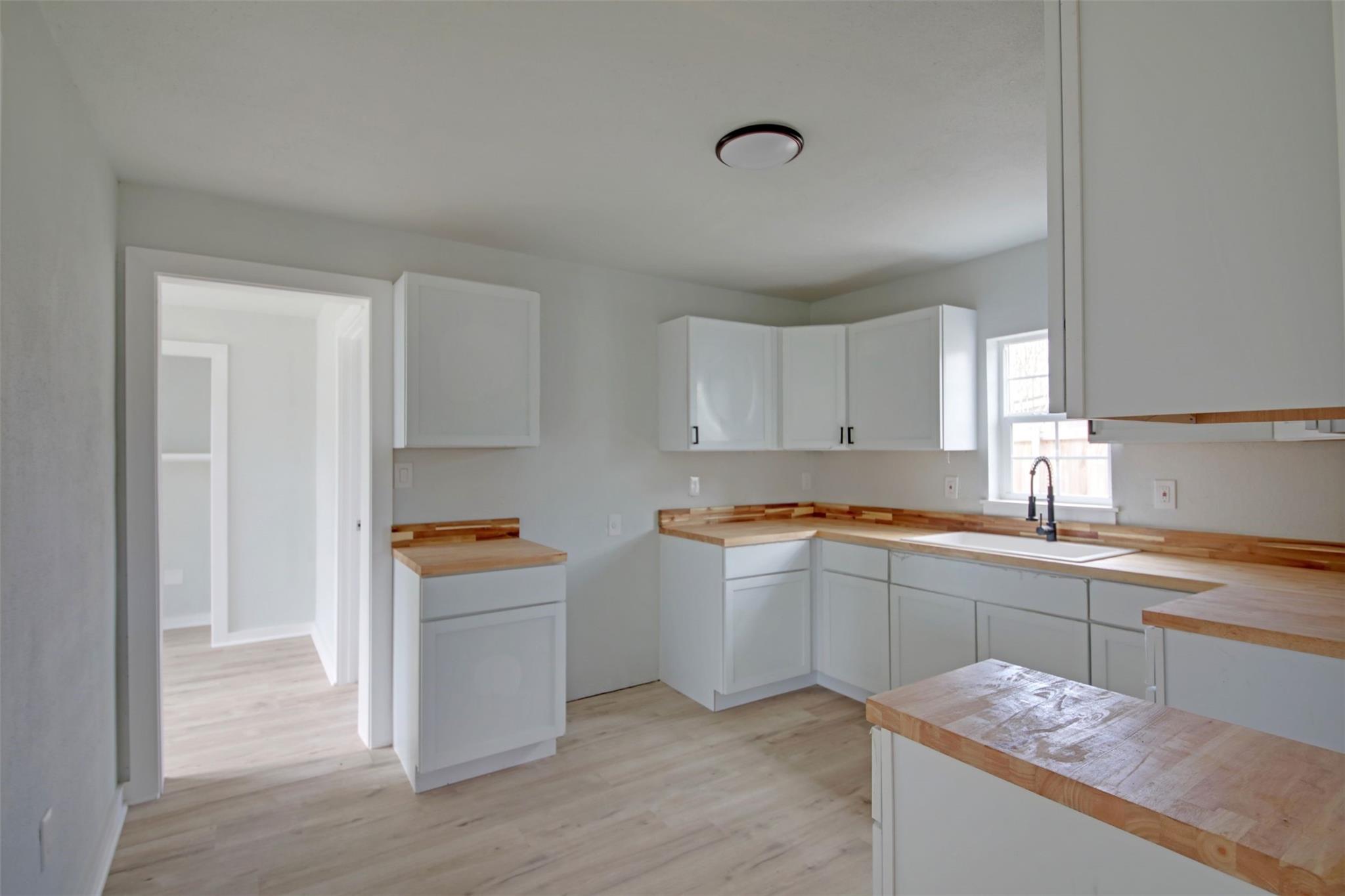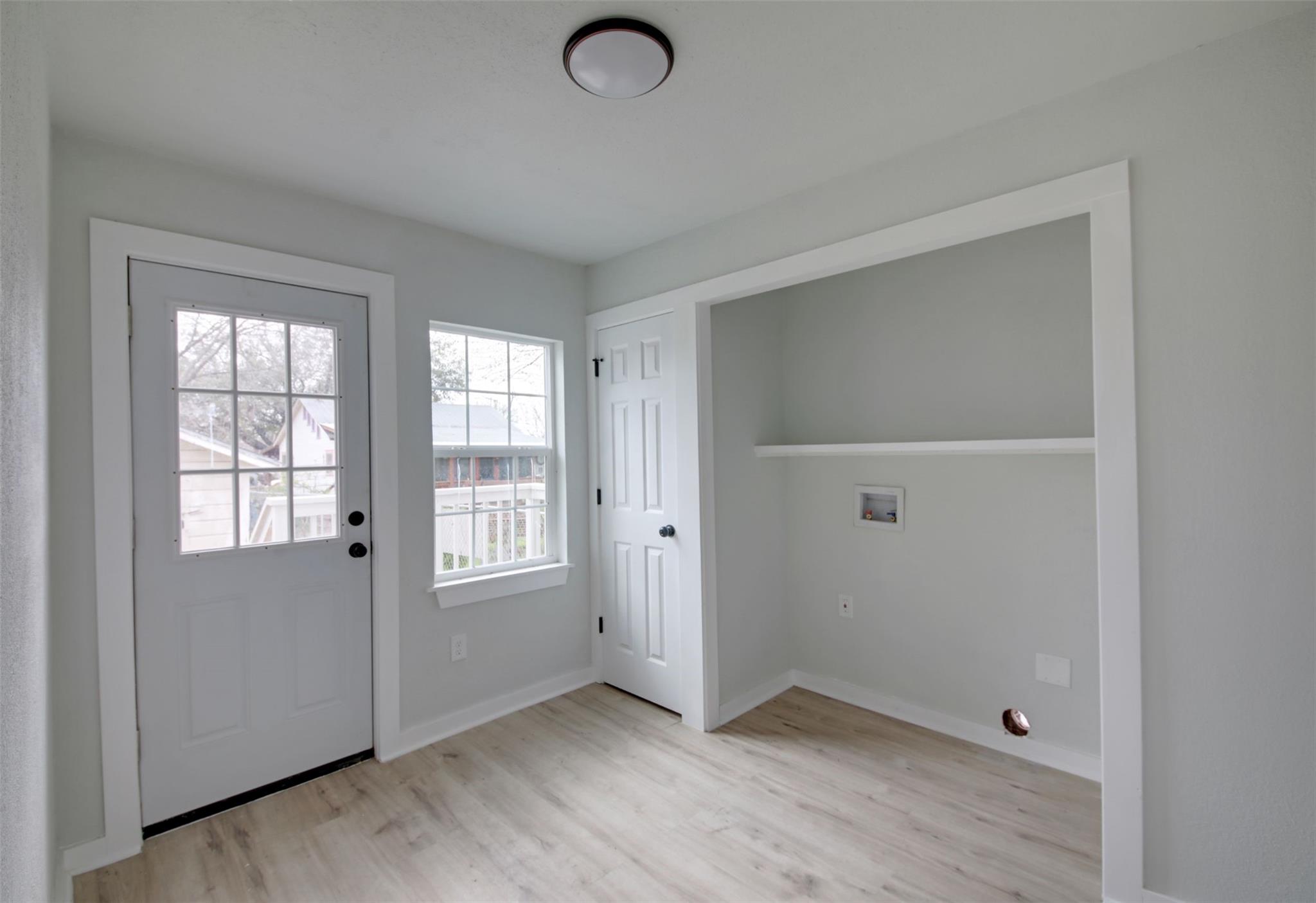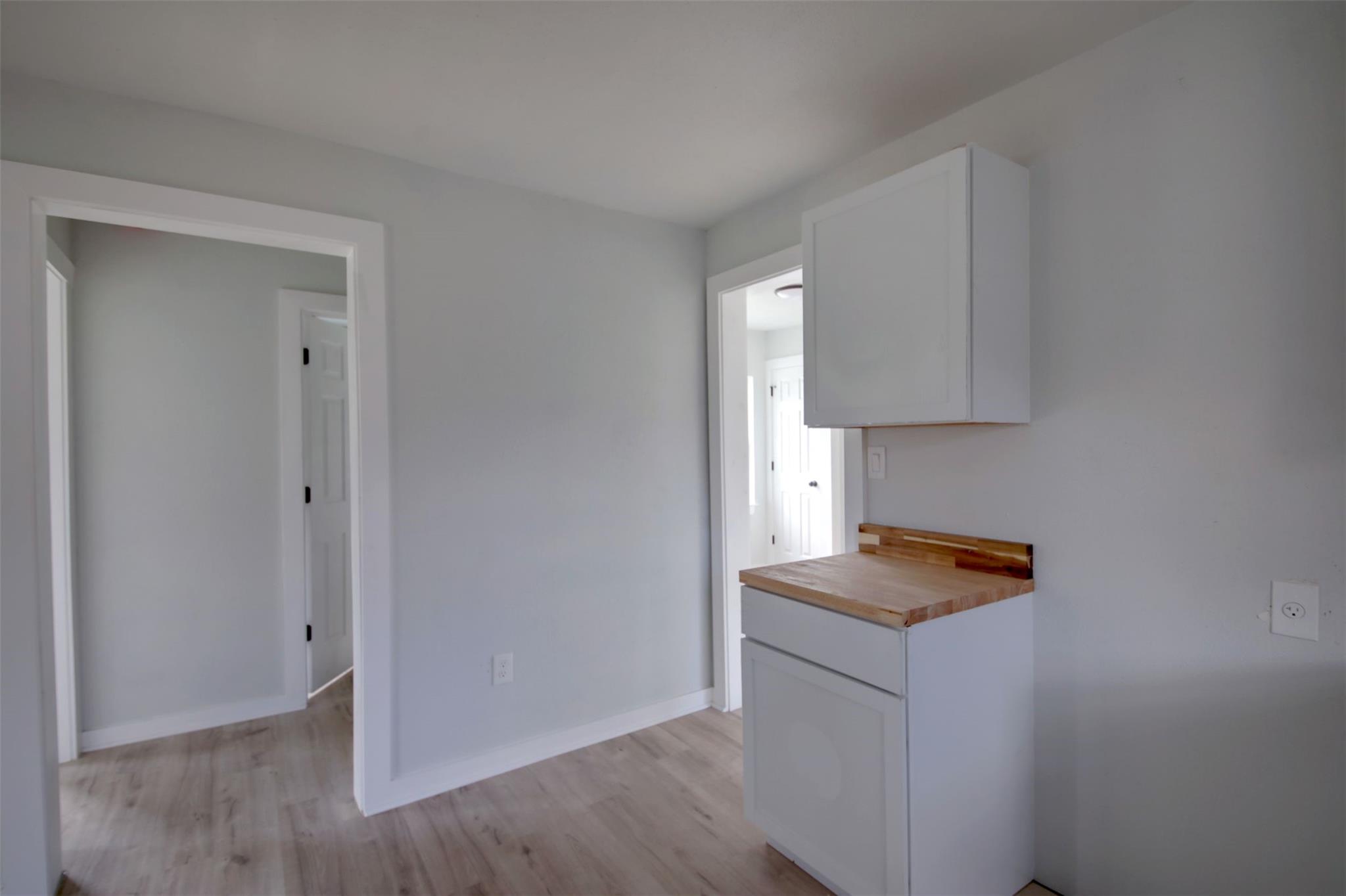Newly remodeled 772 Sq. Ft. house with 2 bedrooms and 1 bath. Open living room to Kitchen and then to a back bedroom. Laundry room in the back with space for dining. Small Deck on the side of the house.