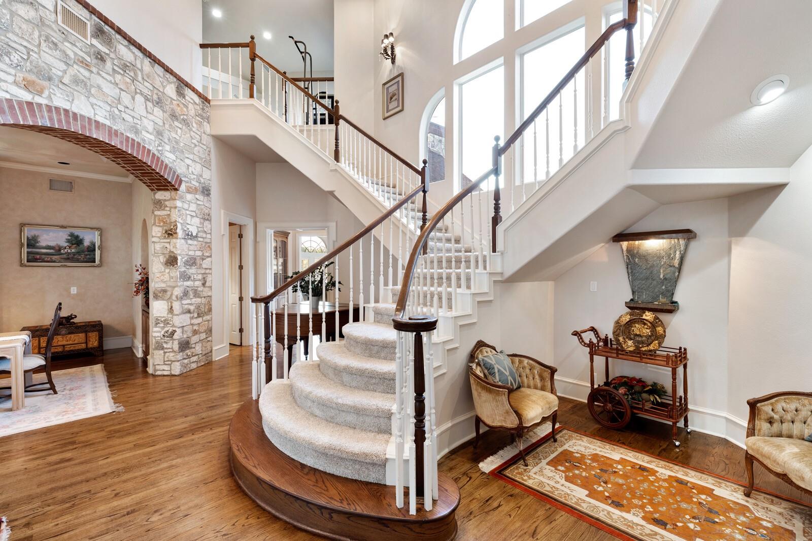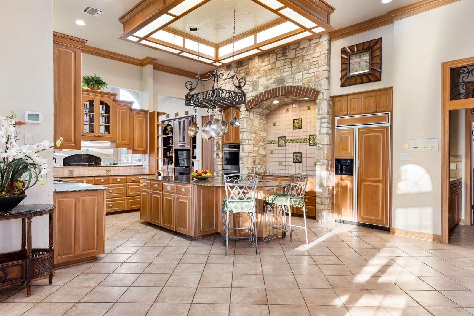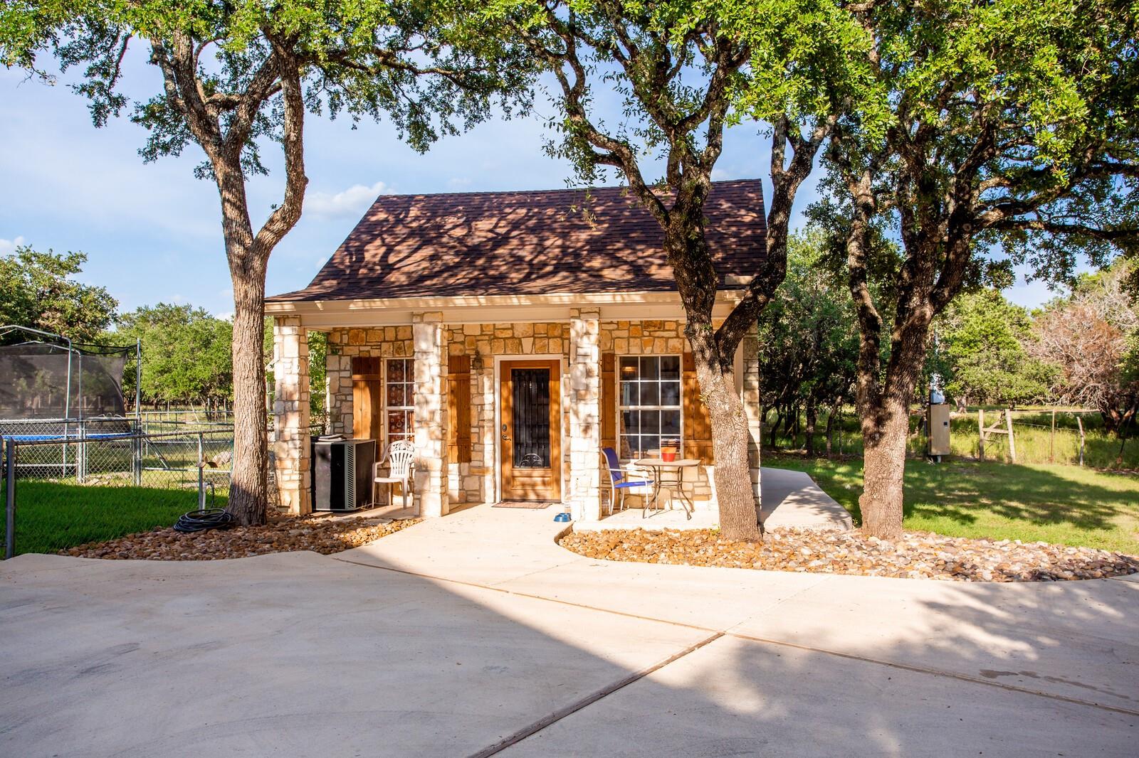 Grand Estate in Fair Oaks Ranch on 6.6acres framed by majestic oaks. Accented by the circular drive, the wraparound porch and upstairs wraparound balcony adds an element of timelessness offering stunning views of this parklike acreage. Soaring entry is flanked by stone columns into formal dining and butlers panty. Gorgeous dual staircase is an architectural focal point. Baby grand in the entry that flows into the casual living with fireplace and built-ins. Gourmet kitchen with central island, pot rack, double ovens, induction cooktop plus casual dining and gathering area. Guest suite is downstairs and the primary suite is a delight. Dual sided fireplace, sitting area, spa bath with garden tub, shower and dual closets- upstairs steam shower, workout area, her office. Large secondary ensuite bedrooms are up with spacious library/living. Additional game room is up with stacked rock wall fireplace, dining and game area.Extensive patios and decks with firepit and hot tub to enjoy the Texas sunsets. A stand alone exterior guest suite or office adds to the lovely functionality of this property. Three car garage, large laundry plus a kennel with washing station and a garden/greenhouse area. Property is two separate lots .